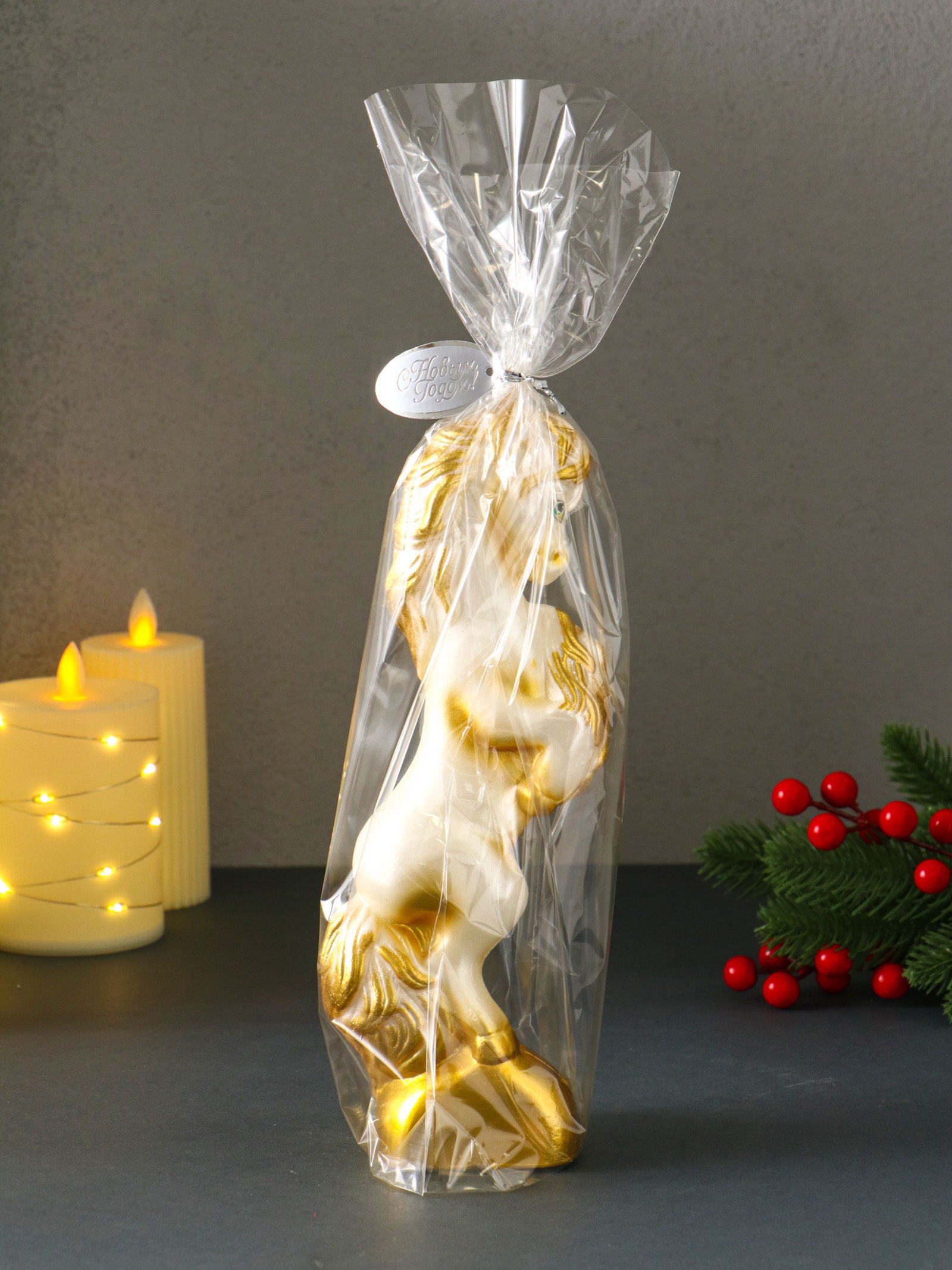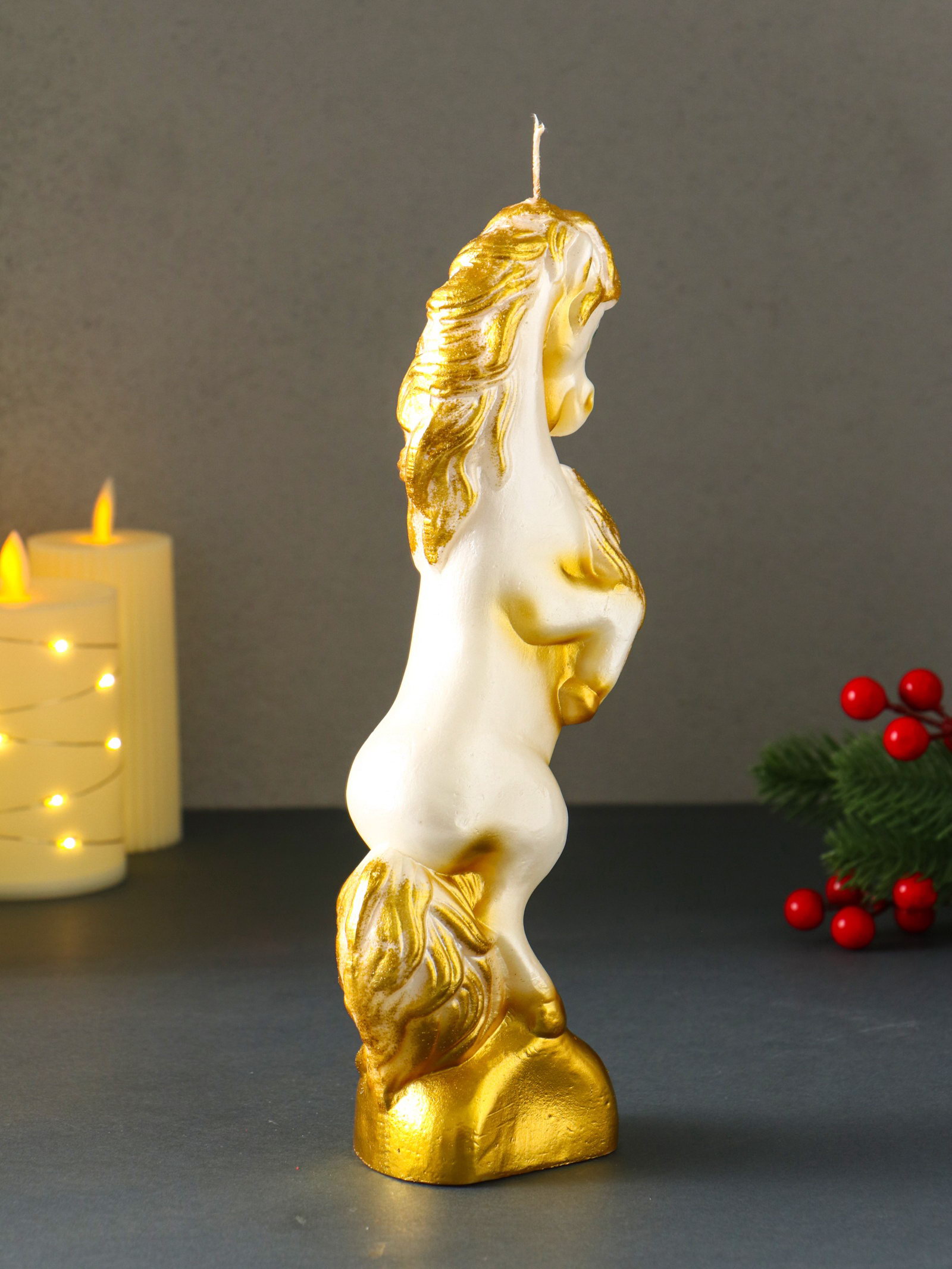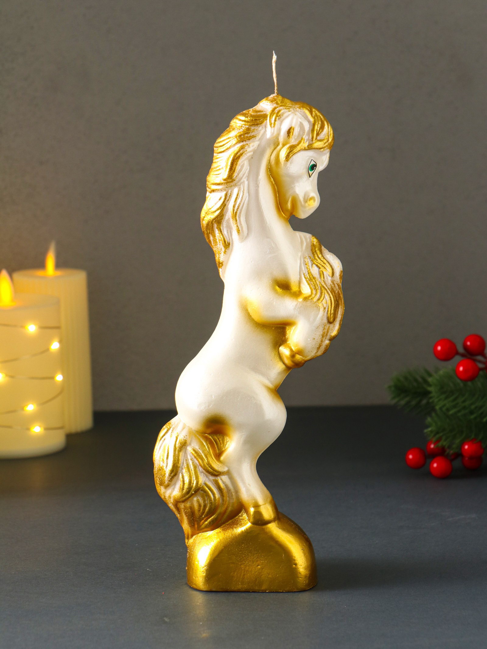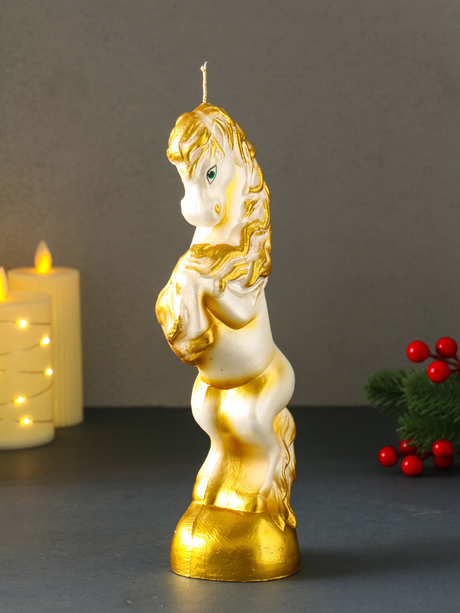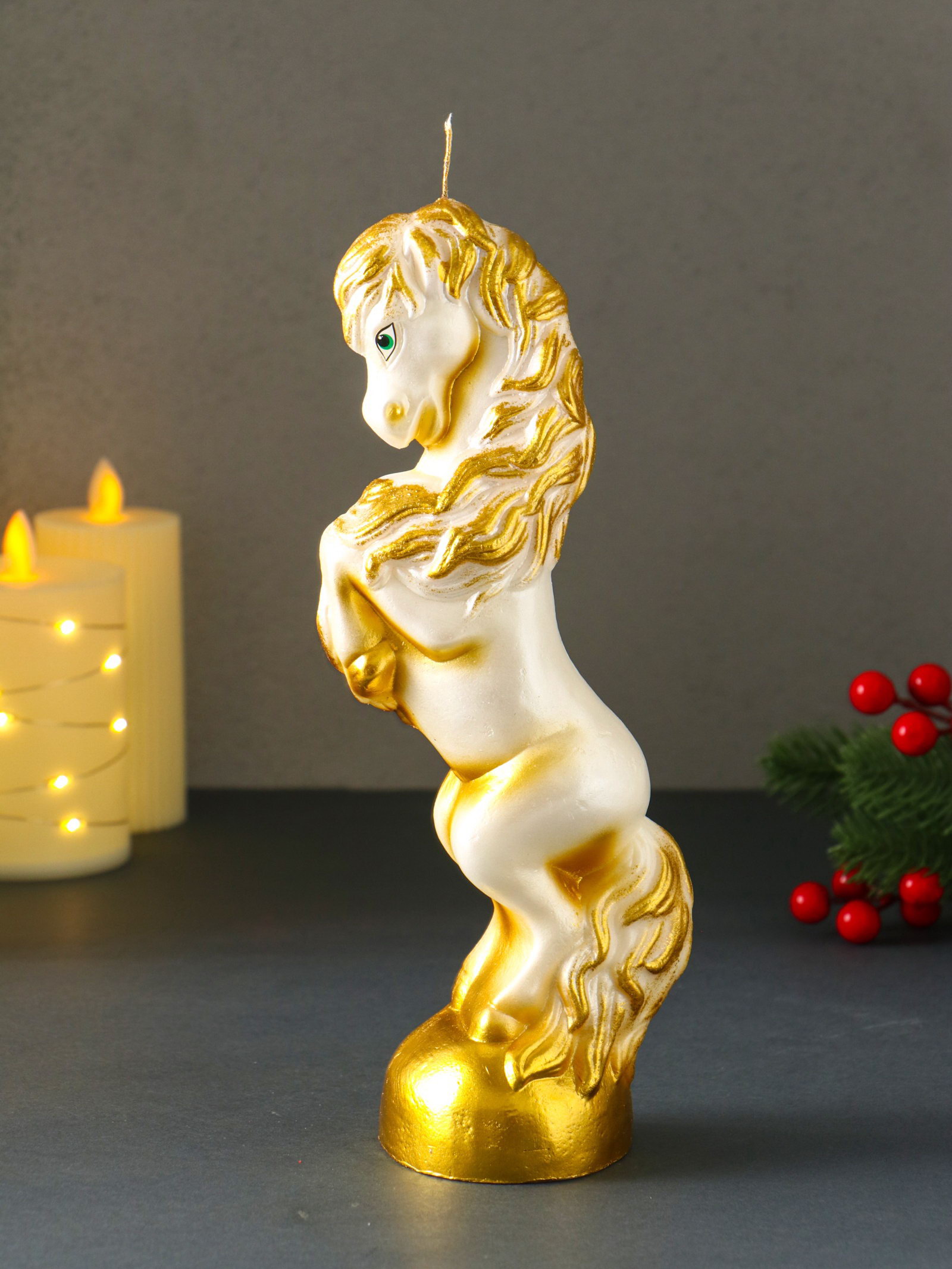 Свеча декоративная "Конь на дыбах", белый, 9x6.2x25.5 см, Омский свечной завод, Россия