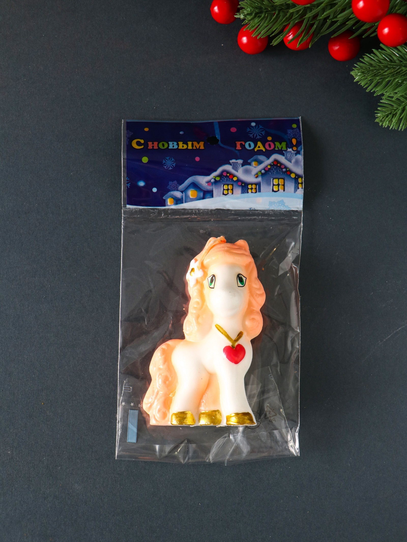 Свеча декоративная "Влюблённая лошадка", розовый, 5.3x3.3x8.2 см, Омский свечной завод, Россия