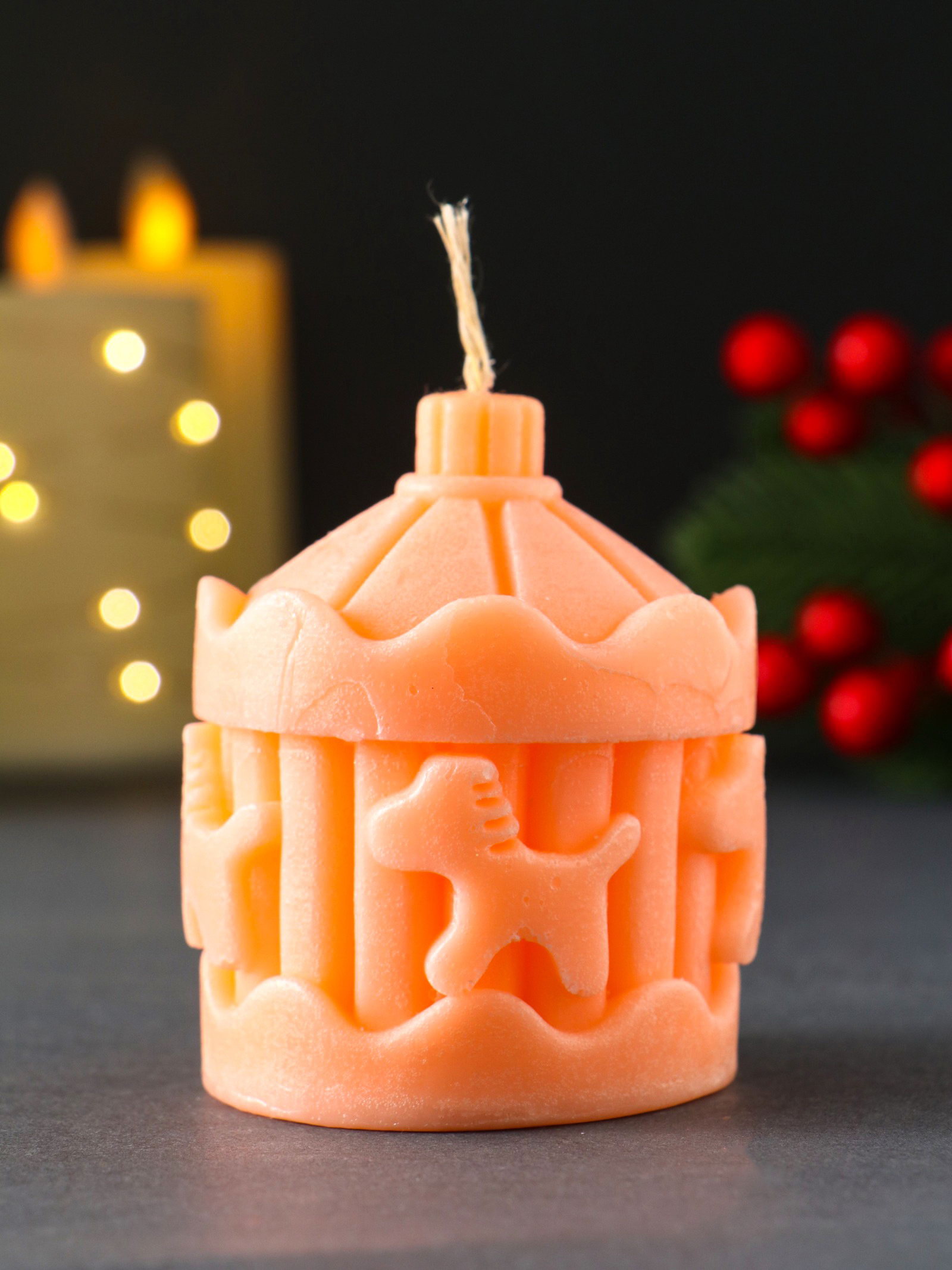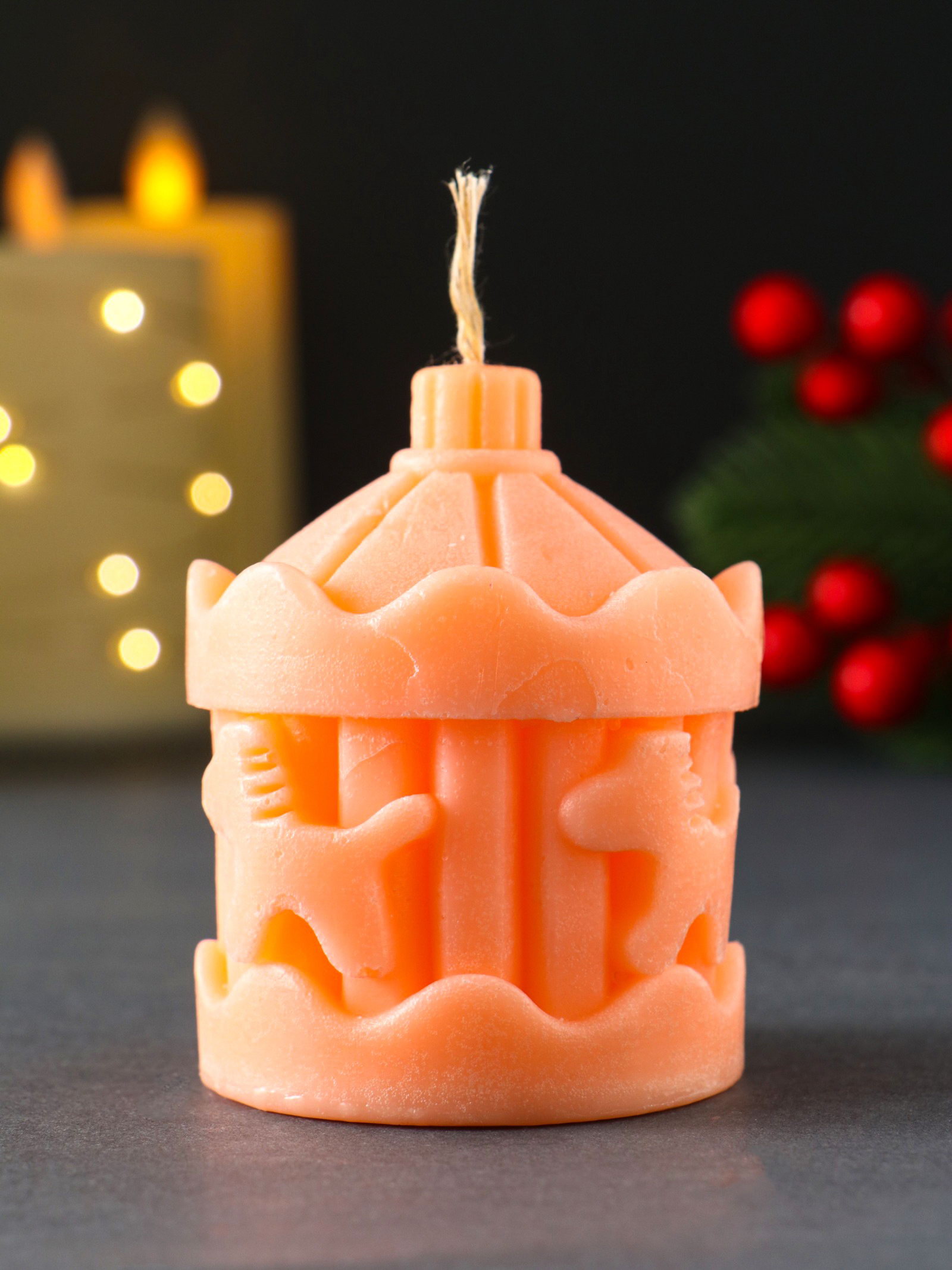 Декоративная свеча новогодняя "Карусель с лошадками", 60x80 мм, персиковый, Россия