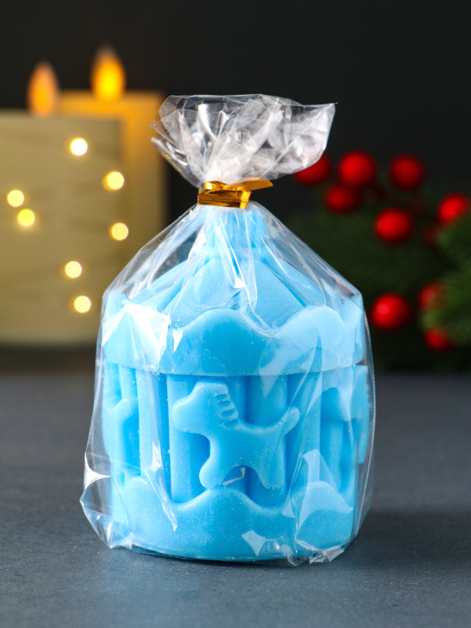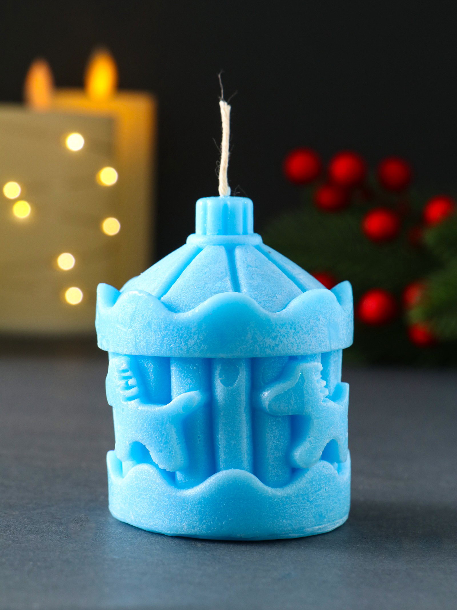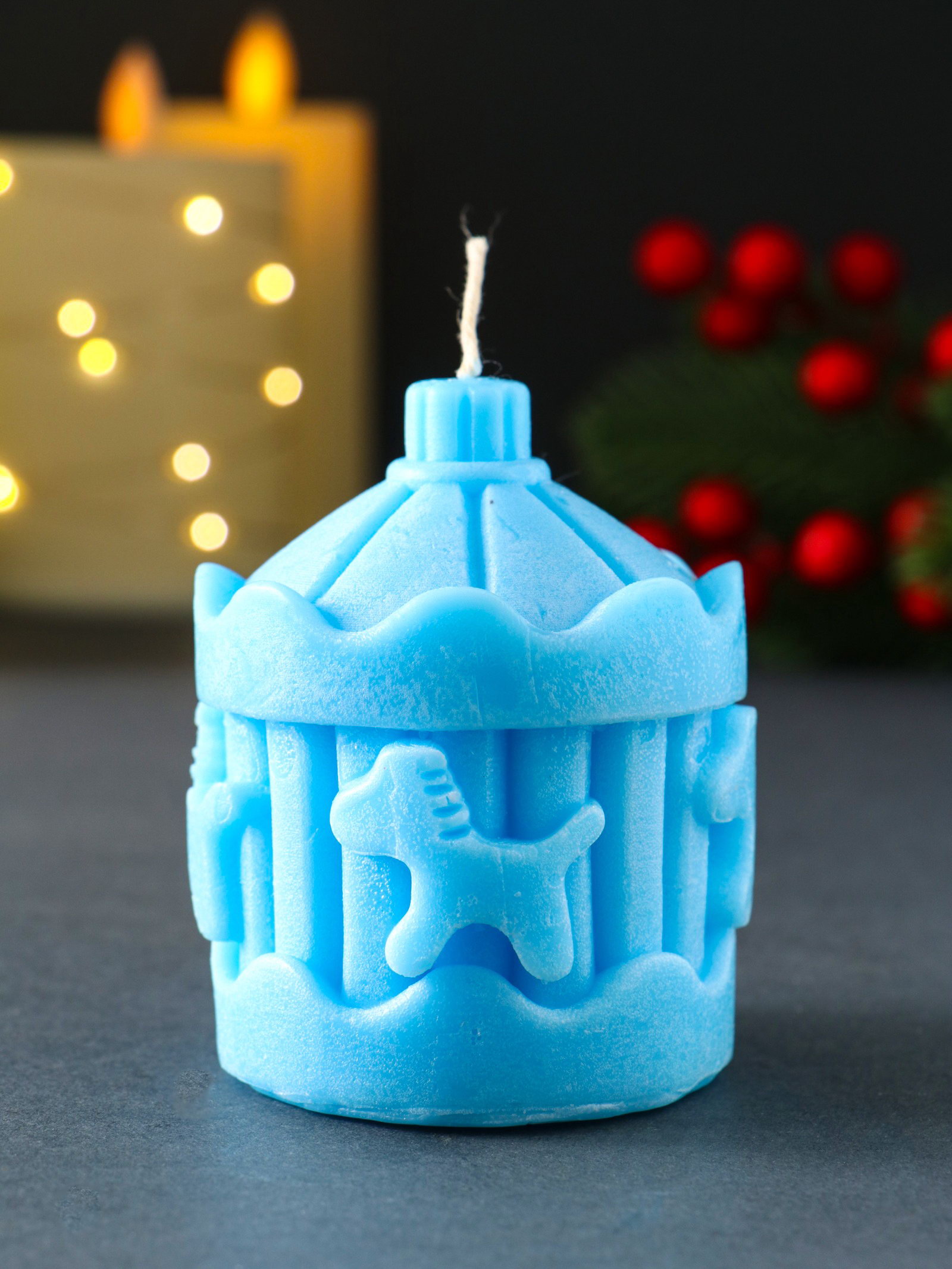 Декоративная свеча новогодняя "Карусель с лошадками", 60x80 мм, голубой, Россия
