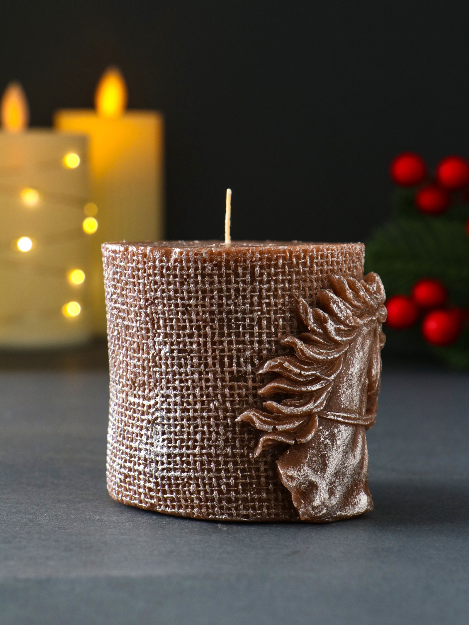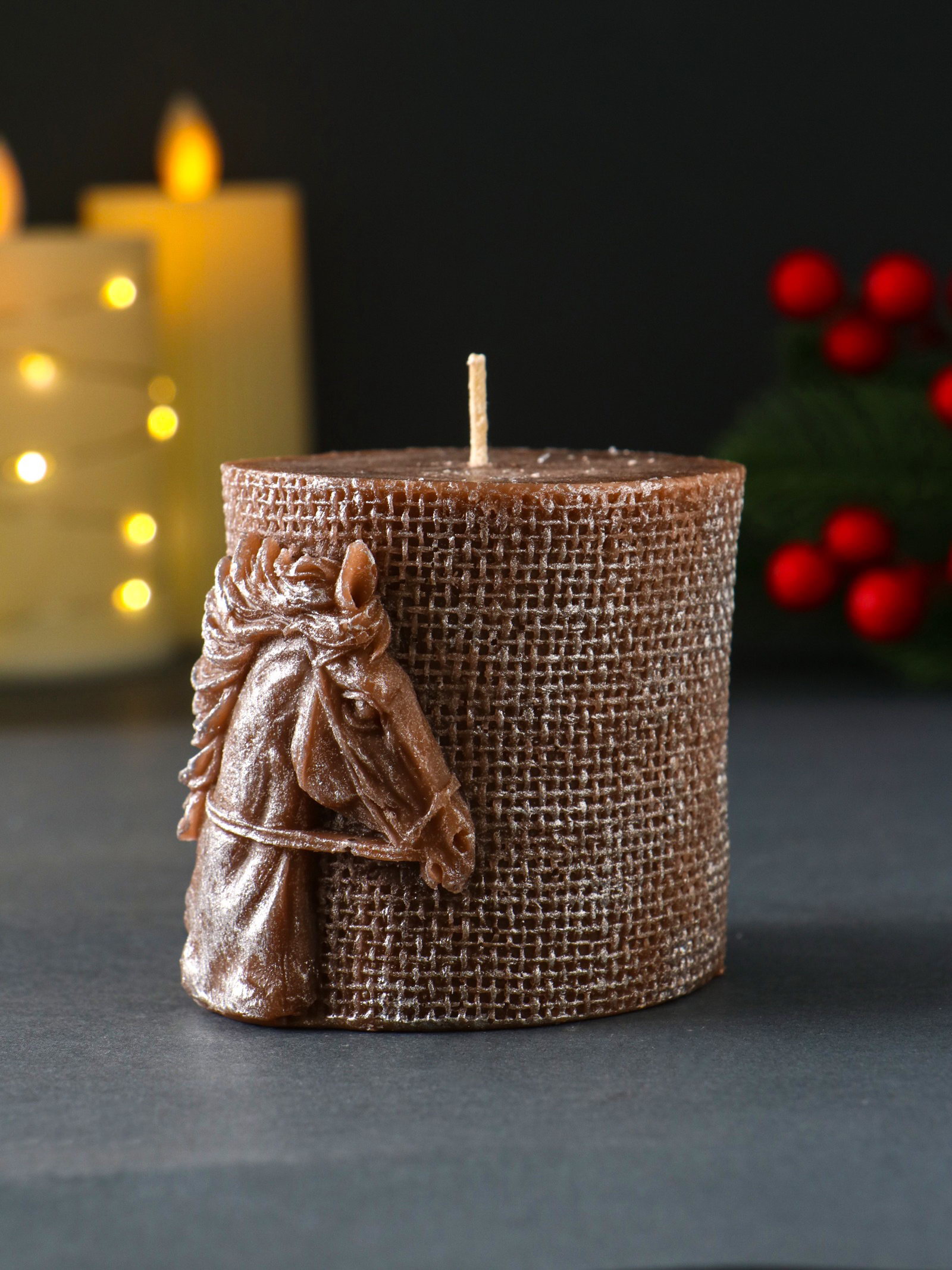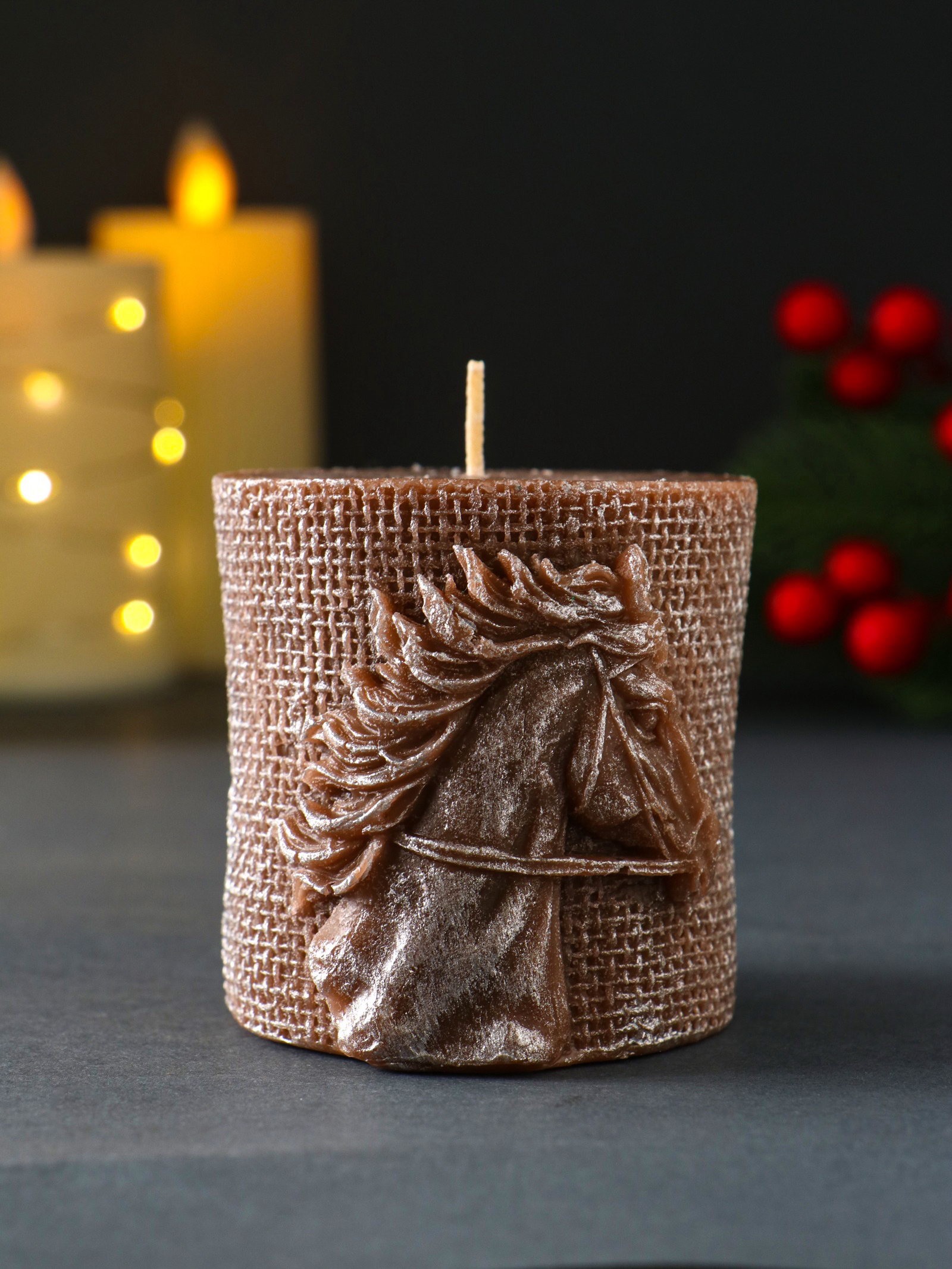 Декоративная свеча новогодняя "Лошадь Бохо", 70x75 мм, лак, коричневый, Россия