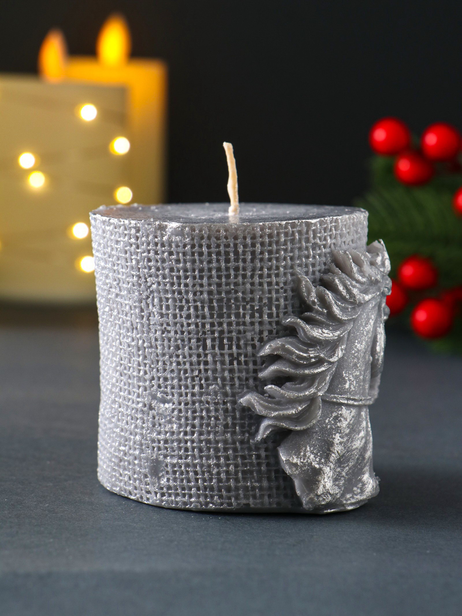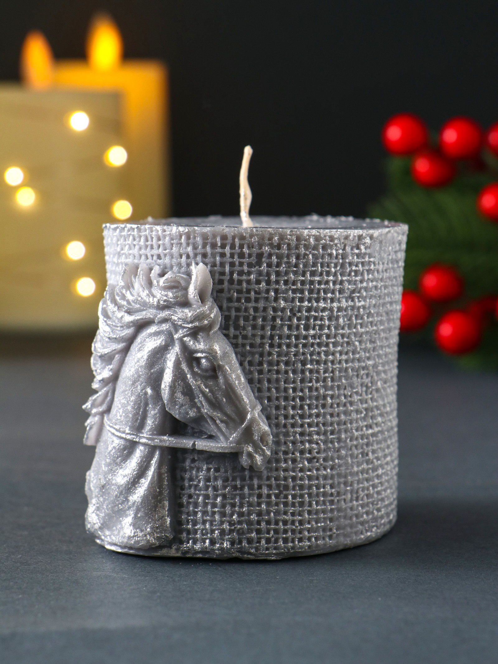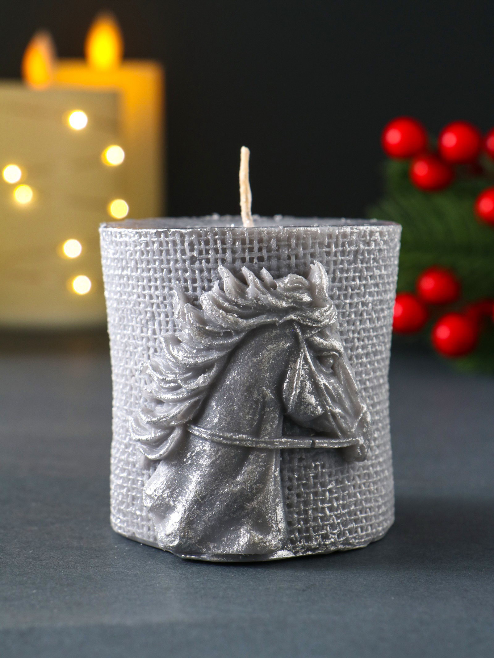 Декоративная свеча новогодняя "Лошадь Бохо", 70x75 мм, лак, серый, Россия