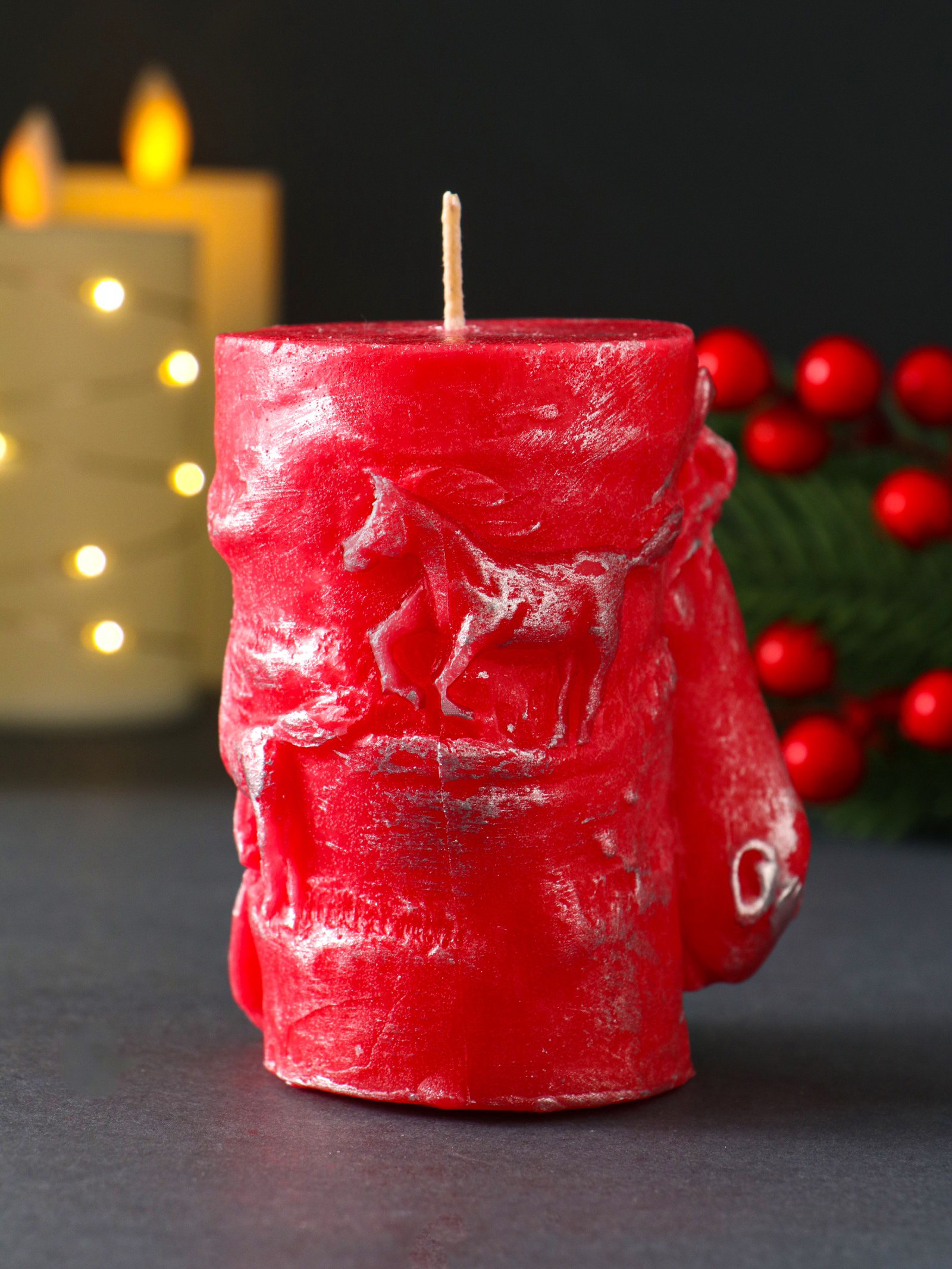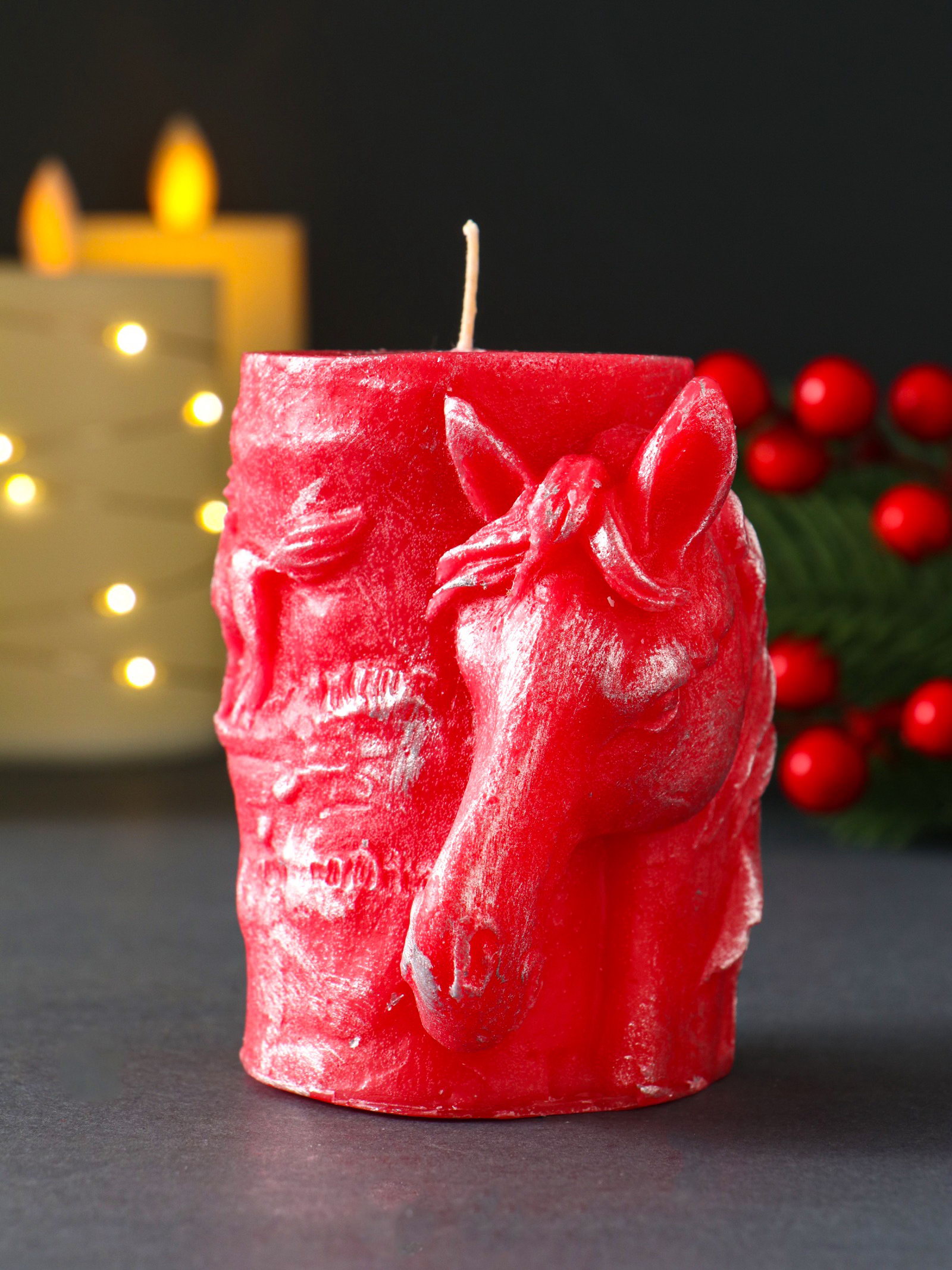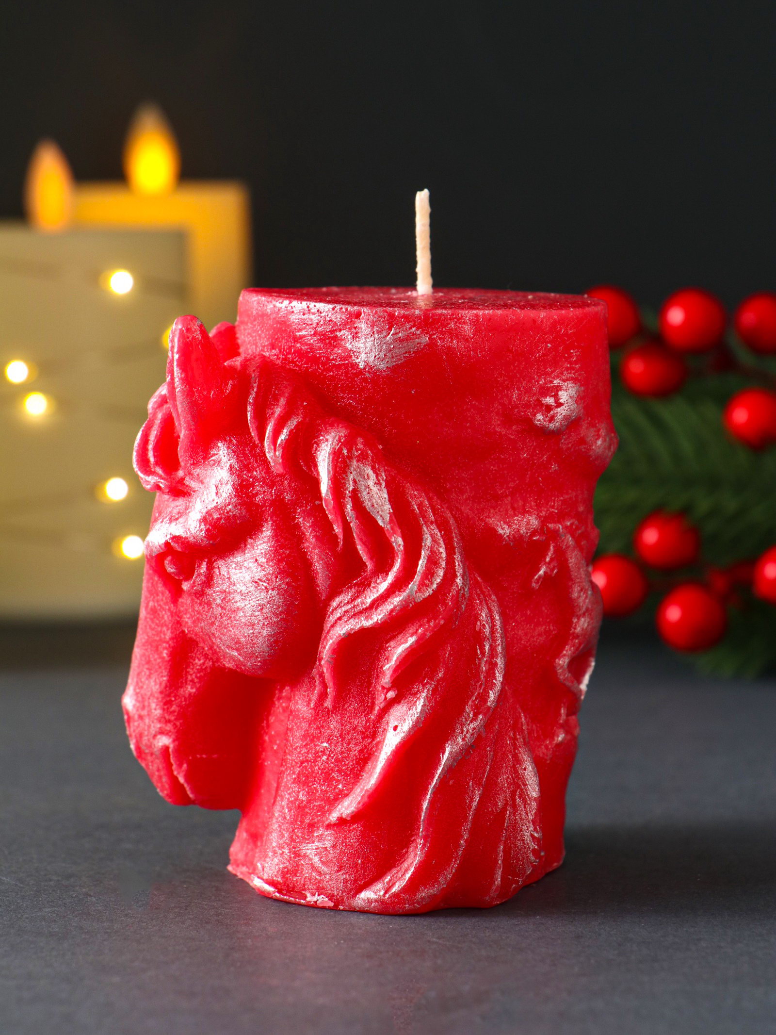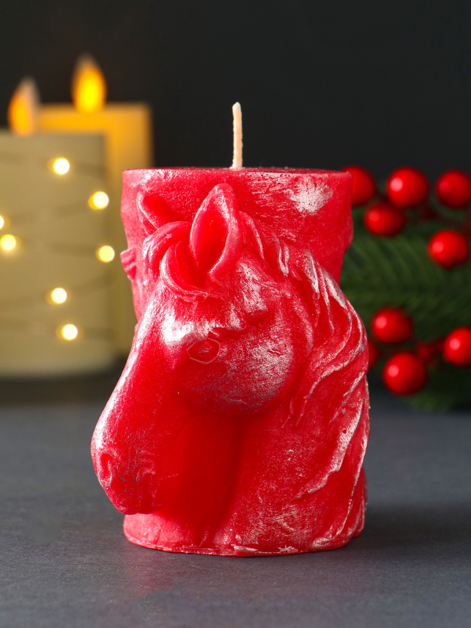 Декоративная свеча новогодняя "Барельеф Лошадь", 85x95 мм, лак, красный, Россия