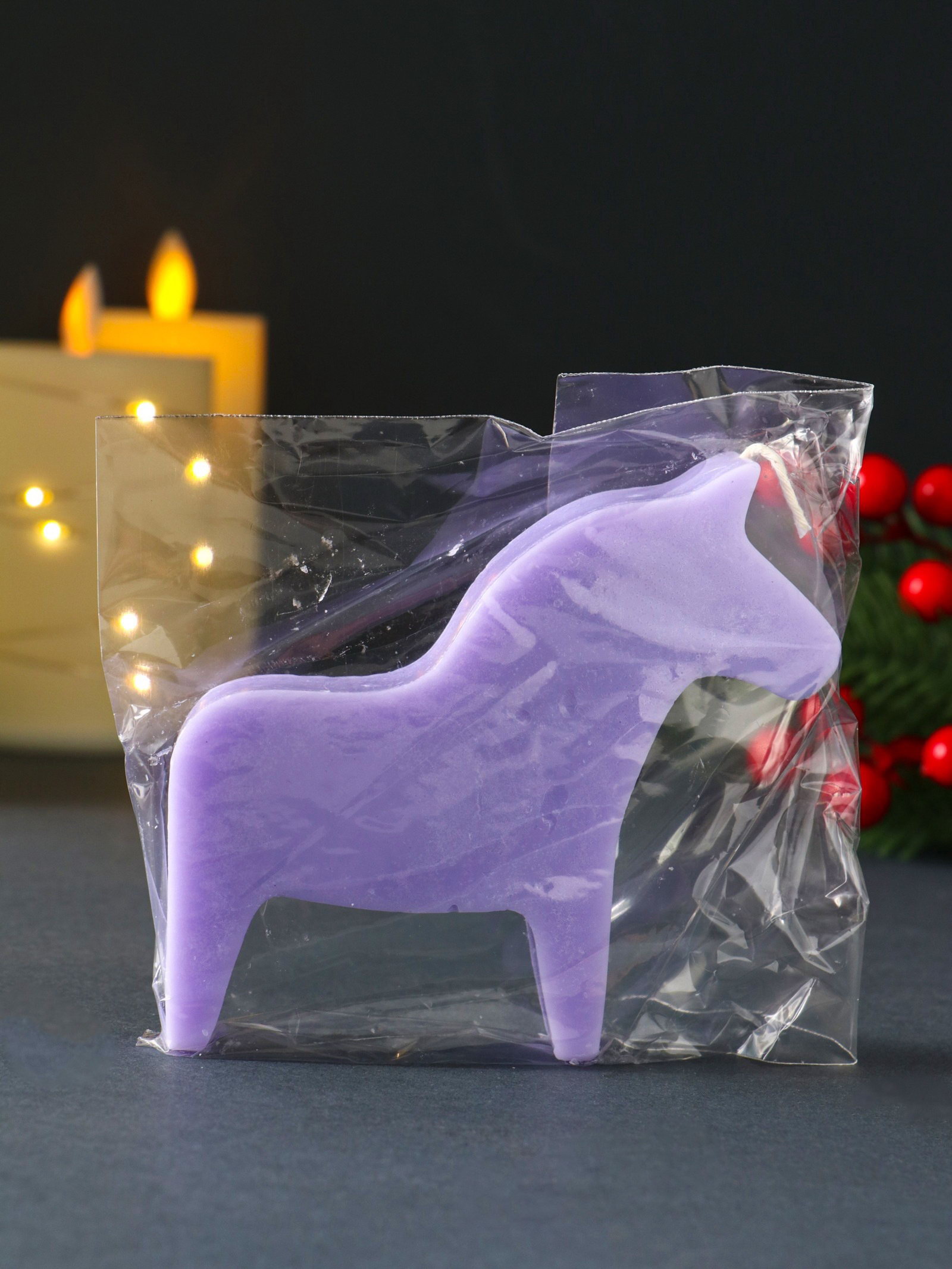 Декоративная свеча новогодняя "Лошадка", 10.5x10 см, фиолетовый, Россия