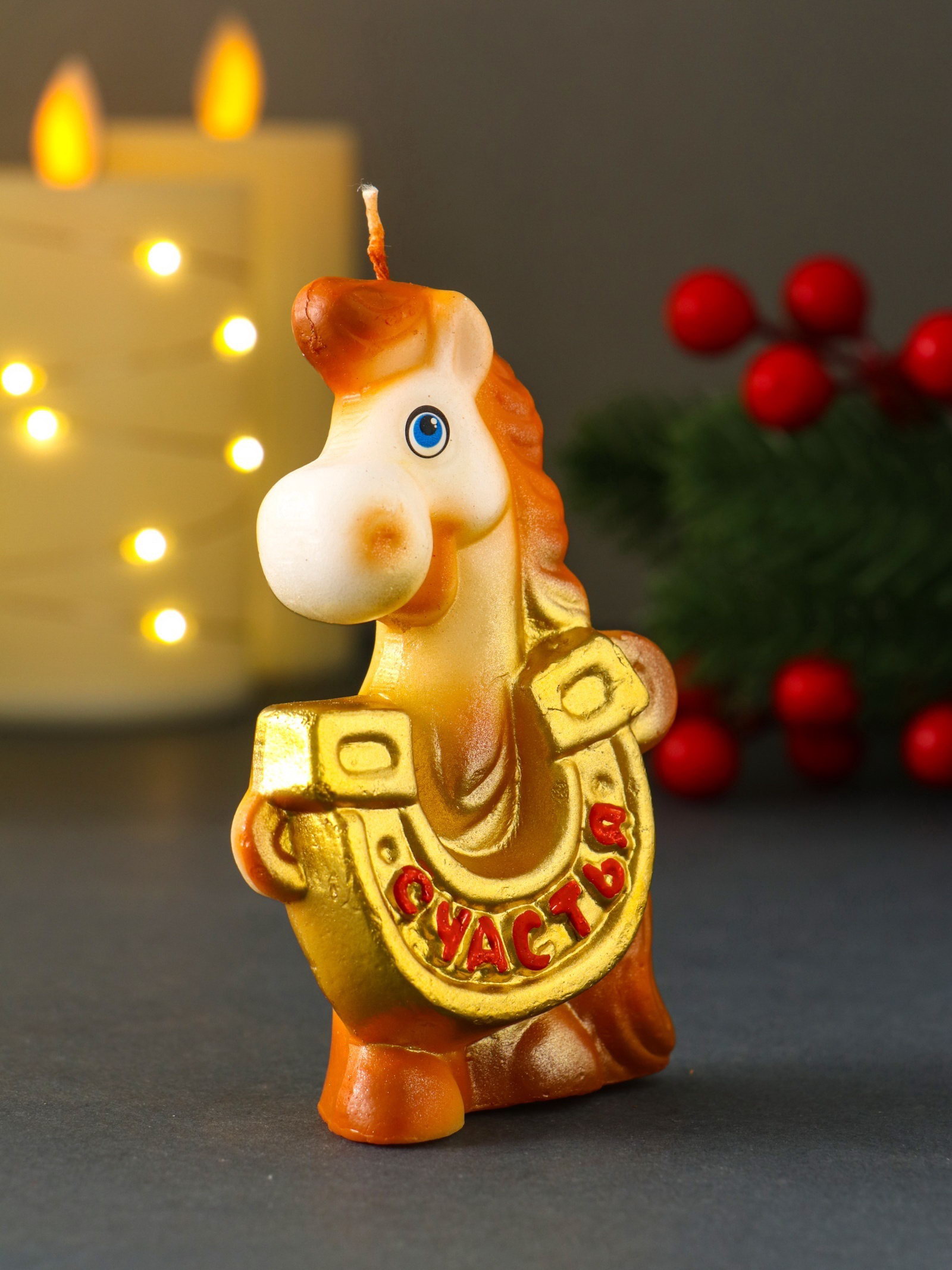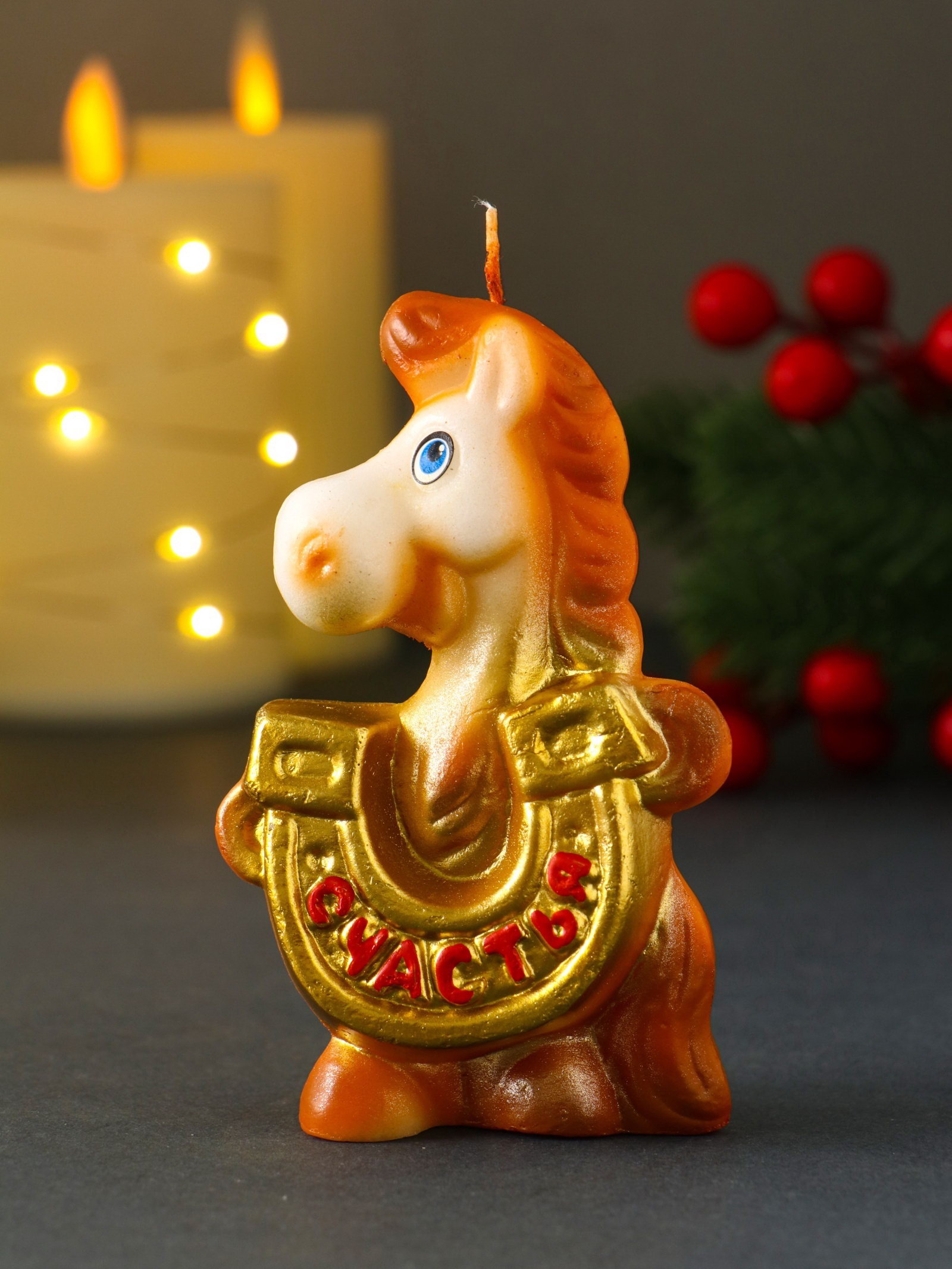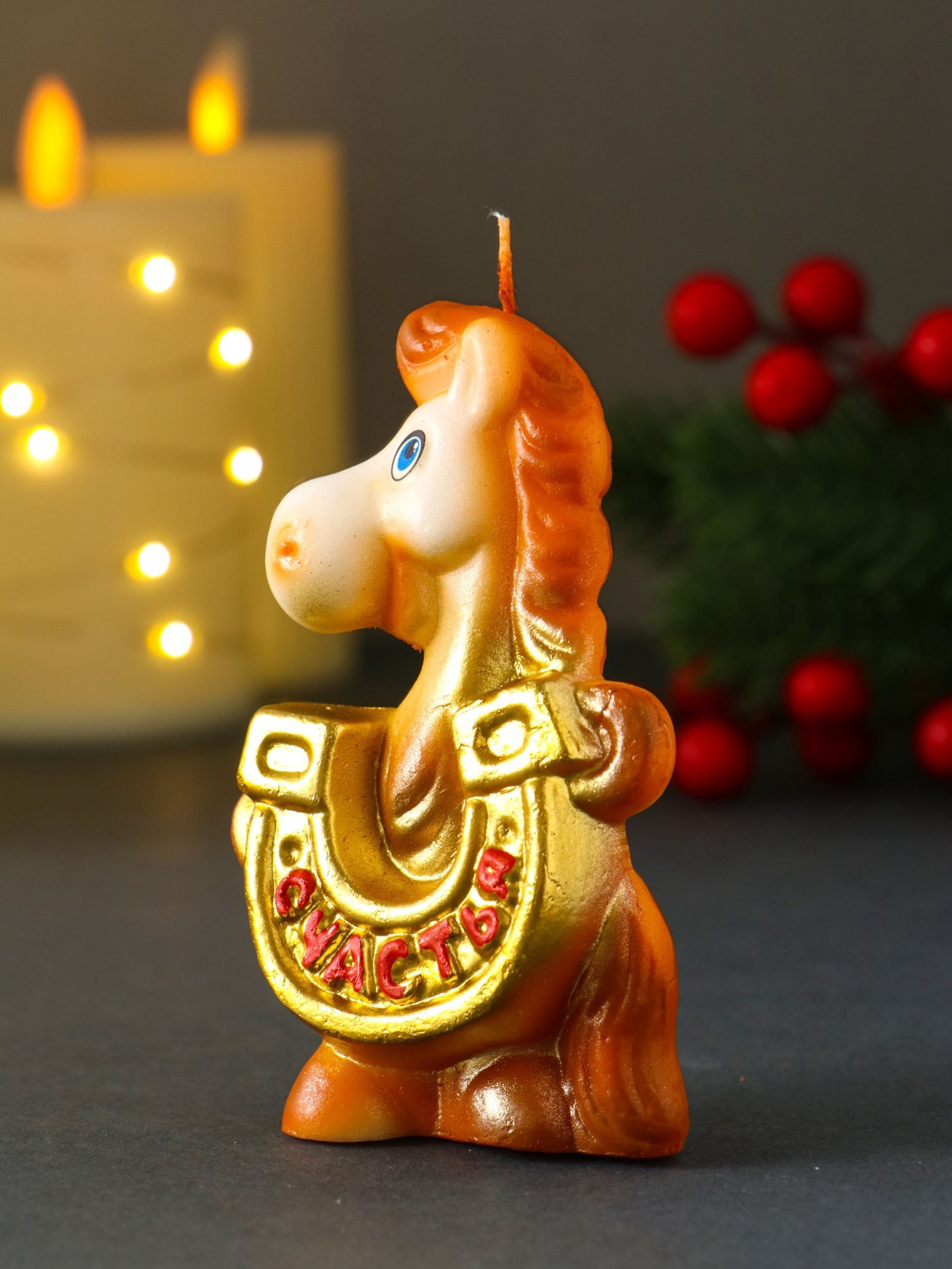 Свеча декоративная "Лошадка с подковой", 6.1x3x9.5 см, Омский свечной завод, Россия
