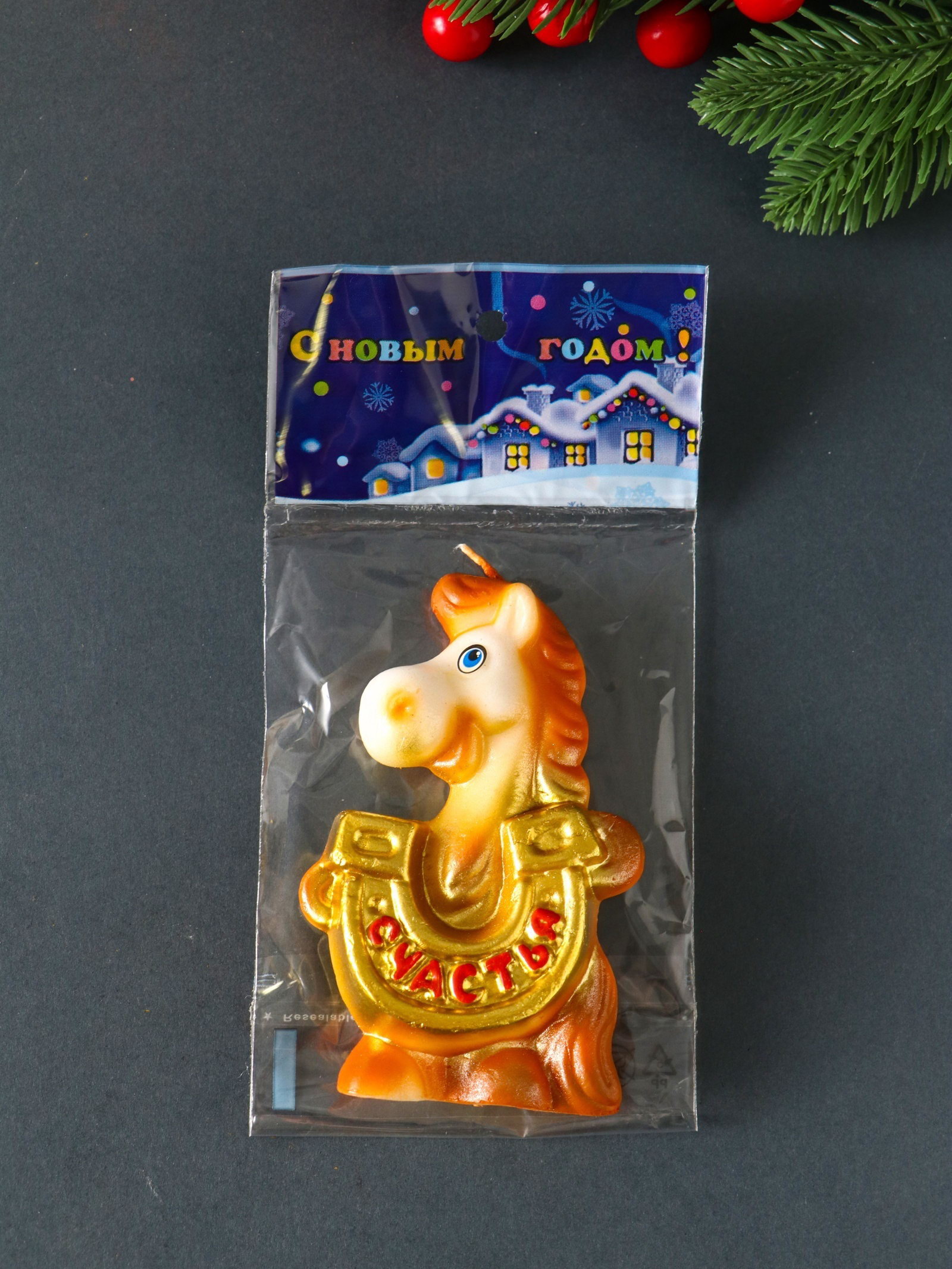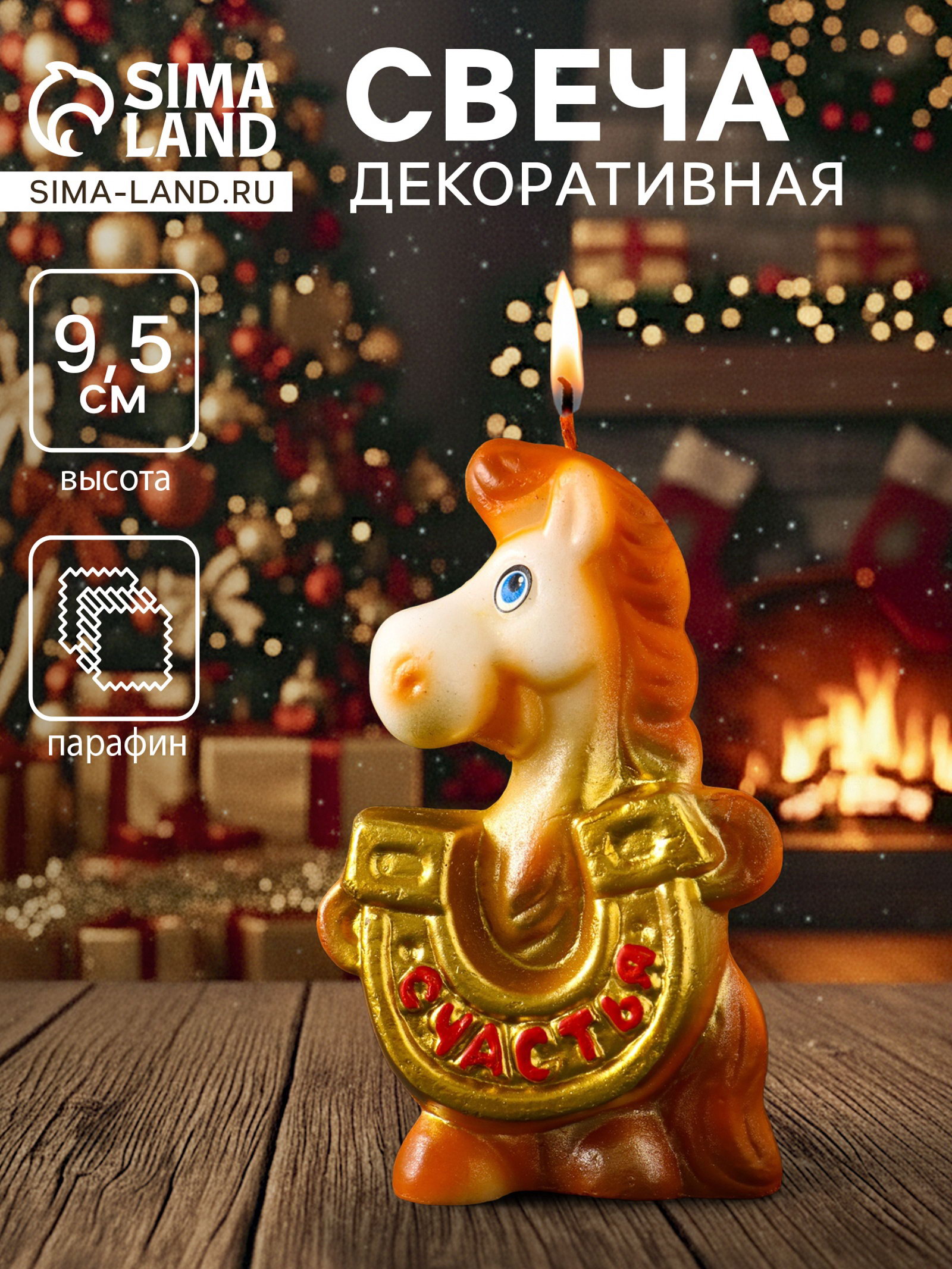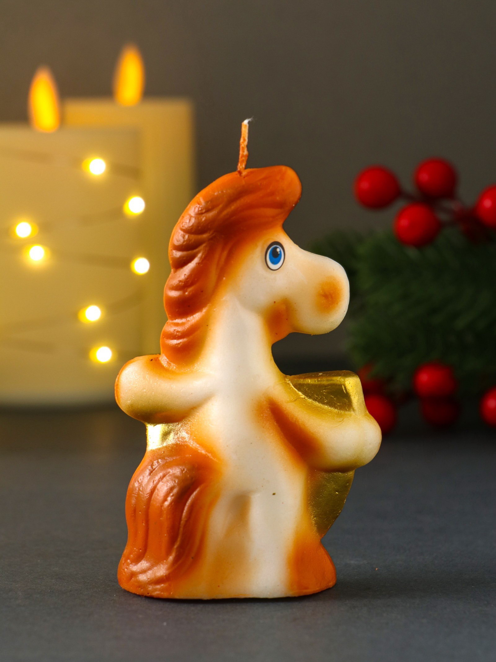 Свеча декоративная "Лошадка с подковой", 6.1x3x9.5 см, Омский свечной завод, Россия