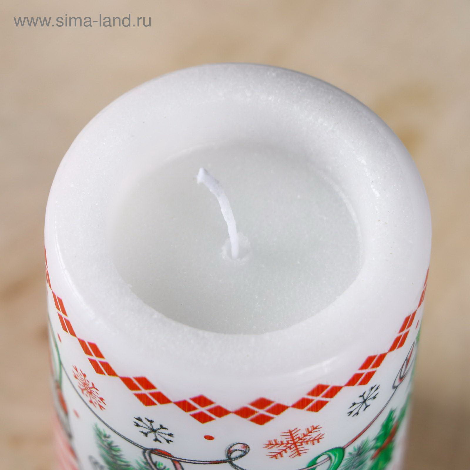 Свеча-цилиндр "С Новым годом! Варежки", 6x10 см, 30 ч, 227 г, графика, Омский свечной завод, Россия