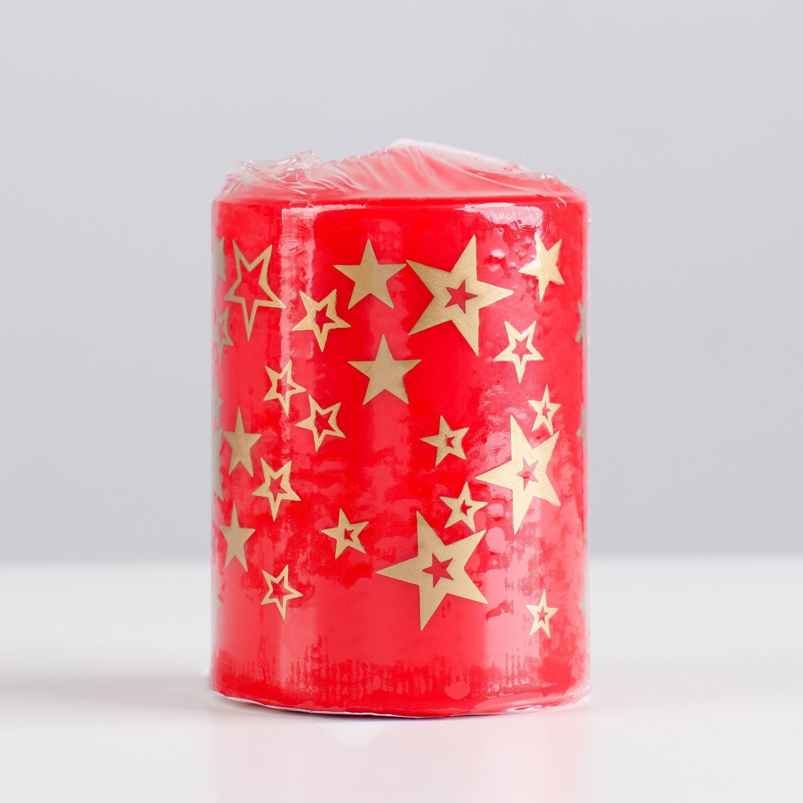 Свеча-цилиндр с узорами "Звёзды", 5.6x8 см, красная с золотым, Россия