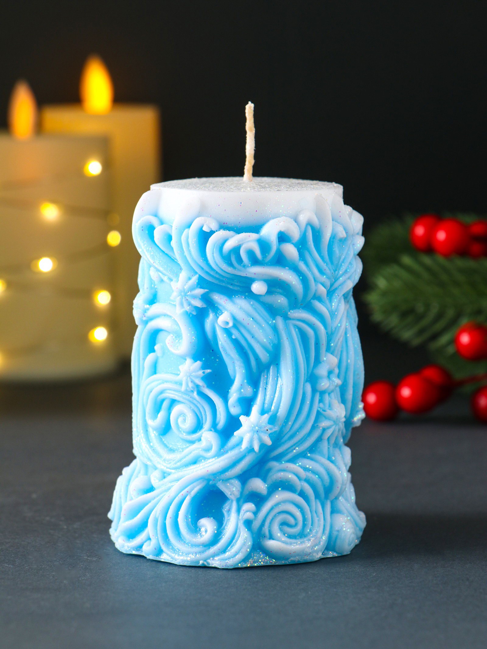 Универсальное применение: Голубая свеча-столбик подойдет для создания новогоднего настроения, сервировки стола в морской тематике или просто для вечерней релаксации. Её сдержанный цвет ассоциируется с зимним небом и свежестью. Это простой и эффектный способ добавить интерьеру индивидуальности и теплого живого света. Позвольте пламени этой свечи наполнить ваш дом уютом и спокойствием. | ||