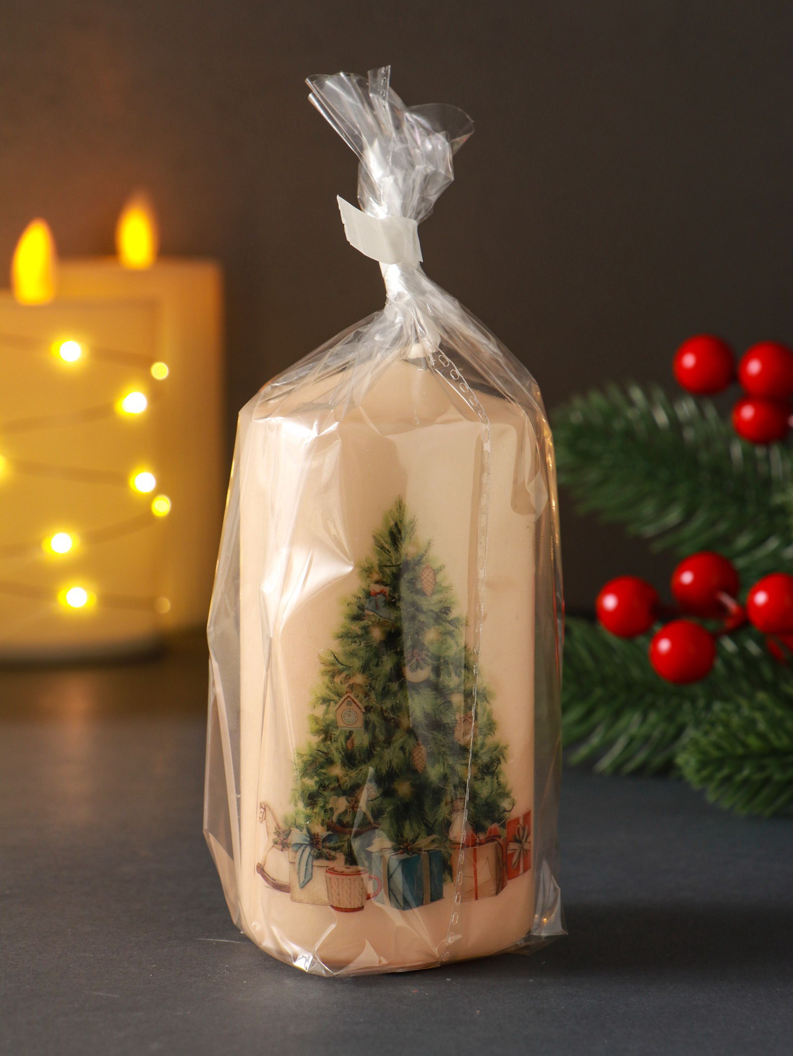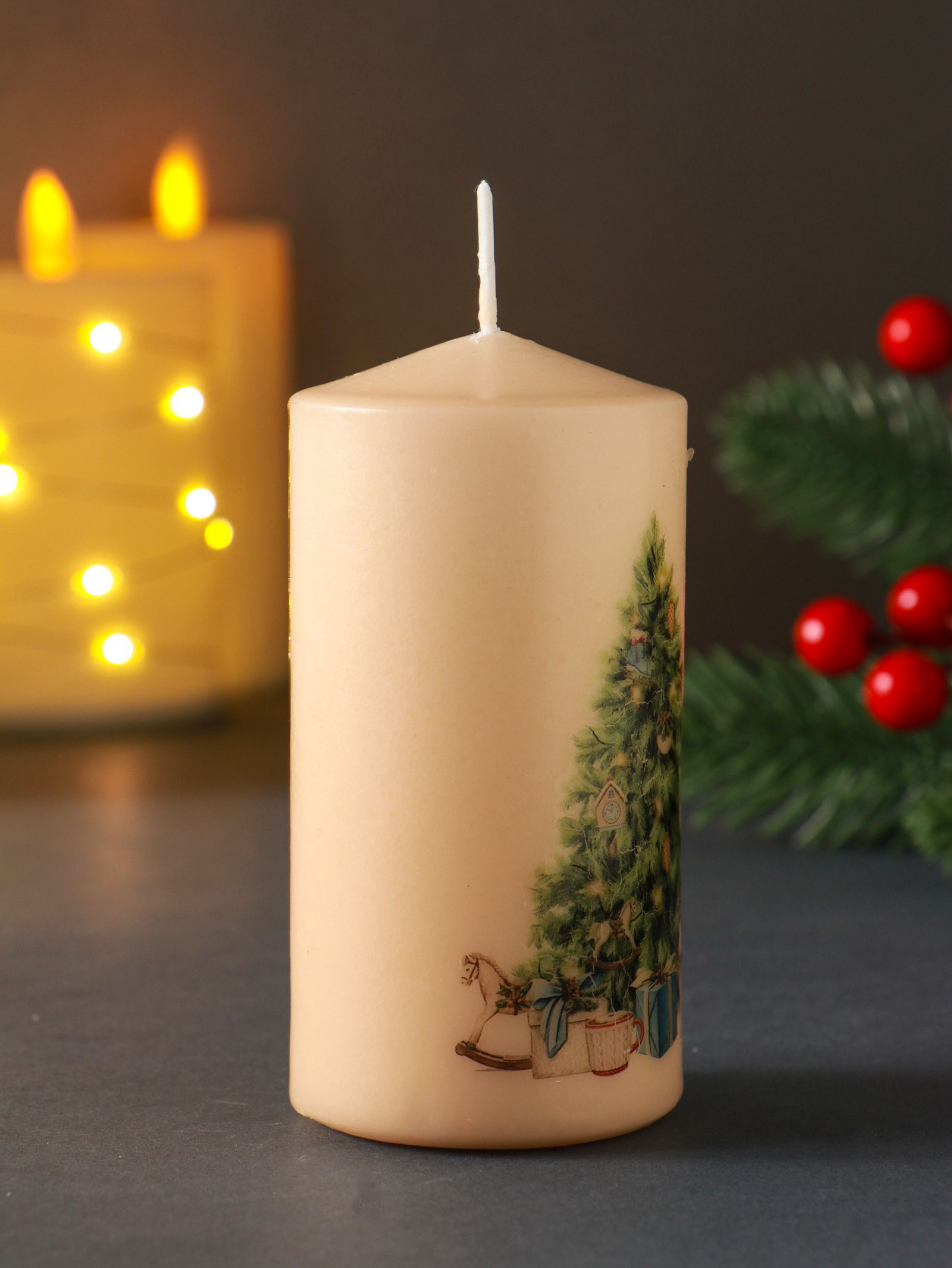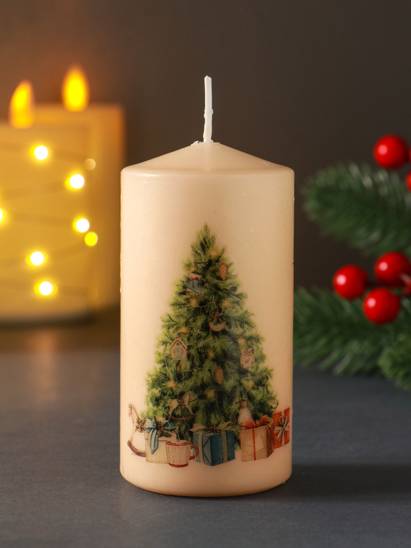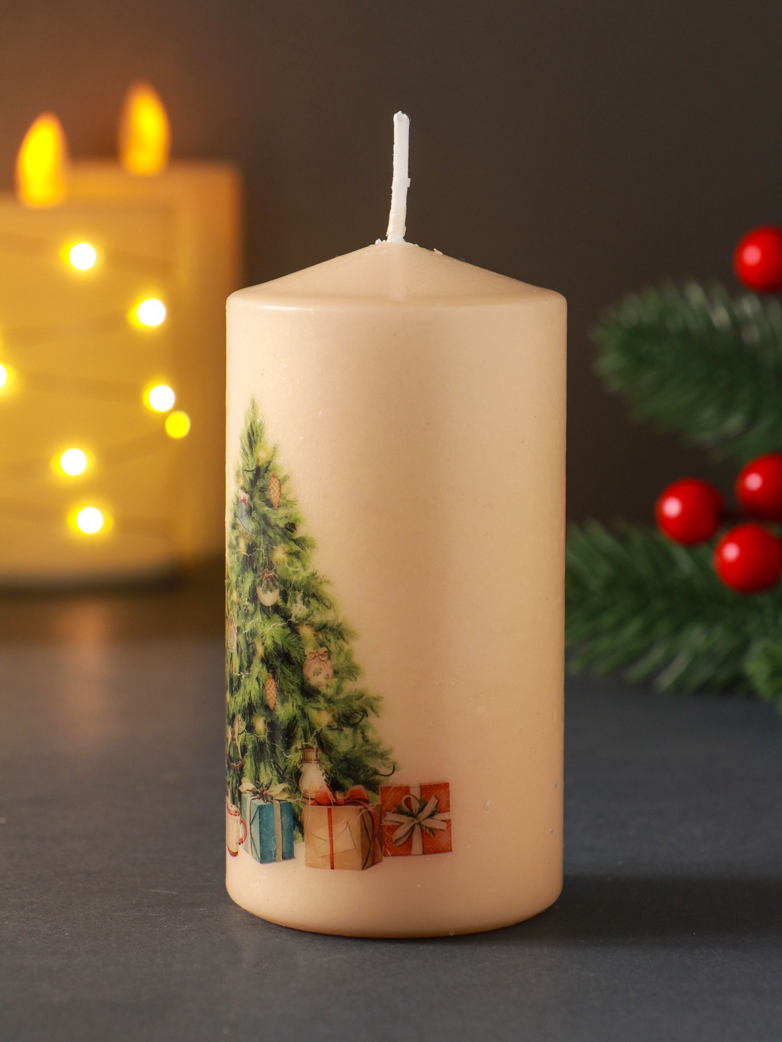 Создайте праздничное настроение Эта декоративная свеча станет центральным элементом новогоднего декора на столе или каминной полке. Мягкий свет от её пламени подарит ощущение домашнего тепла и уюта, превратив обычный вечер в волшебное предвкушение праздника. Простой и милый рисунок порадует и детей, и взрослых. | ||