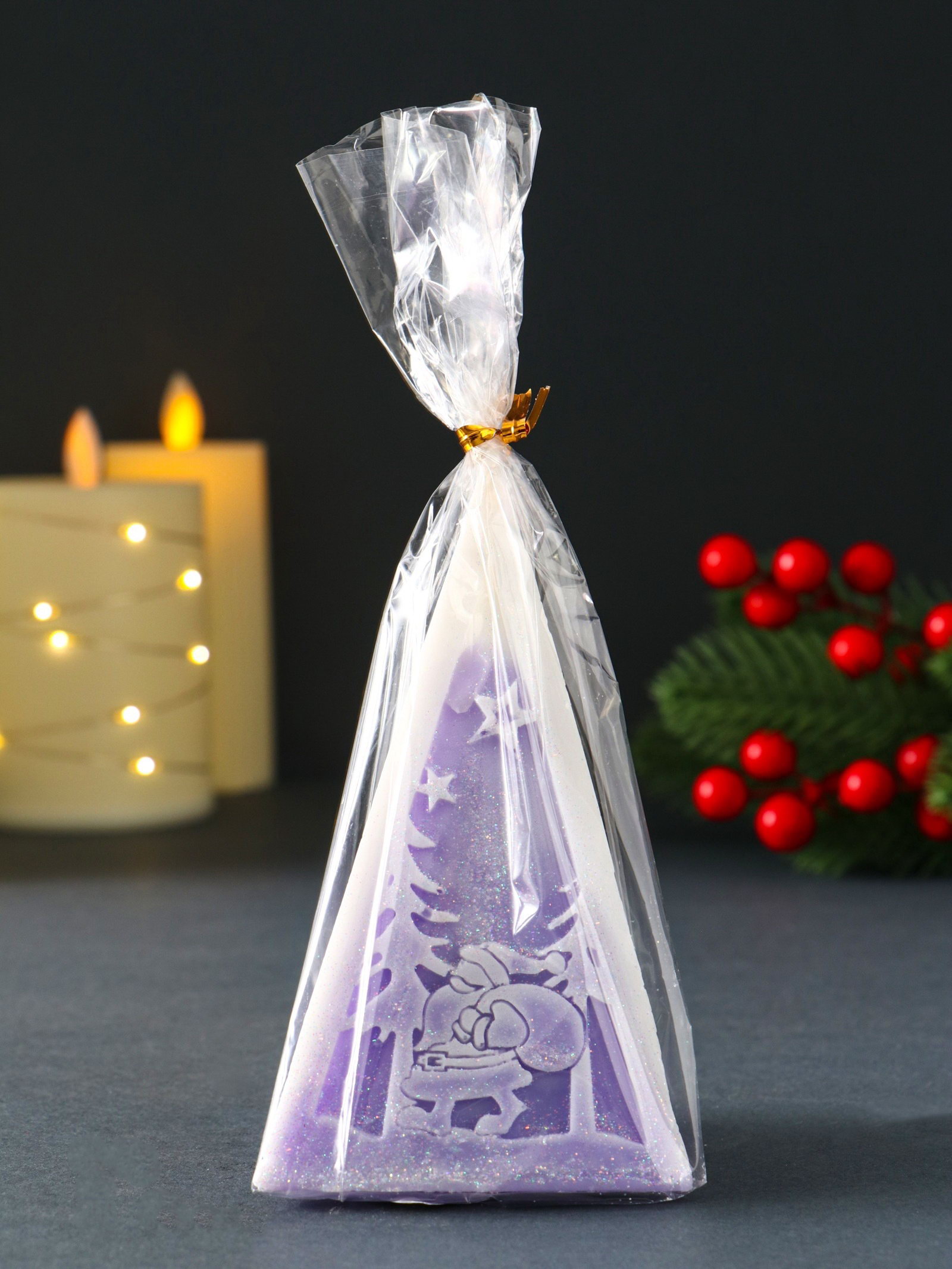 Свеча новогодняя "Пирамида Дед Мороз", 6x6.5x12 см, фиолетовый, Россия