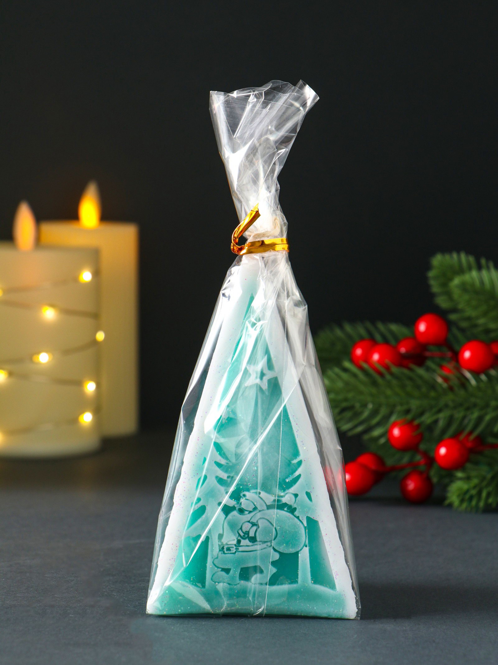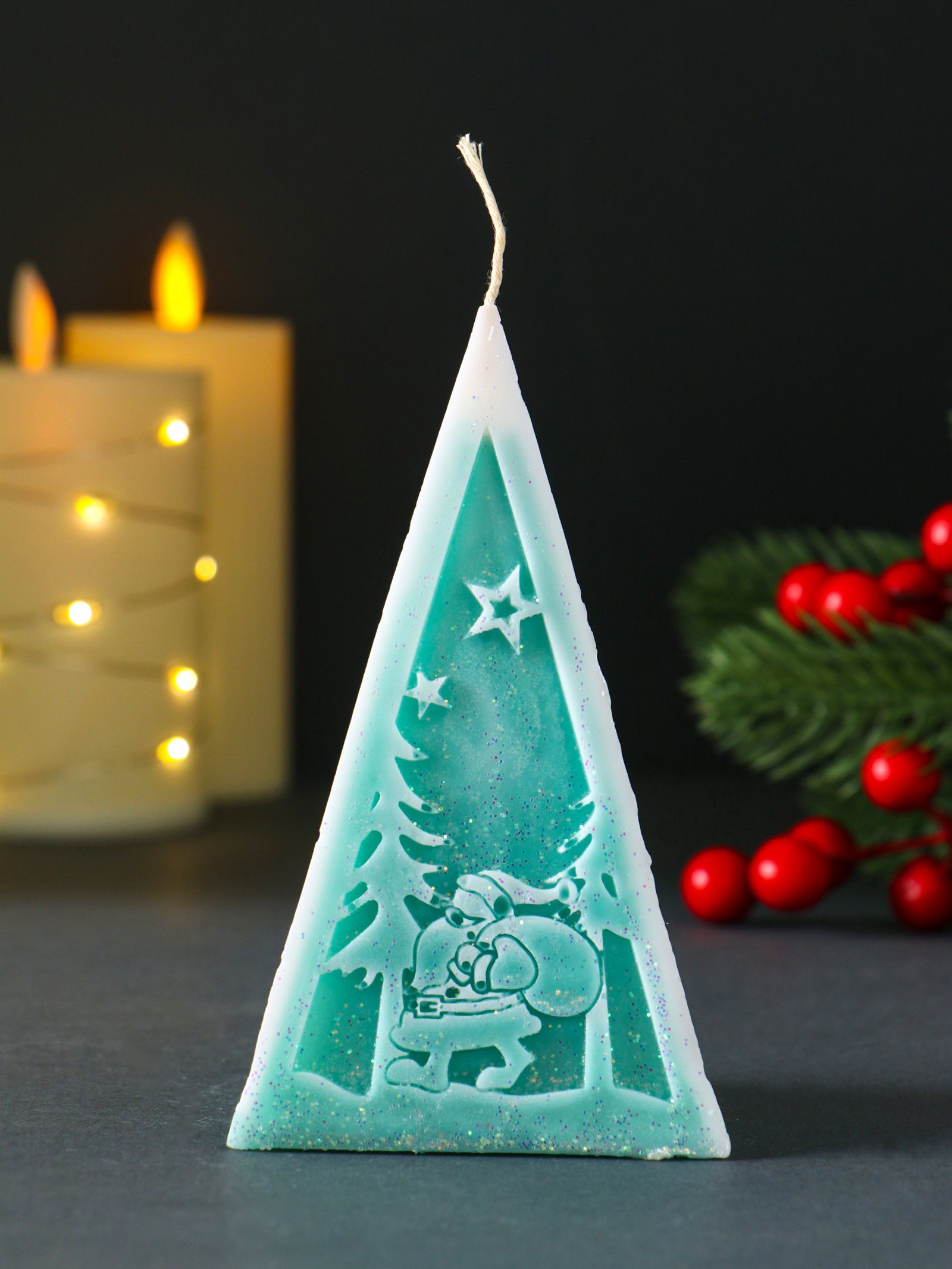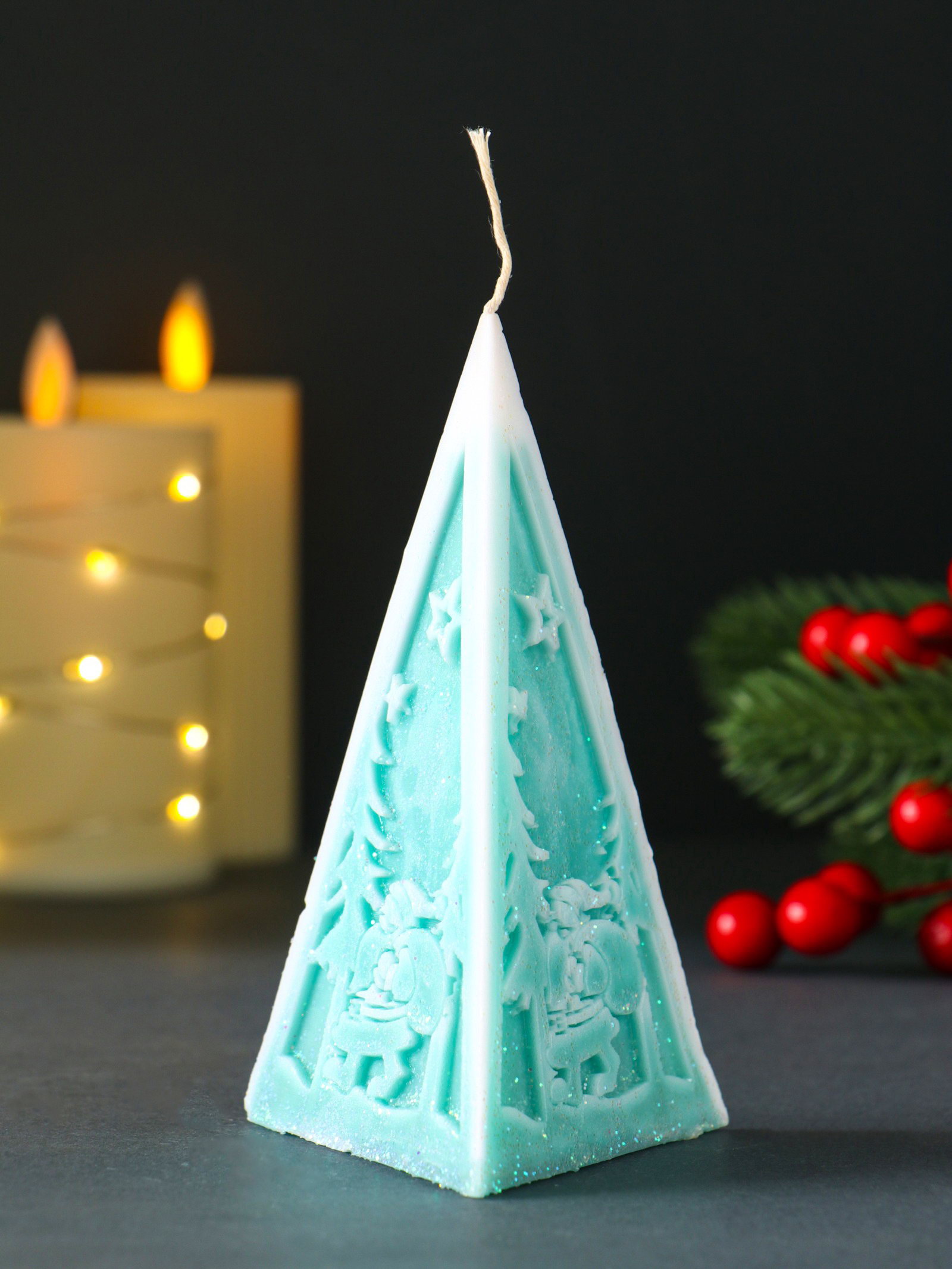 Свеча новогодняя пирамида "Дед Мороз", 6x6.5x12 cм, тиффани, Россия