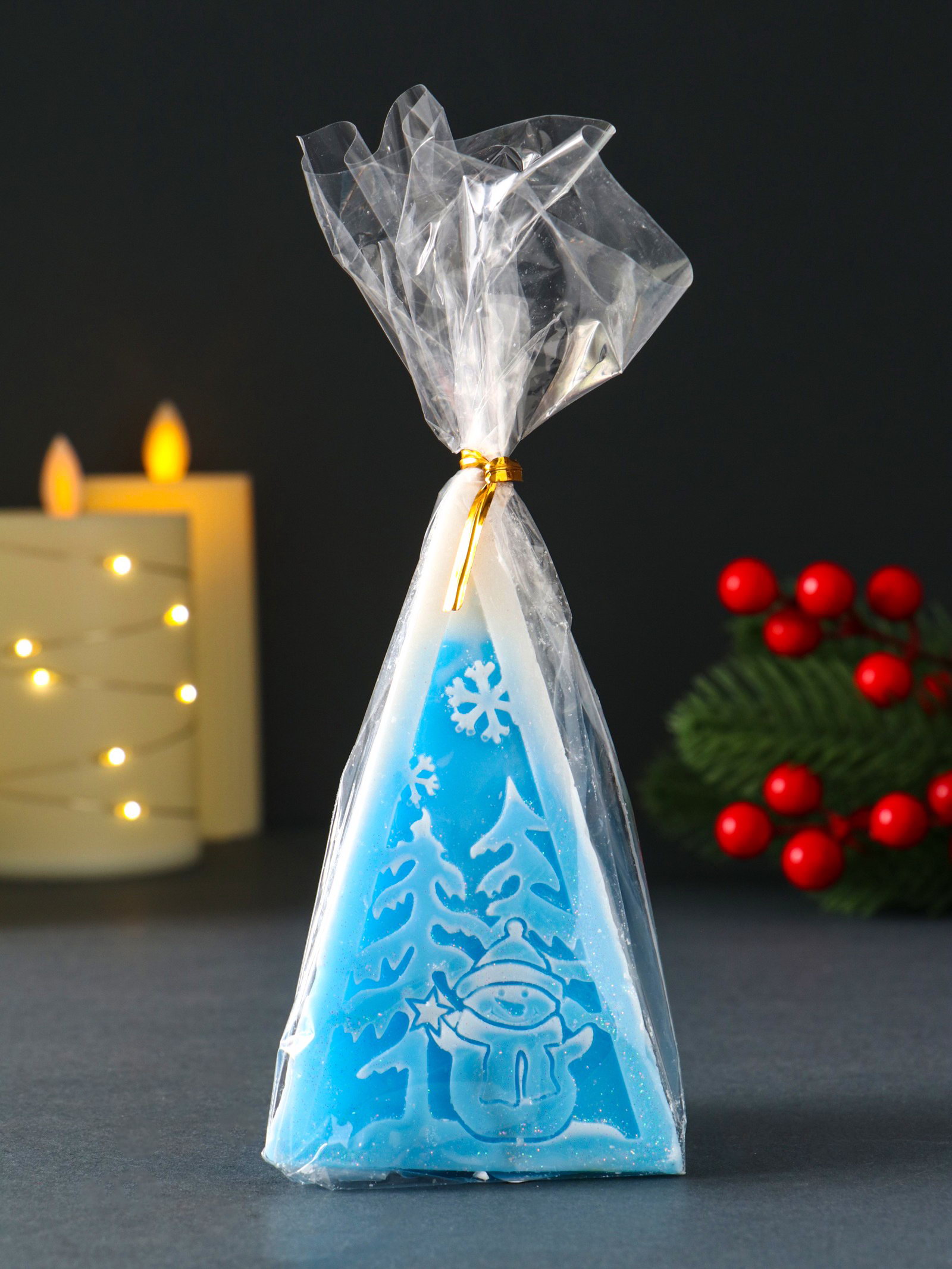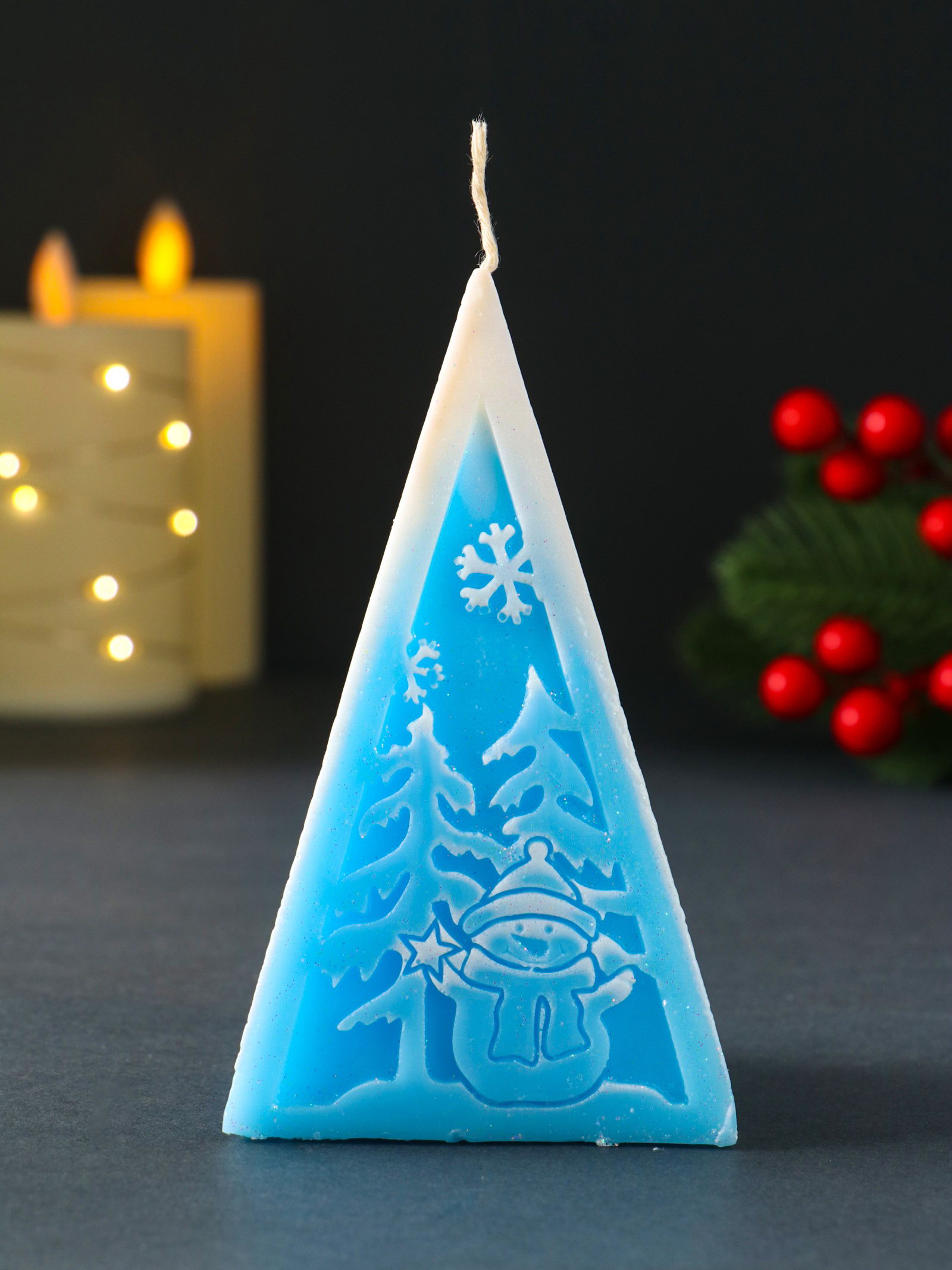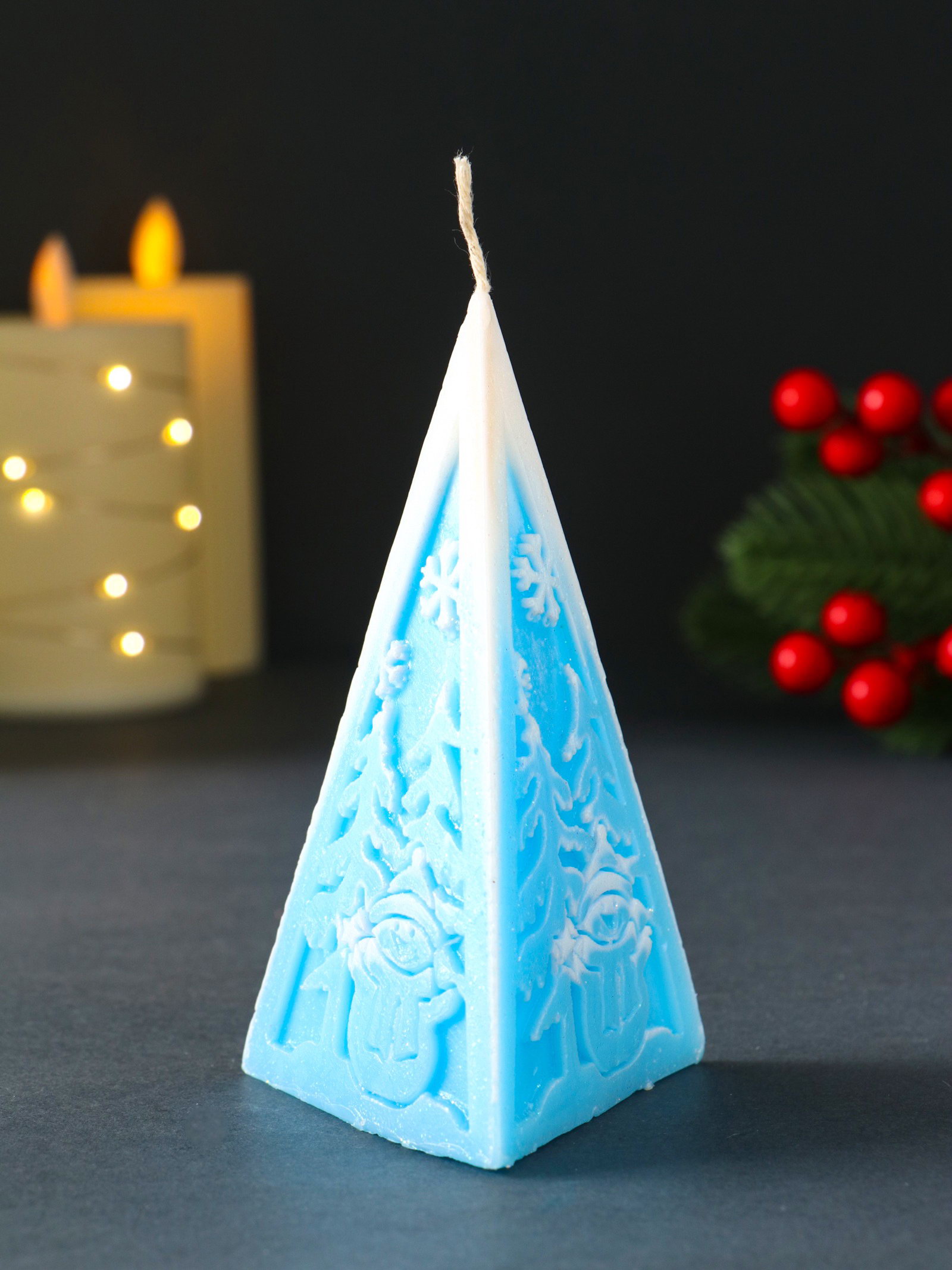Свеча новогодняя "Пирамида Снеговик", 12x6.5 мм, голубой, Россия