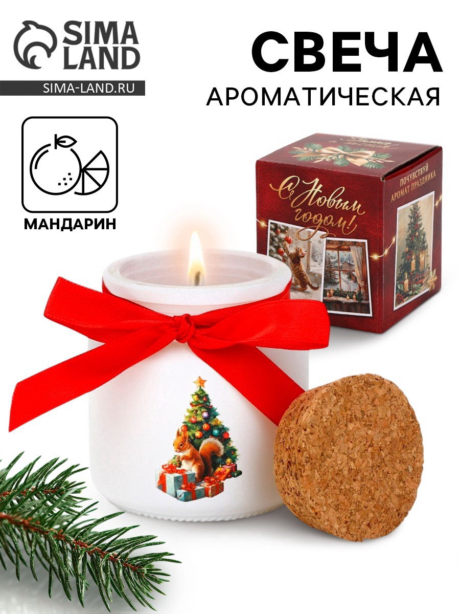 Ароматическая свеча в матовом стакане "Новогоднего уюта и тепла", аромат мандарин, 7.1x6.3x6.3 см., SEE YOU HOME, Китай