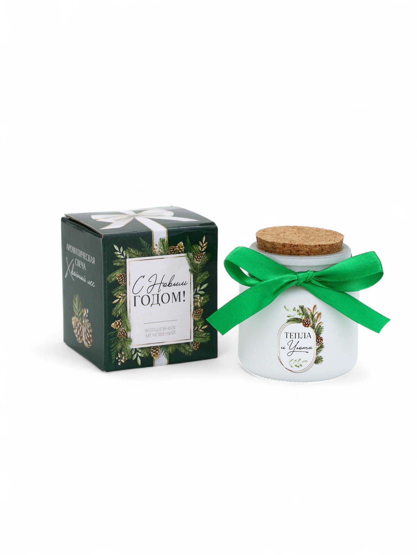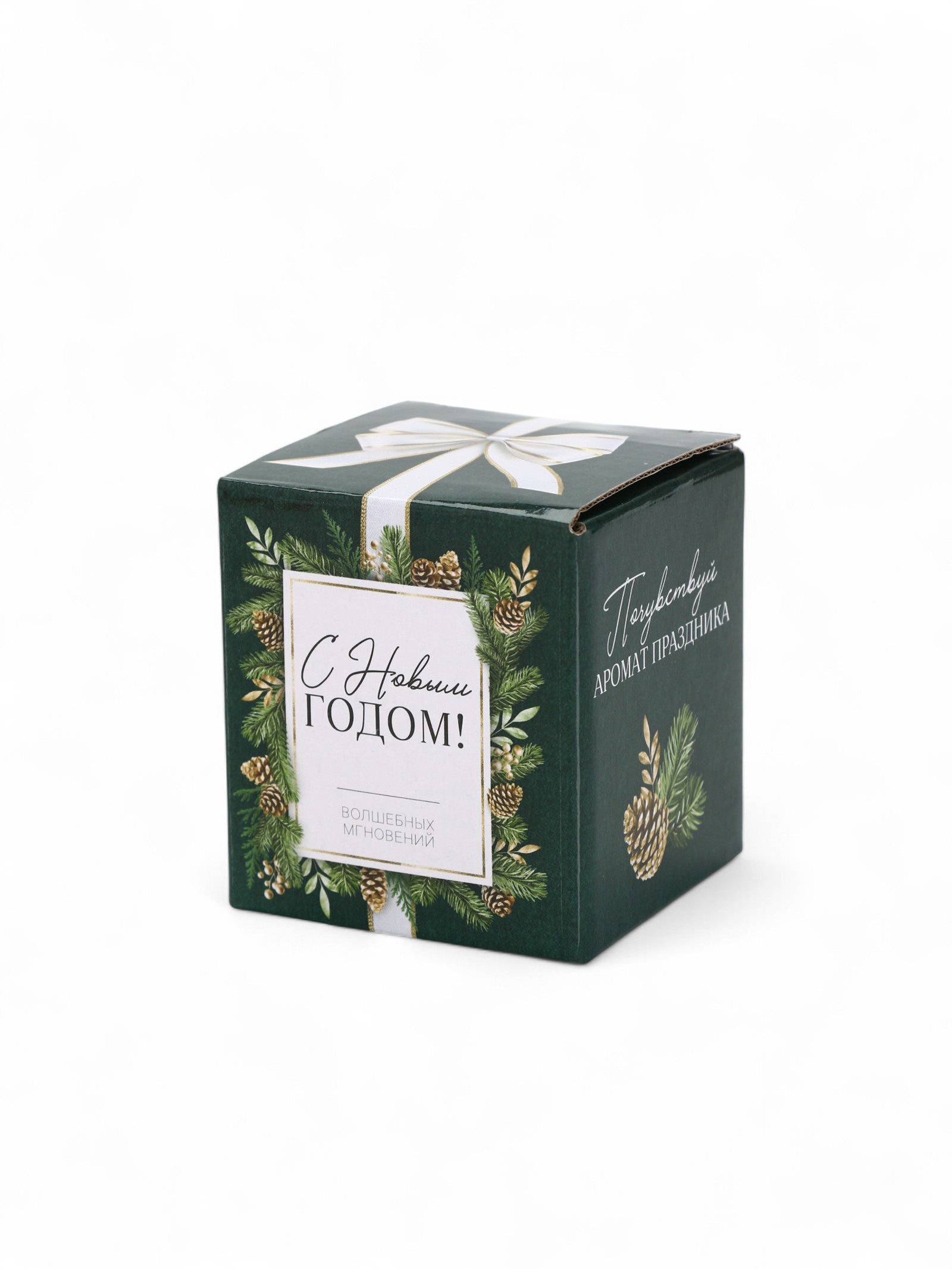 Ароматическая свеча в матовом стакане "С Новым годом", аромат хвойный лес, 7.1x6.3x6.3 см., SEE YOU HOME, Китай