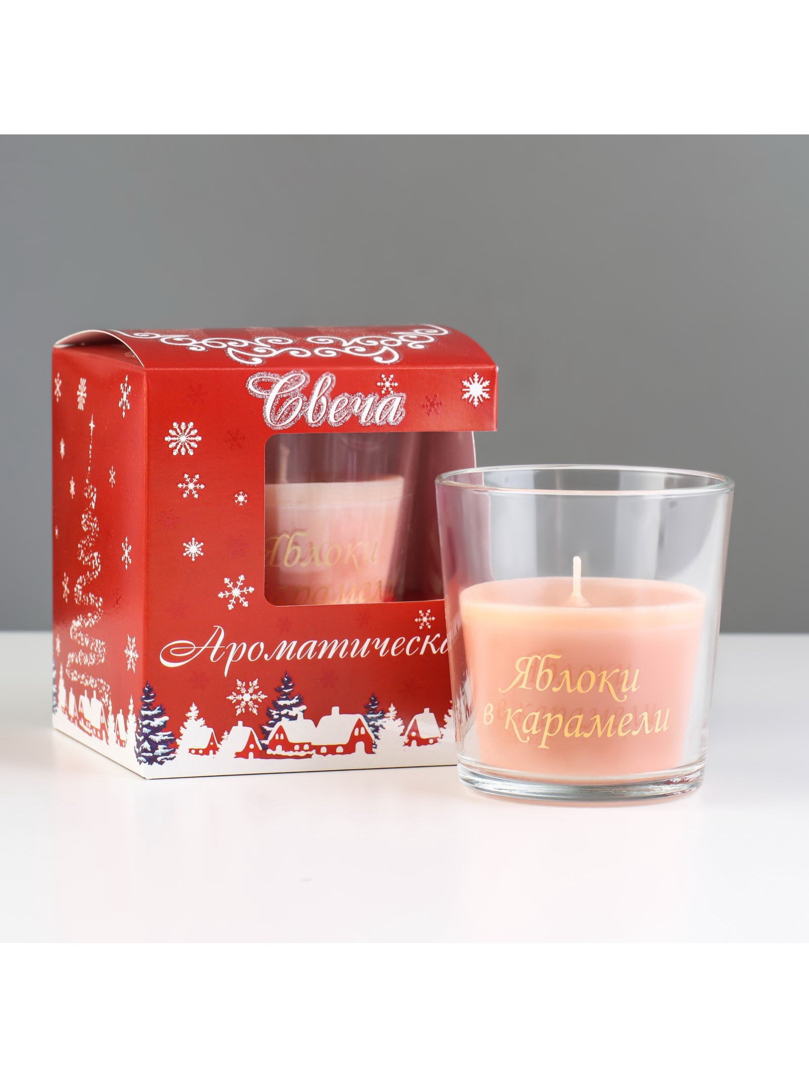 Ароматическая свеча в стакане "Яблоки в карамели", 6.5x8 см, бежевый, Богатство Аромата, Россия