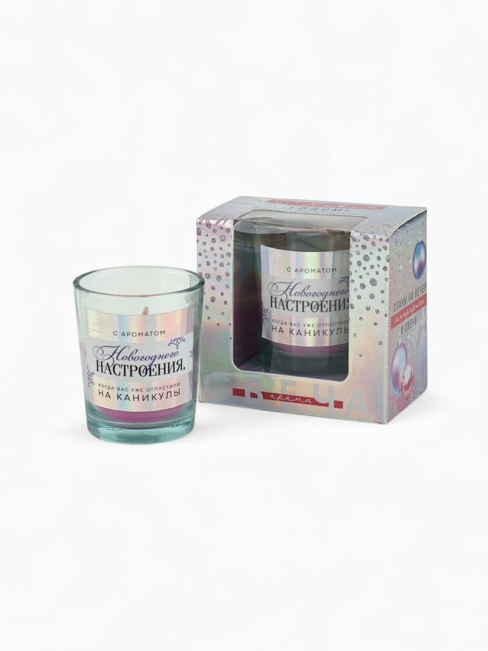 Ароматическая свеча новогодняя в стакане "На каникулы", ваниль, 5x6x5 см, 5x5x6 см., Сима-ленд, Китай