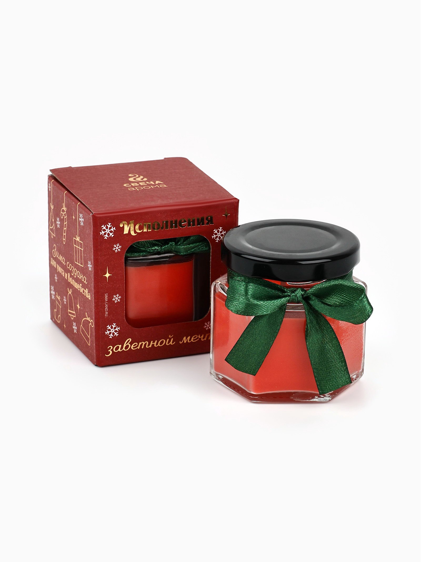 Ароматическая свеча новогодняя в банке "Исполнения заветной мечты", лесные ягоды, 5x5.5x5.5 см, 6.5x6.5x5.5 см., Сима-ленд, Китай