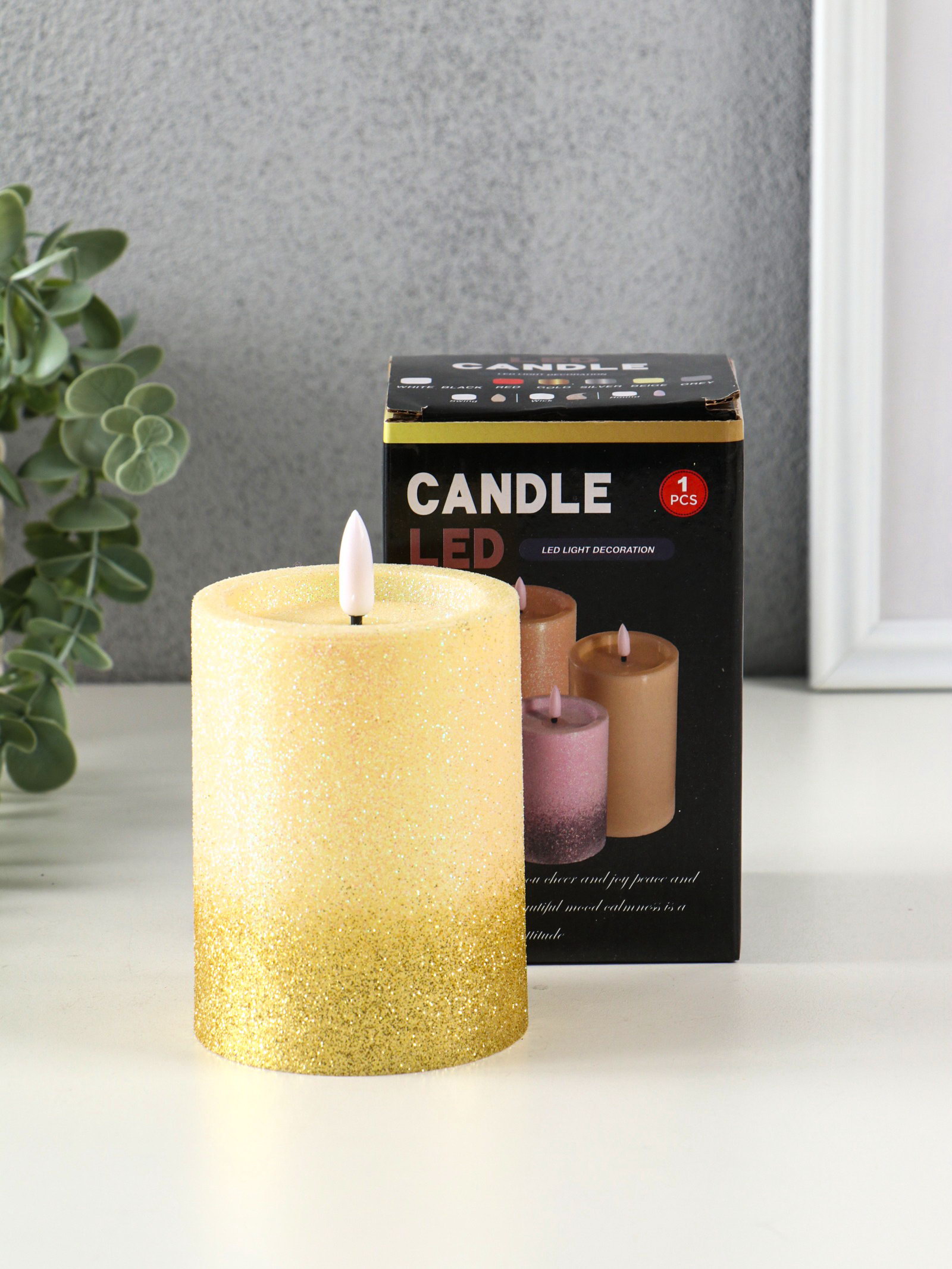 Светодиодная свеча LED "Блёстки", ночник, 3xAAA, золото, 7.5x7.5x10 см, 7.5x7.5x10 см., RISALUX, Китай