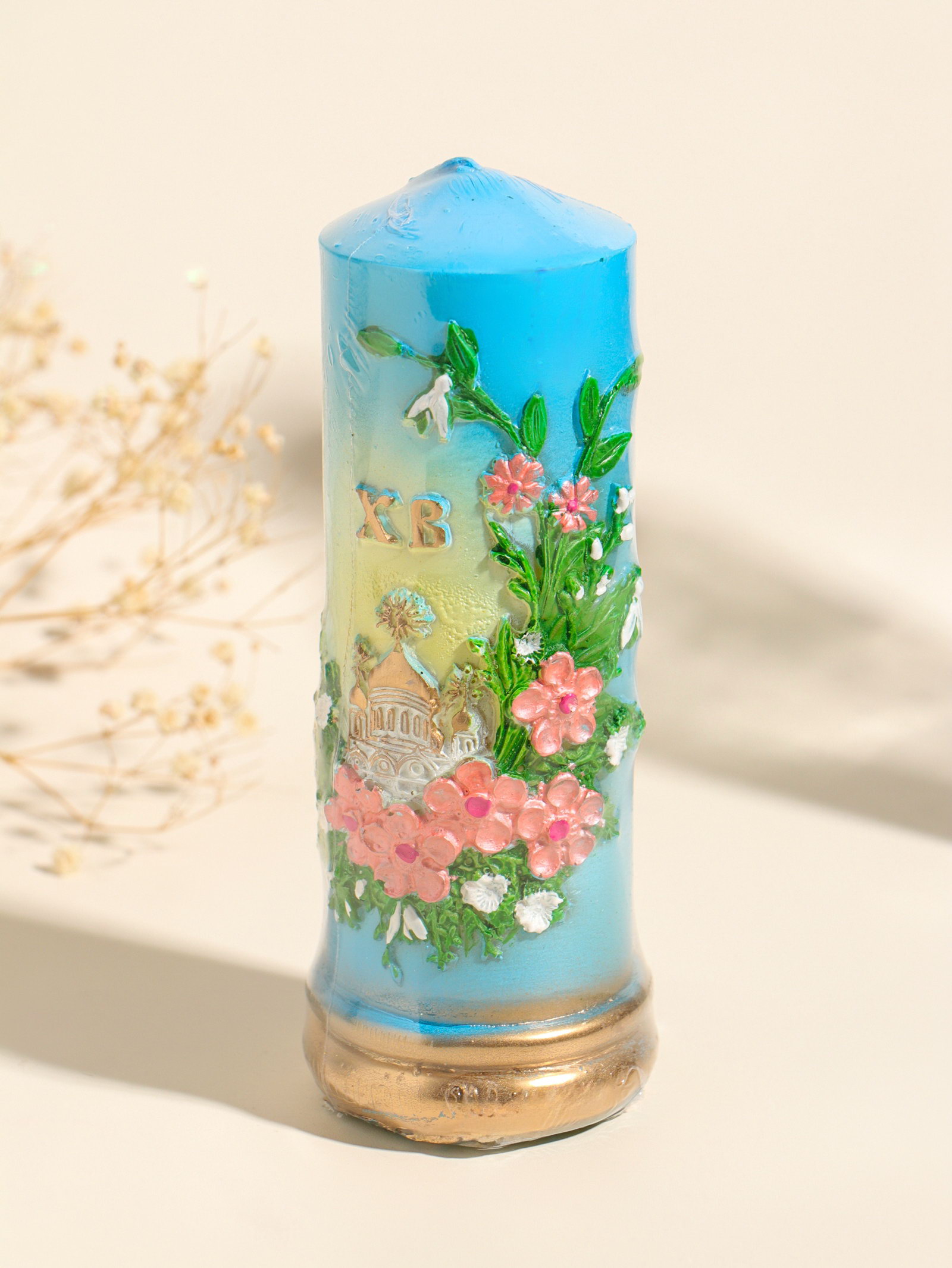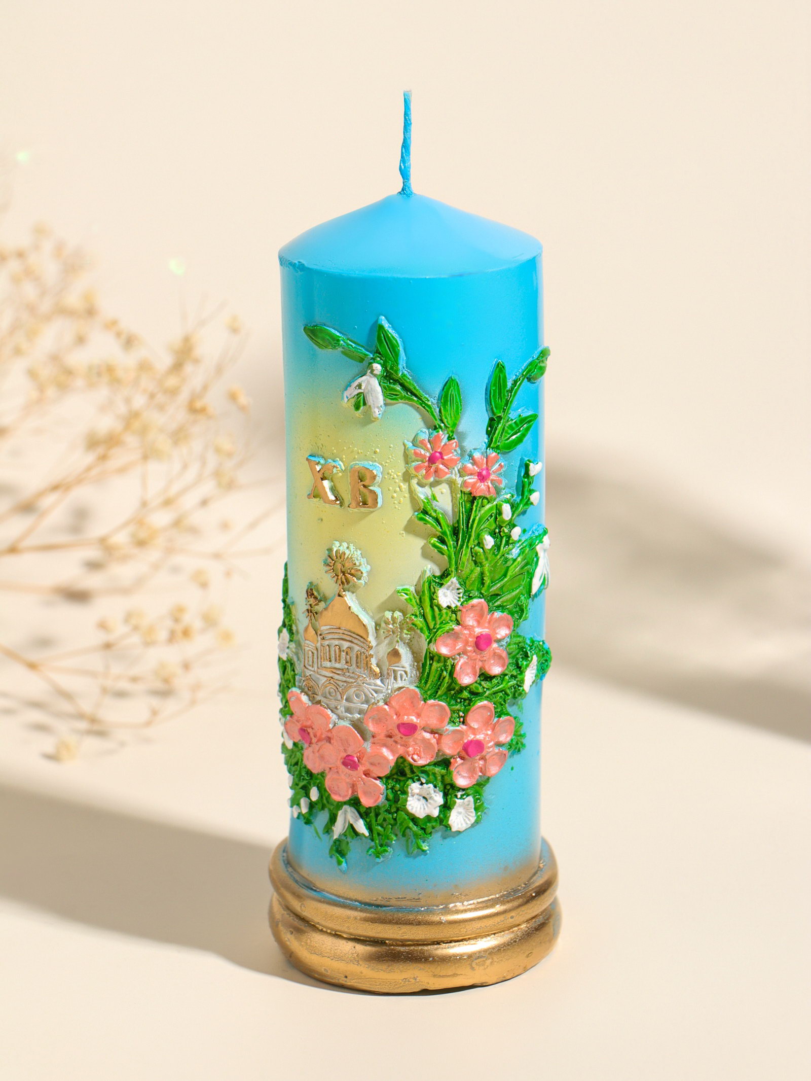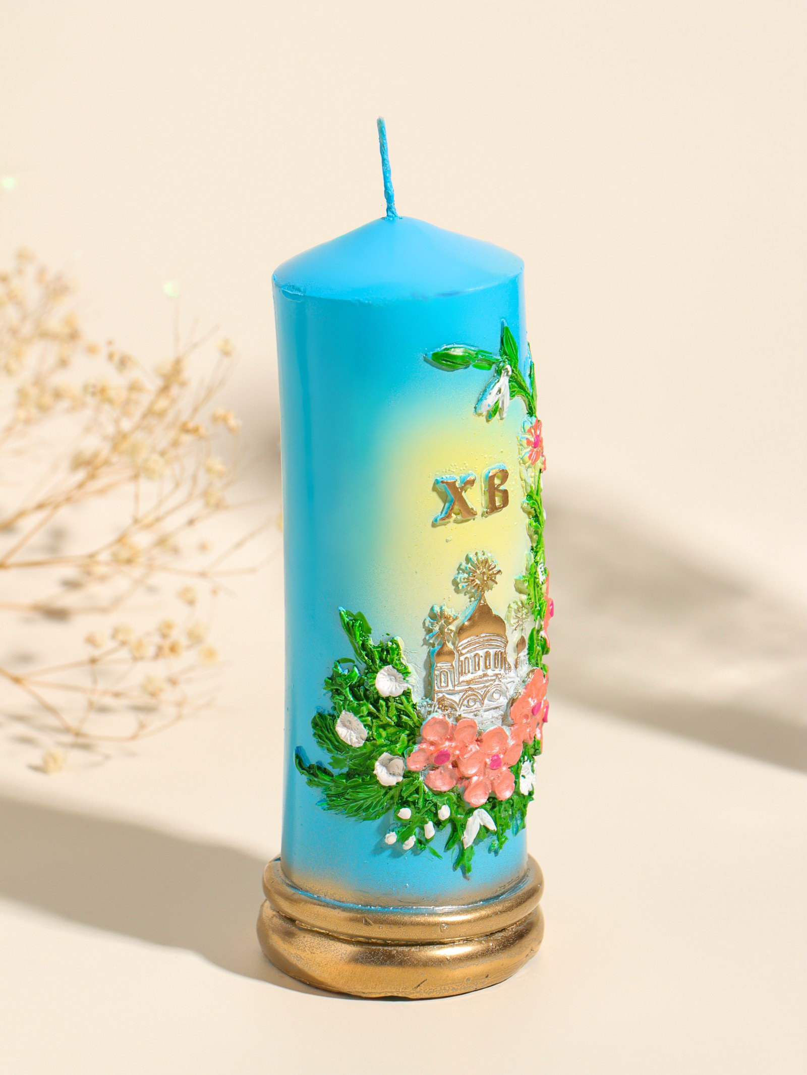 Цвет: Голубой, Разноцветный Размер упаковки: 6 x 15 x 6 см. tnved: 3406000000 Температурное ограничение: Нет Форма свечи: Цилиндр Состав: Парафин Тематика праздника: Пасха Ароматизированные: Нет Высота свечи, см: 15.5 Голубая пасхальная свеча в виде столбика создаст в доме атмосферу светлого праздника. Её чистый, спокойный цвет напоминает о весеннем небе и символизирует надежду. Классическая цилиндрическая форма и ровное горение делают эту свечу универсальным элементом пасхального декора она гармонично дополнит и праздничный стол, и домашний иконостас. Особенности