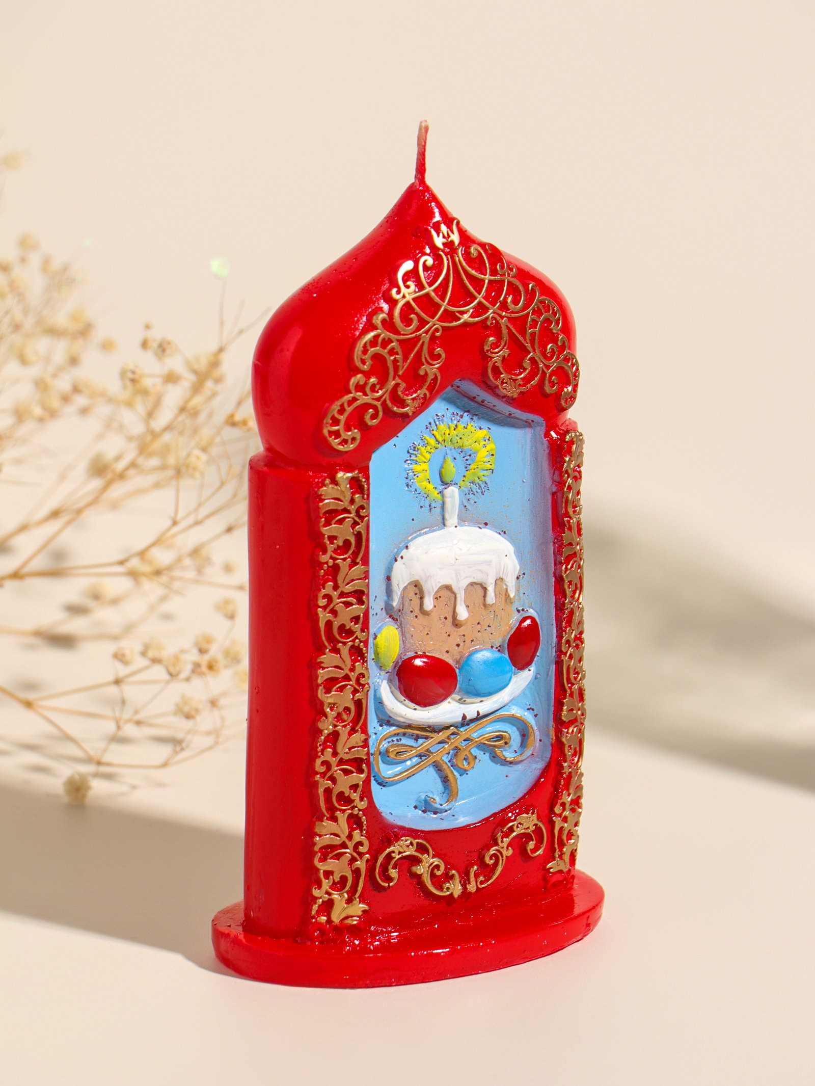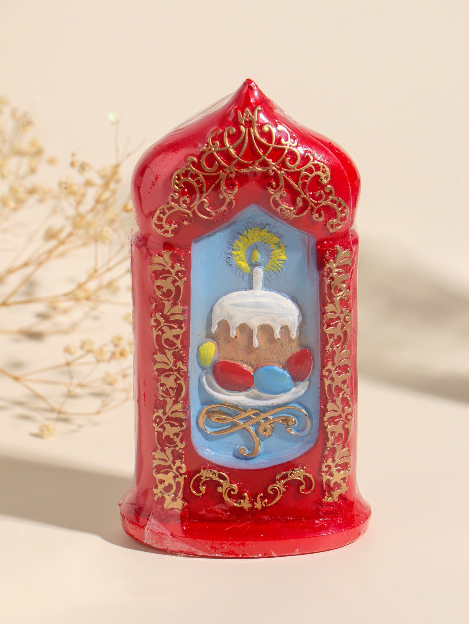 Цвет: Красный, Разноцветный Размер упаковки: 15 x 4.5 x 8 см. tnved: 3406000000 Температурное ограничение: Нет Состав: Парафин Тематика праздника: Пасха Форма свечи: Фигурная Ароматизированные: Нет Высота свечи, см: 15 Эта пасхальная свеча создаёт тёплую и радостную атмосферу праздника. Фигурный кулич с яркой глазурью и праздничный красный цвет делают её центром пасхального стола или душевным подарком для близких. Свеча горит ровно и долго, наполняя дом особым, светлым настроением Светлого Воскресения. Детали
