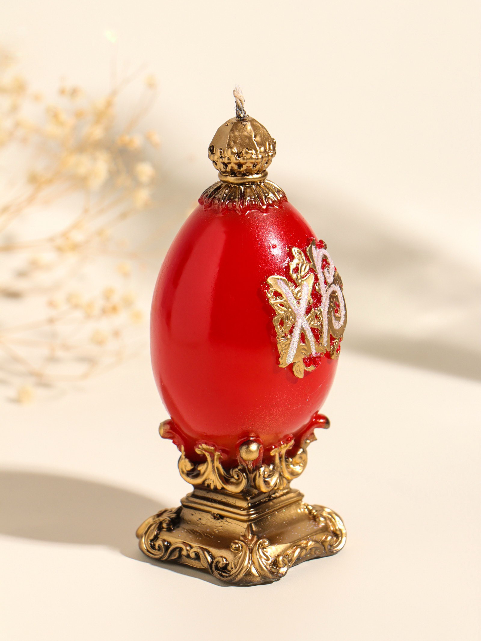 Цвет: Золотистый, Красный Размер упаковки: 5 x 11 x 5 см. tnved: 3406000000 Температурное ограничение: Нет Состав: Парафин Тематика праздника: Пасха Форма свечи: Фигурная Ароматизированные: Нет Высота свечи, см: 11 Это пасхальное яйцо-свеча станет тёплым акцентом праздничного стола или душевным подарком, наполняющим дом особым, торжественным настроением. Его классическая форма и благородное сочетание золота и красного создают атмосферу уюта и светлой радости, характерную для этого дня. Детали