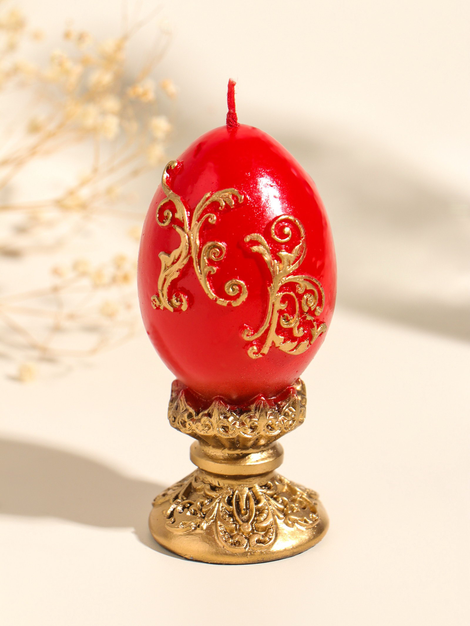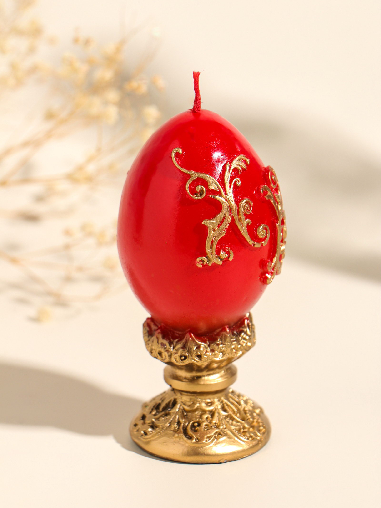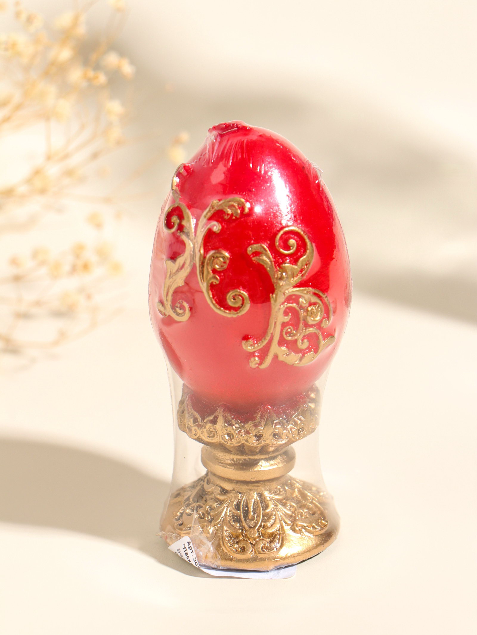 Цвет: Золотистый, Красный Размер упаковки: 4.5 x 10 x 4.5 см. tnved: 3406000000 Температурное ограничение: Нет Состав: Парафин Тематика праздника: Пасха Ароматизированные: Нет Форма свечи: Фигурная Высота свечи, см: 10 Это пасхальное яйцо-свеча станет центром праздничного стола, создавая тёплую и торжественную атмосферу. Его классическая форма и благородное сочетание золота и красного передают саму суть светлого праздника радость, свет и надежду. Зажжённая свеча наполнит дом уютным, живым светом, который мерцает подобно огню в лампаде. Детали и исполнение