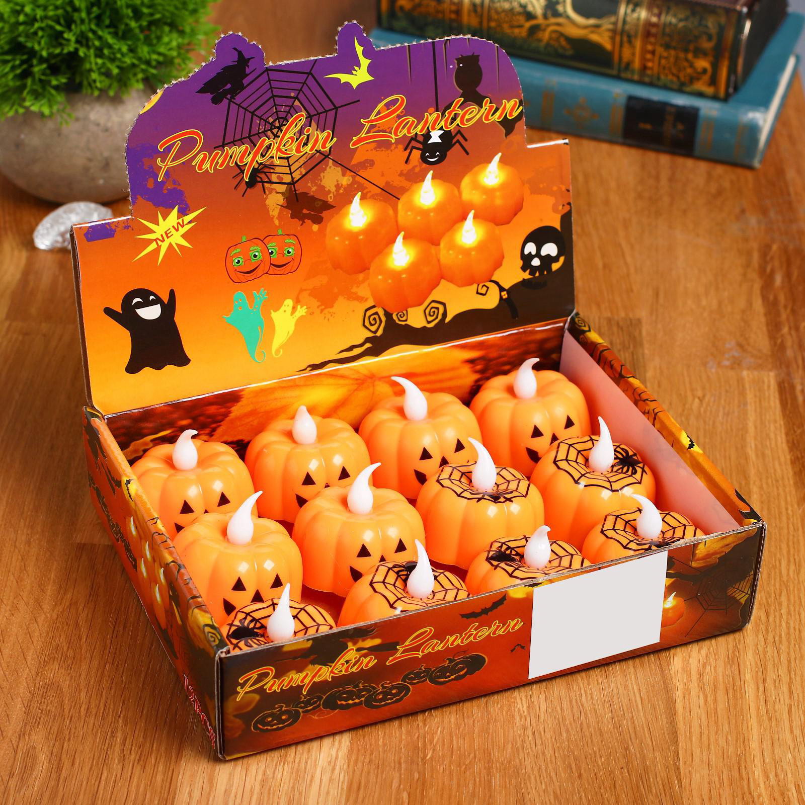 Свеча на Хеллоуин "Тыковка", светодиодная, МИКС, 4x4.5x4.5 см., Китай