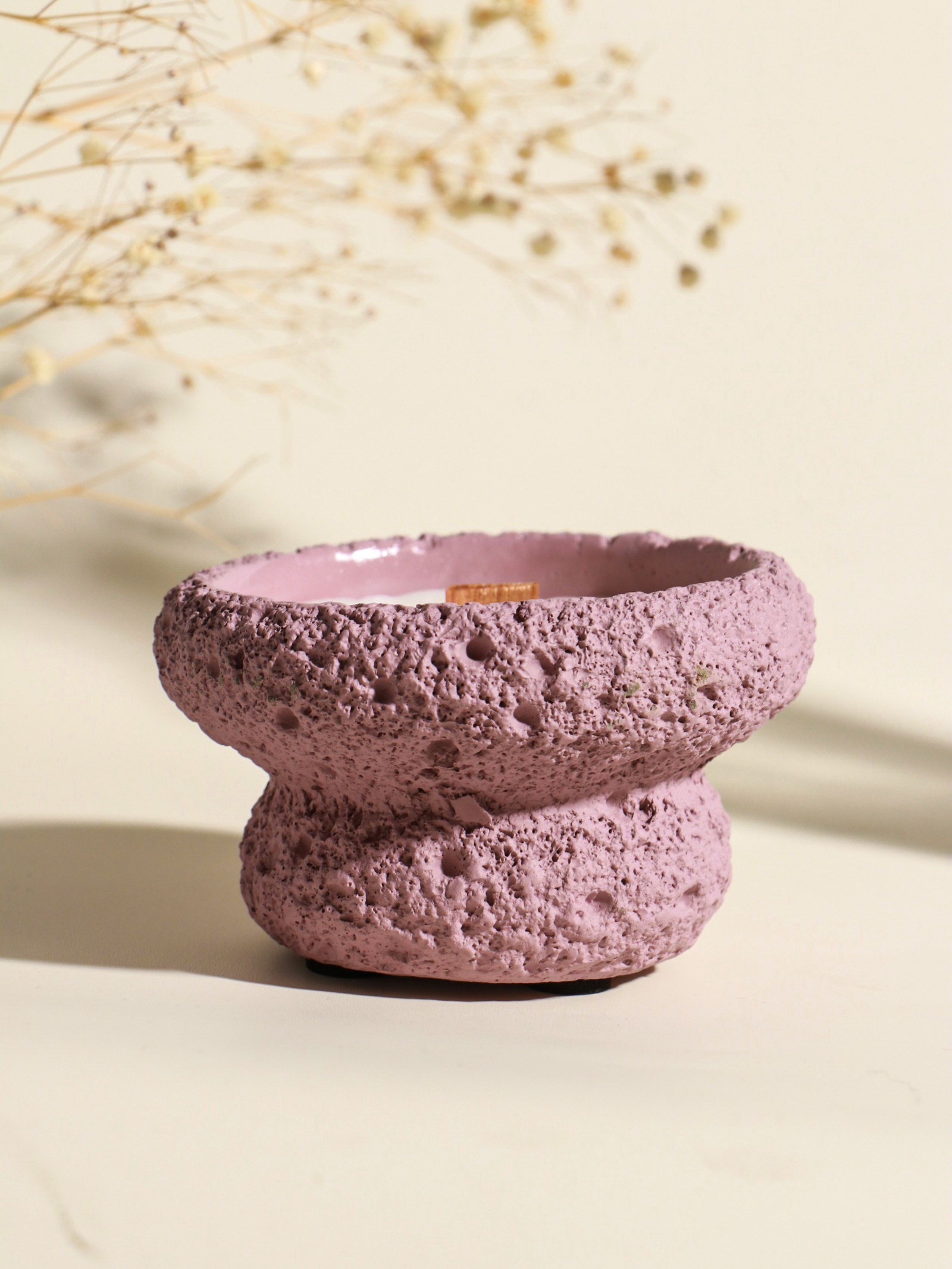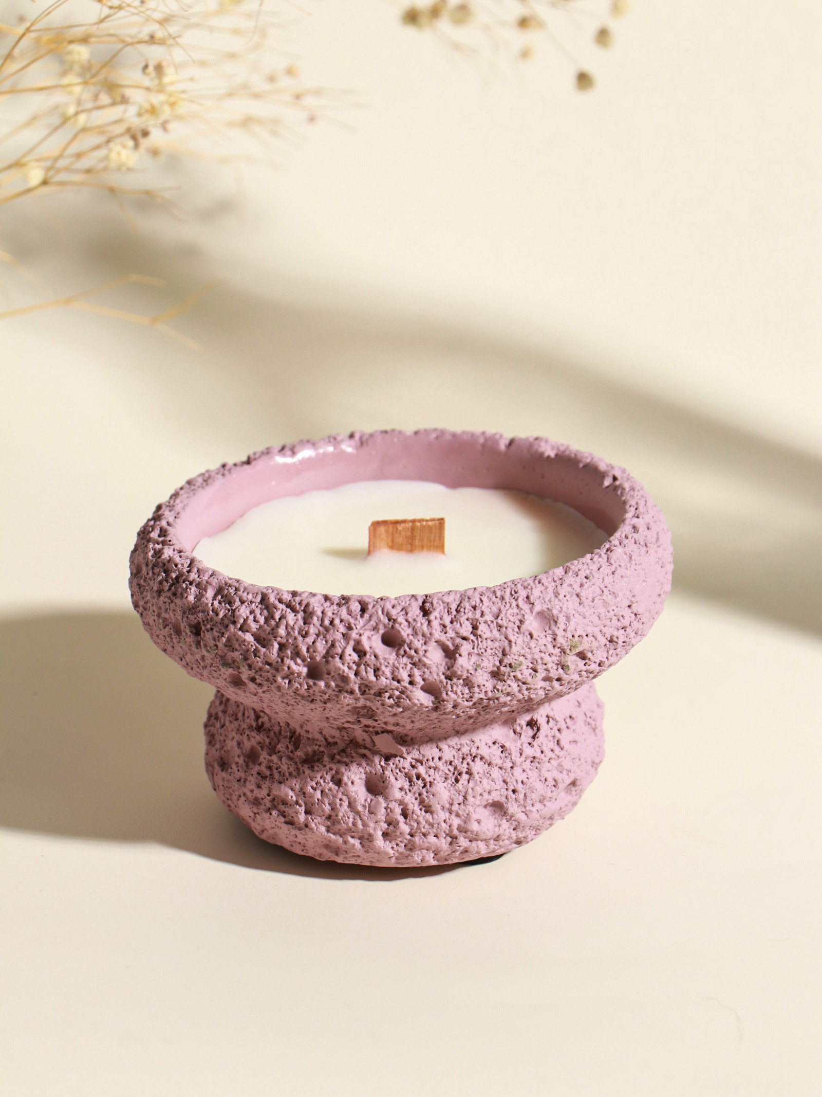 Свеча в подсвечнике "Чаша", деревянный фитиль, розовая, 9.3x9.3x5.5 см, 9.3x9.3x5.5 см., Китай