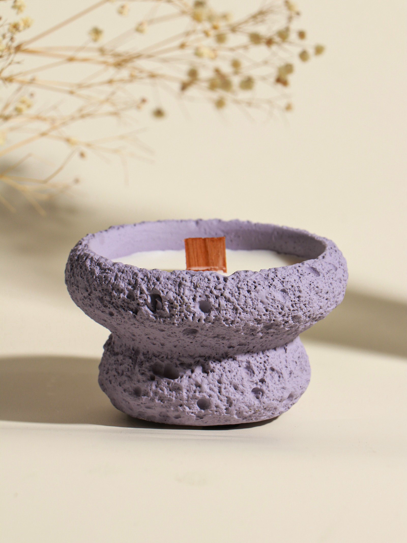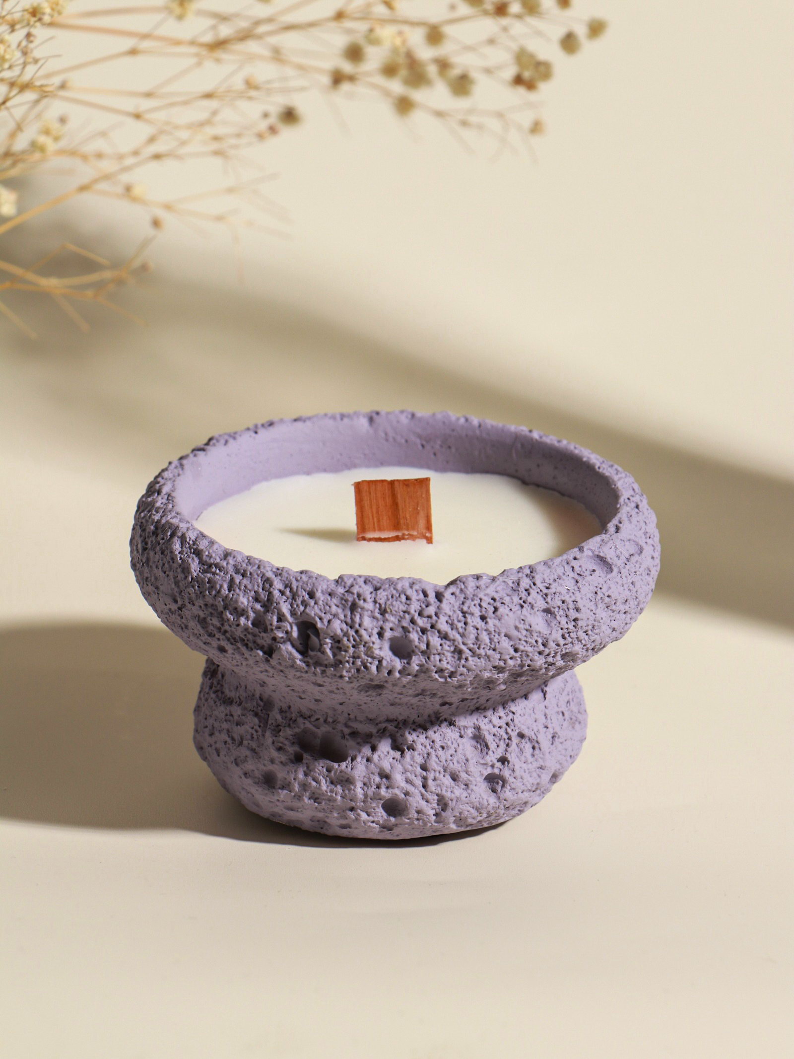 Свеча в подсвечнике "Чаша", деревянный фитиль, сиреневая, 9.3x9.3x5.5 см, 9.3x9.3x5.5 см., Китай