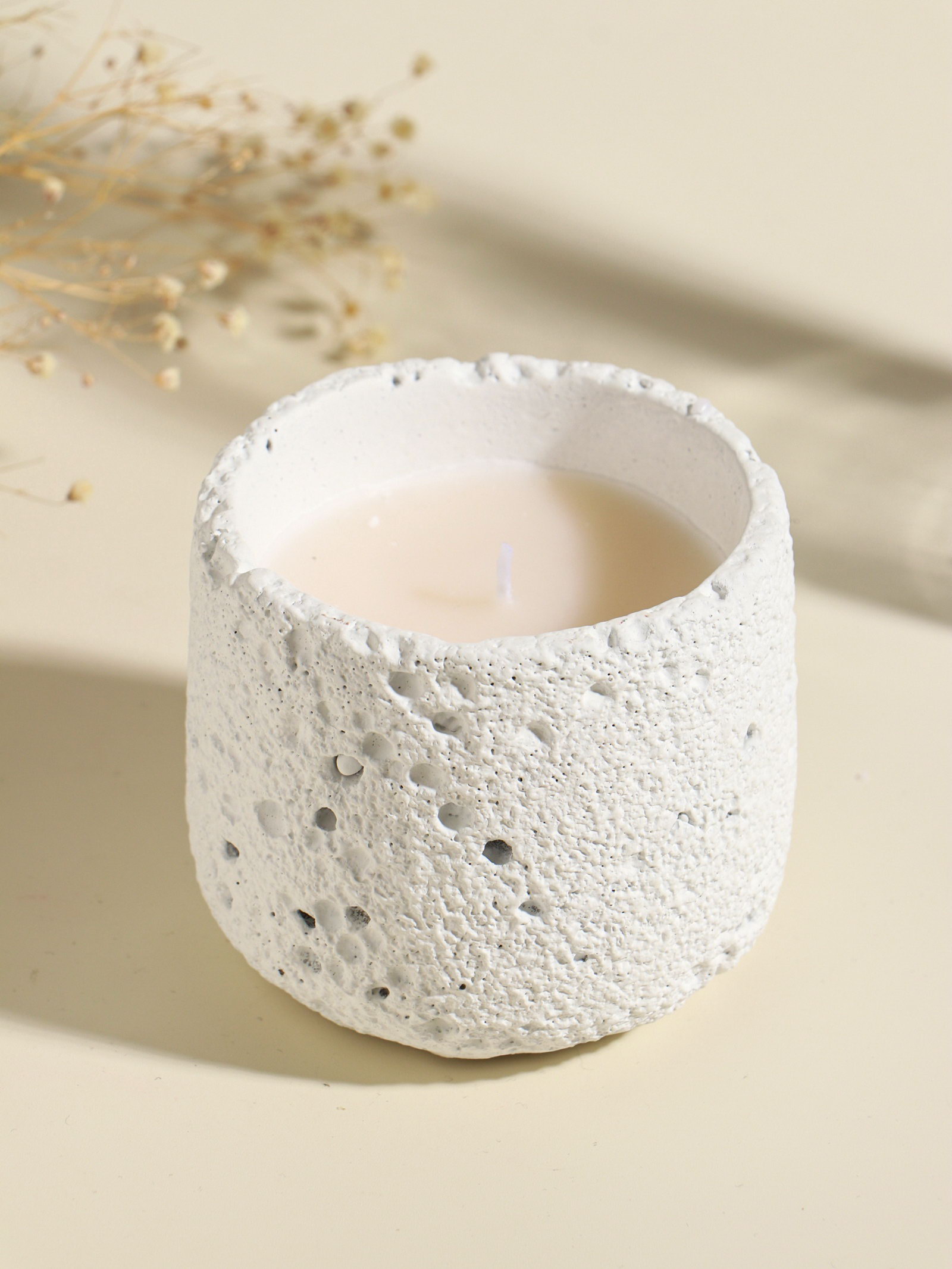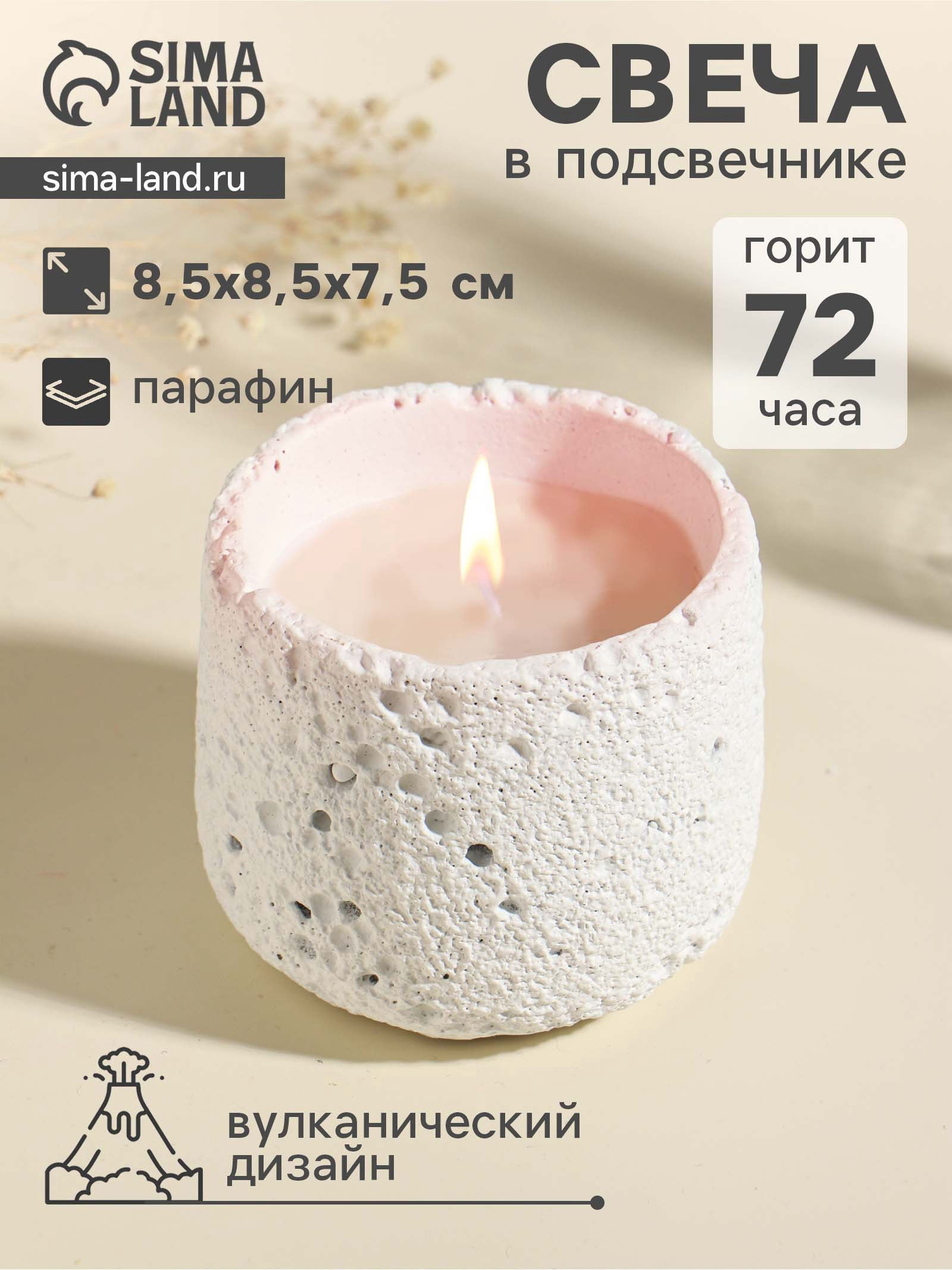 Свеча в подсвечнике вулканическом "Лава", белая, 8.5x8.5x7.5 см, 8.5x8.5x7.5 см., Китай