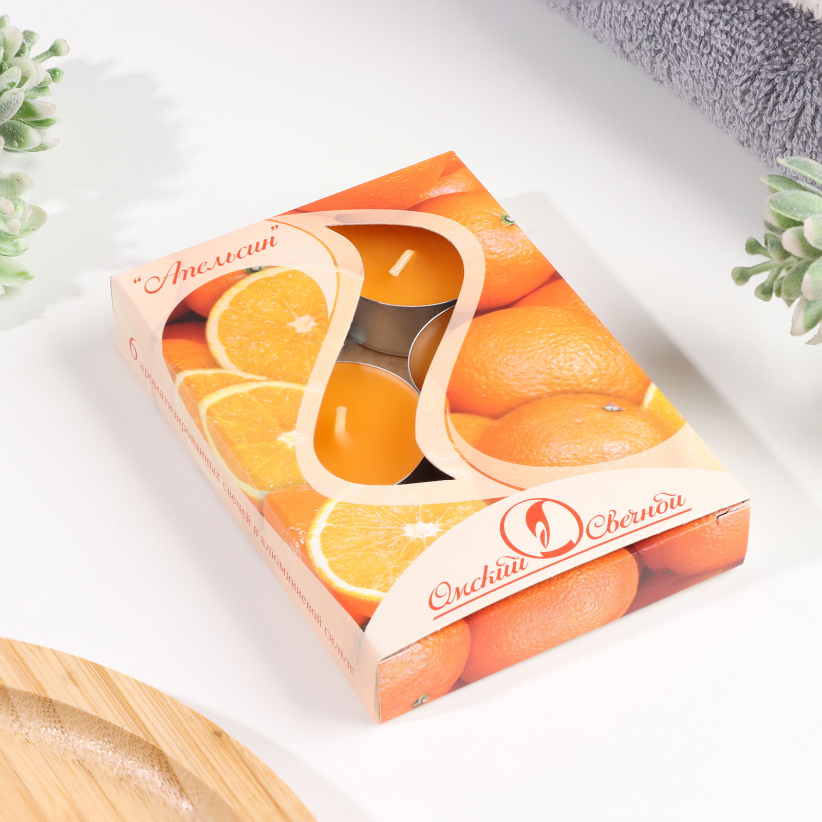 Набор свечей ароматических чайных "Апельсин", 3.8x1.6 см, 3.5 ч, 12 г, 6 шт., 3.8x3.8x1.6 см., Омский свечной завод, Россия