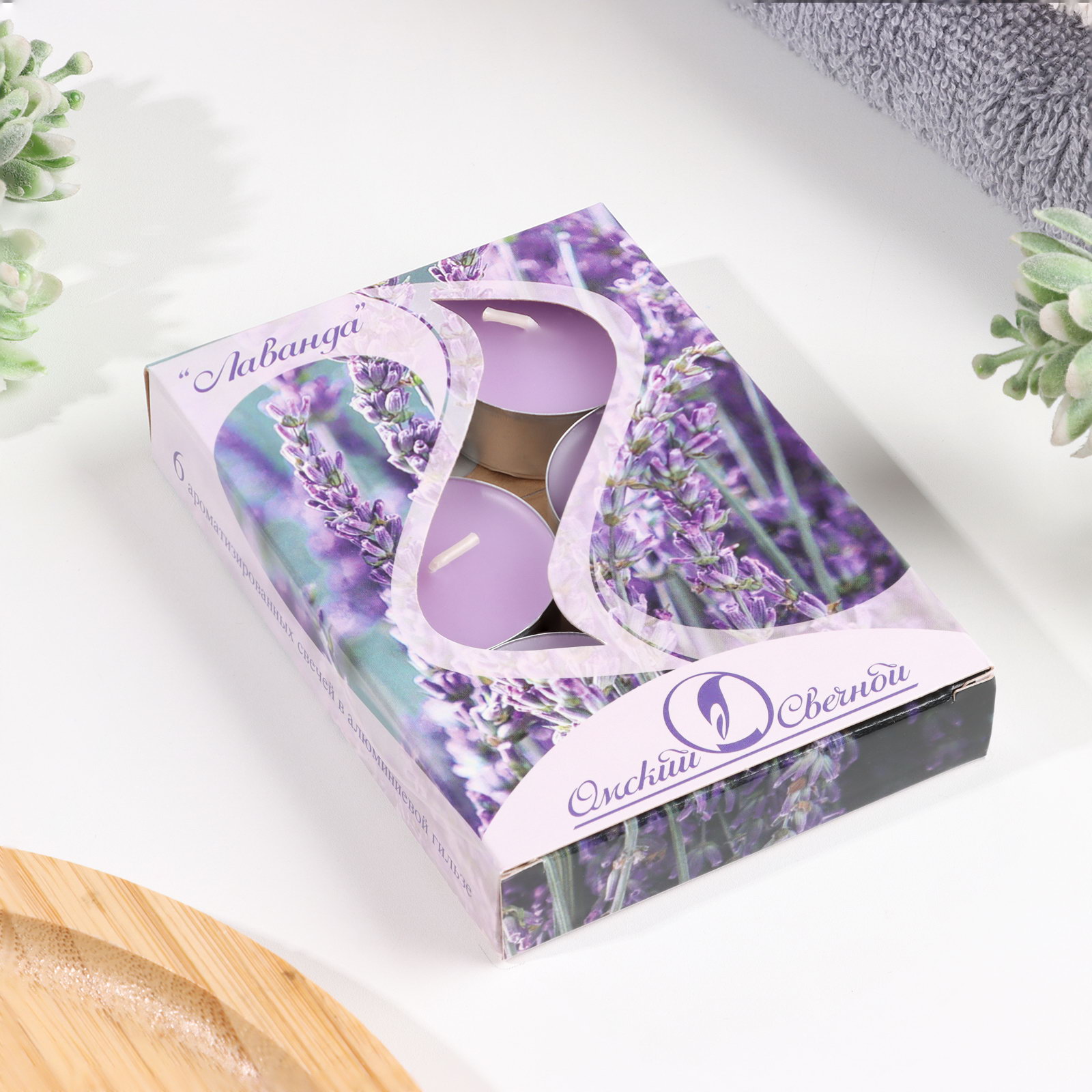 Набор свечей ароматических чайных "Лаванда", 3.8x1.6 см, 3.5 ч, 12 г, 6 шт., 3.8x3.8x1.6 см., Омский свечной завод, Россия
