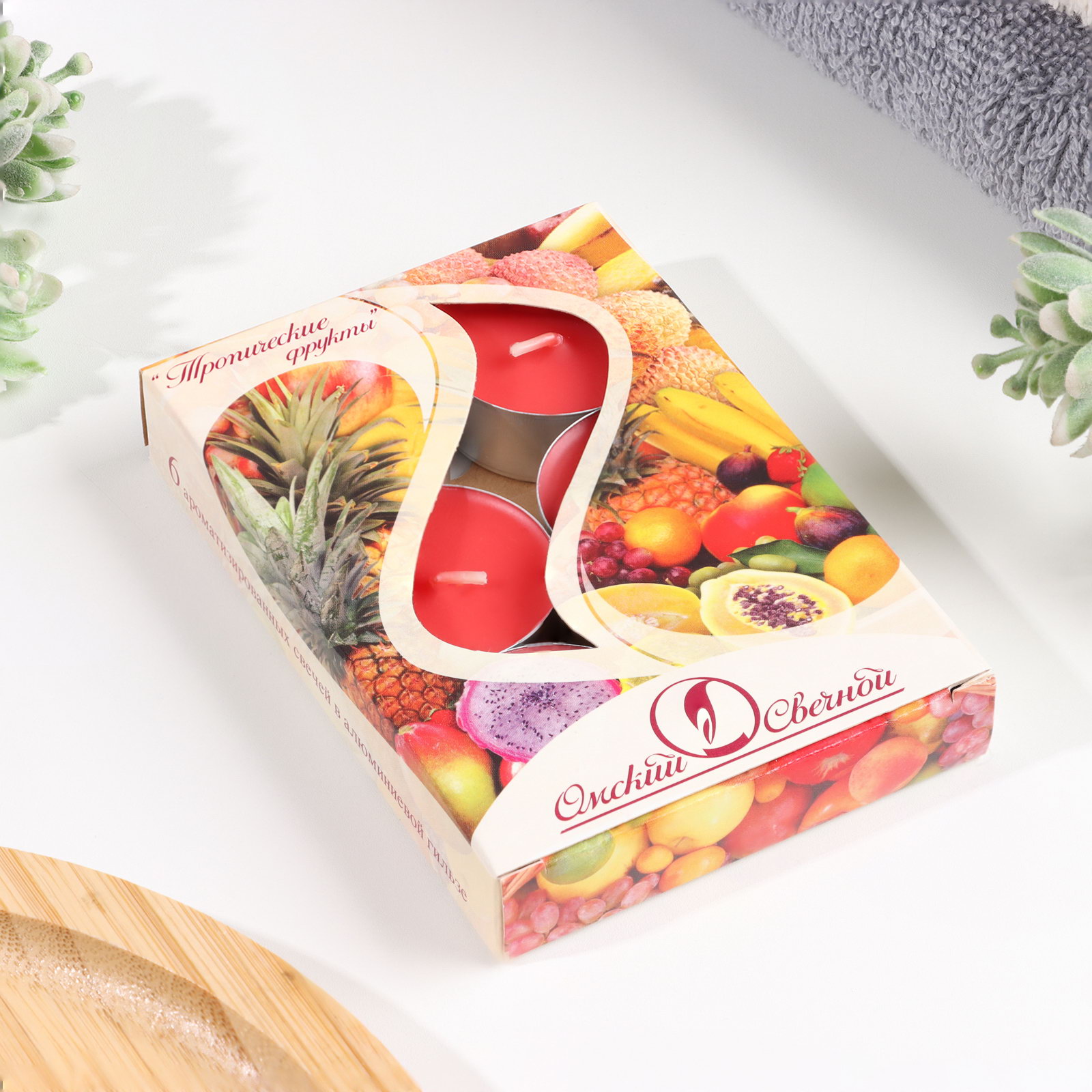Набор свечей ароматических чайных "Тропические фрукты", 3.8x1.6 см, 3.5 ч, 12 г, 6 шт., 3.8x3.8x1.6 см., Омский свечной завод, Россия