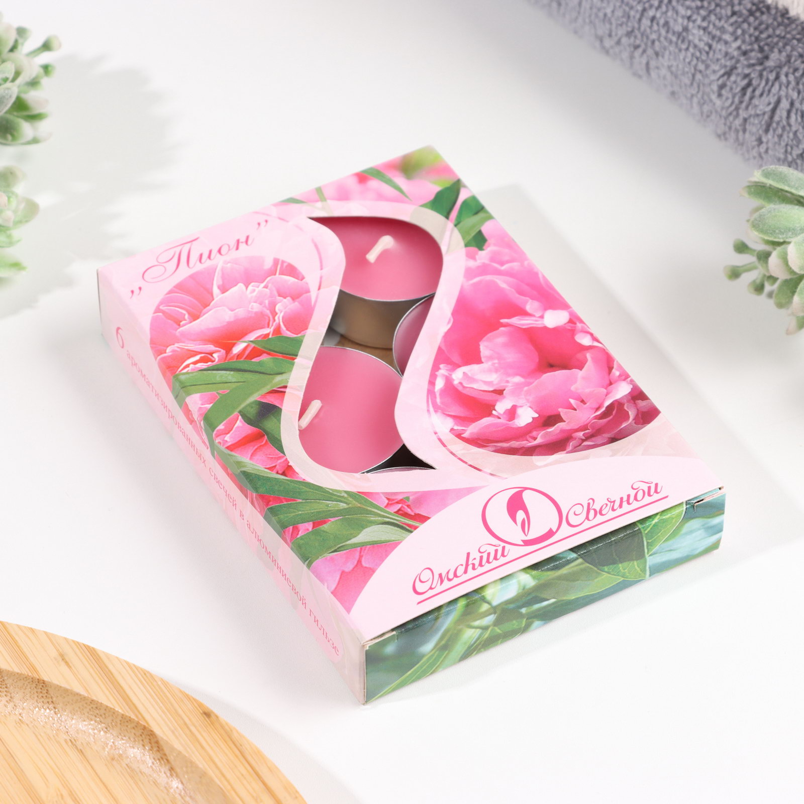 Набор свечей ароматических чайных "Пион", 3.8x1.6 см, 3.5 ч, 12 г, 6 шт., Омский свечной завод, Россия