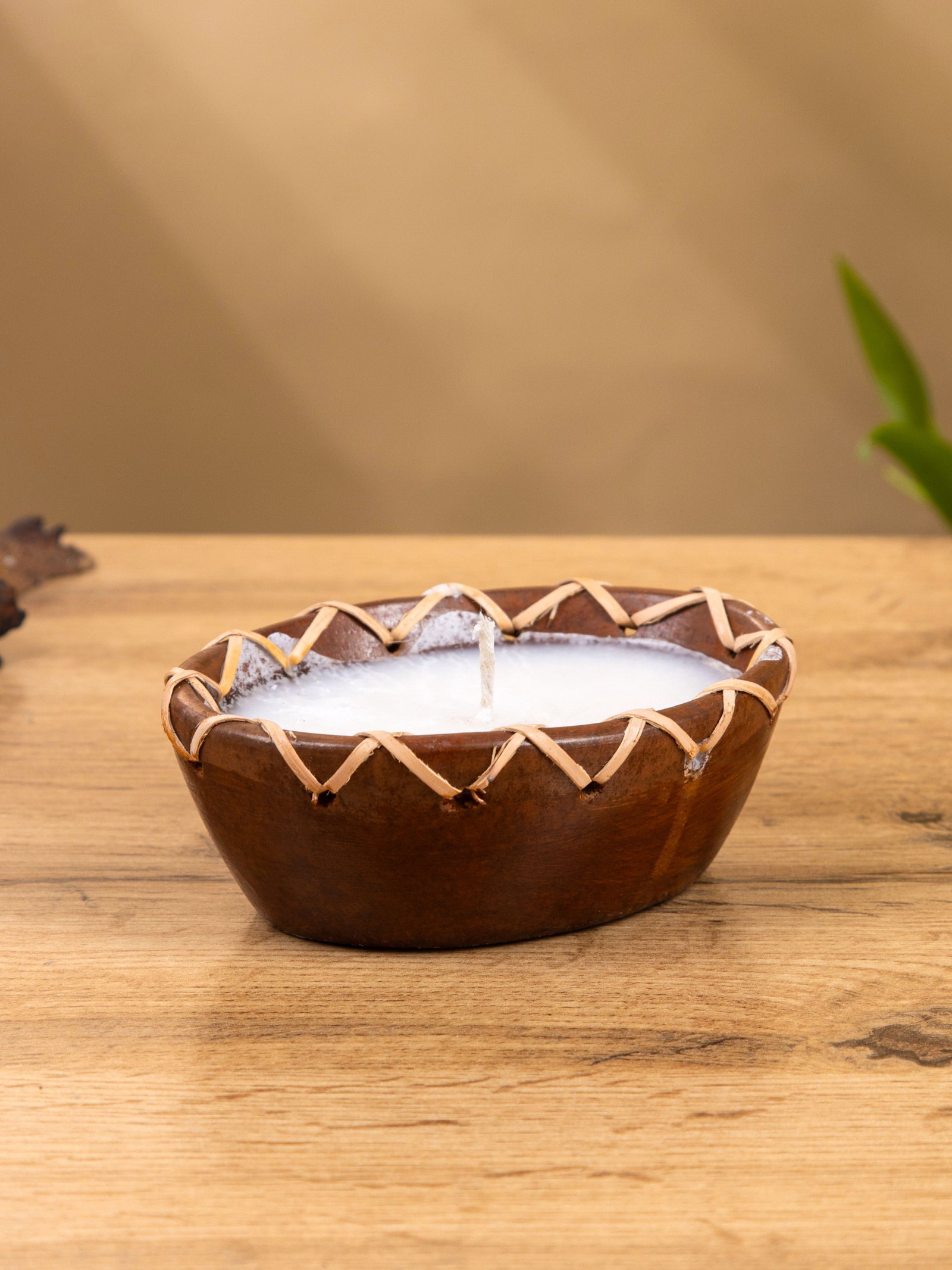 Свеча в керамической чаше, 12x9x5 см, 9x12x5 см., Индонезия