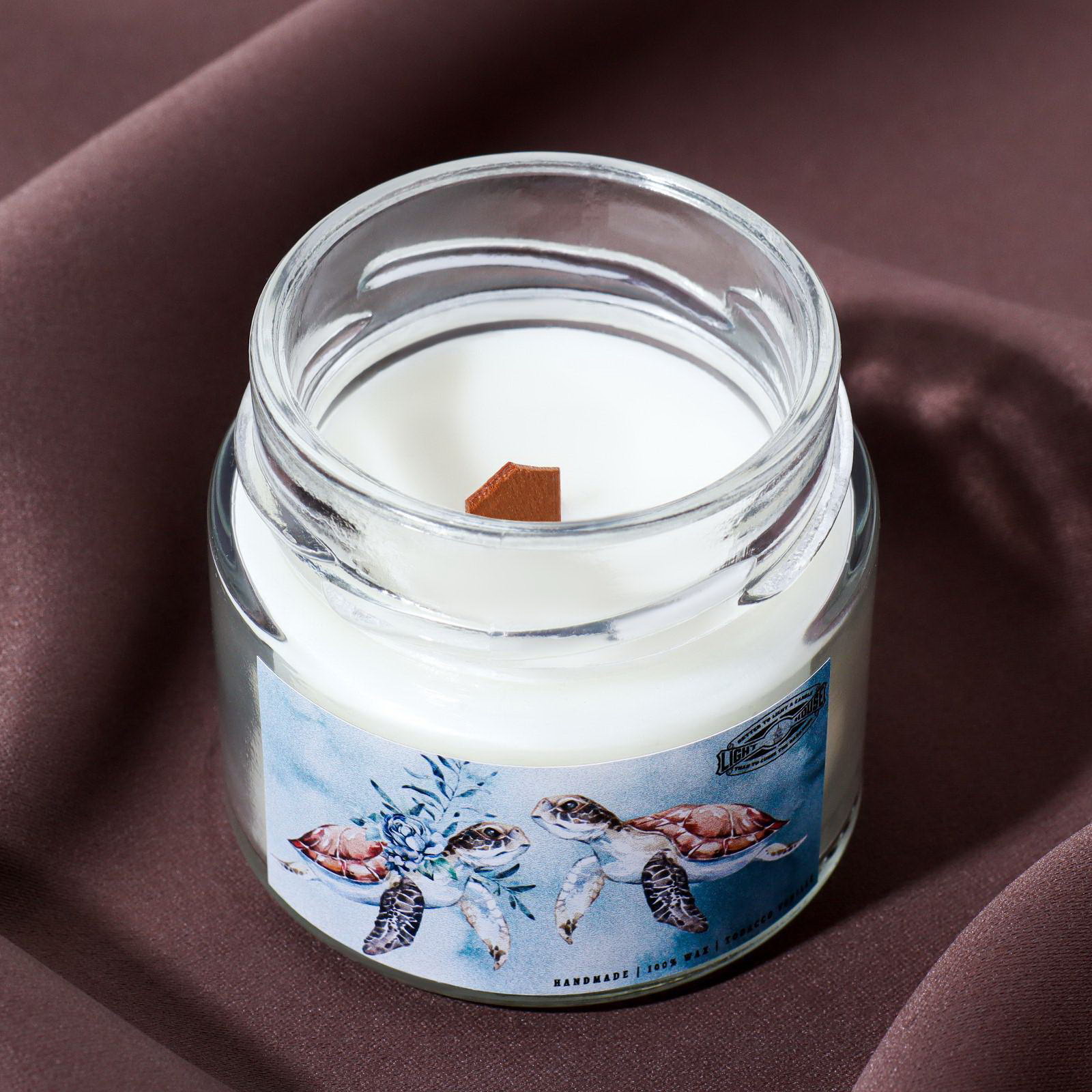 Ароматическая свеча в банке с деревянным фитилем, соевый воск, 100 мл, амбра, Россия