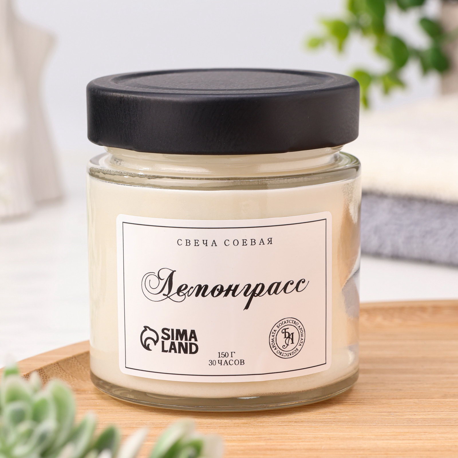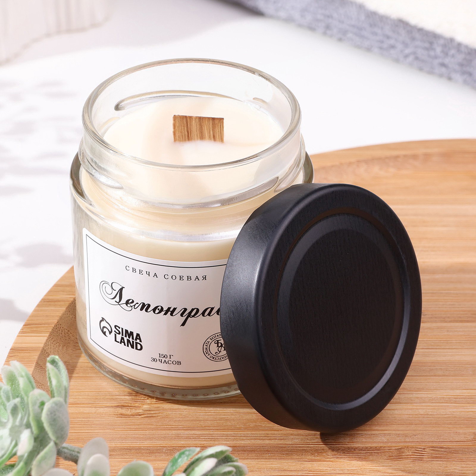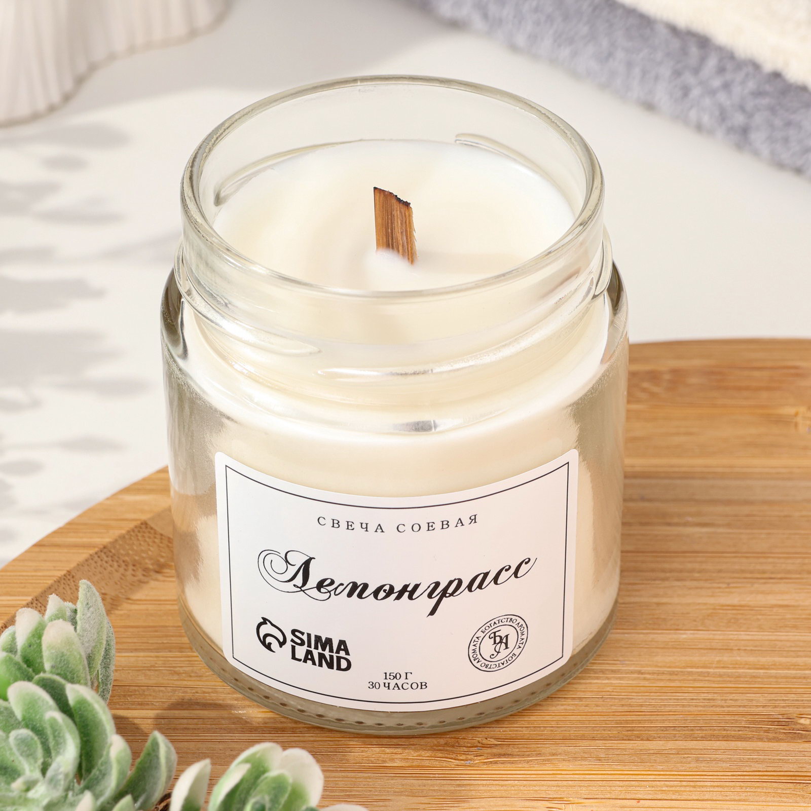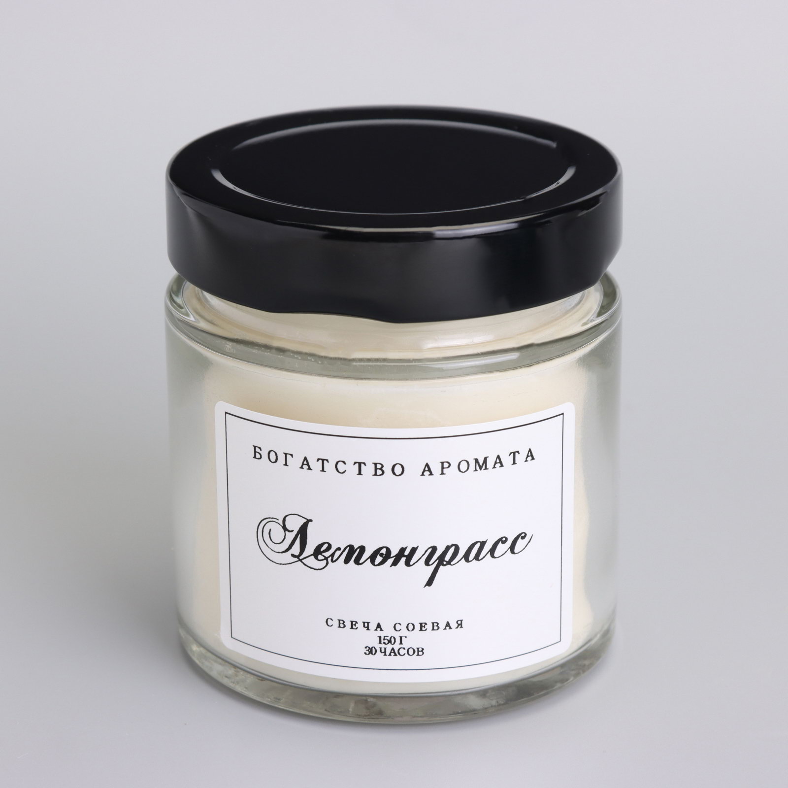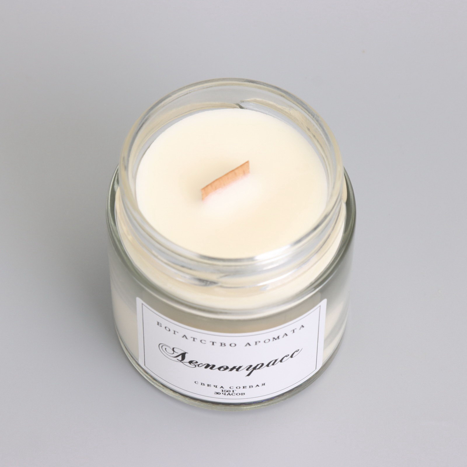 Ароматическая свеча в банке, 150 г, из соевого воска, 150 г, деревянный фитиль, лемонграсс, Богатство Аромата, Россия