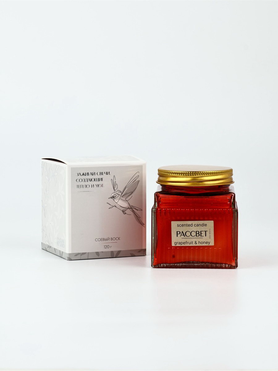 Свеча ароматическая "Рассвет" аромасвеча, аромат грейпфрут и мёд, 120 г, 6.5x6.5x7.4 см., SEE YOU HOME, Китай