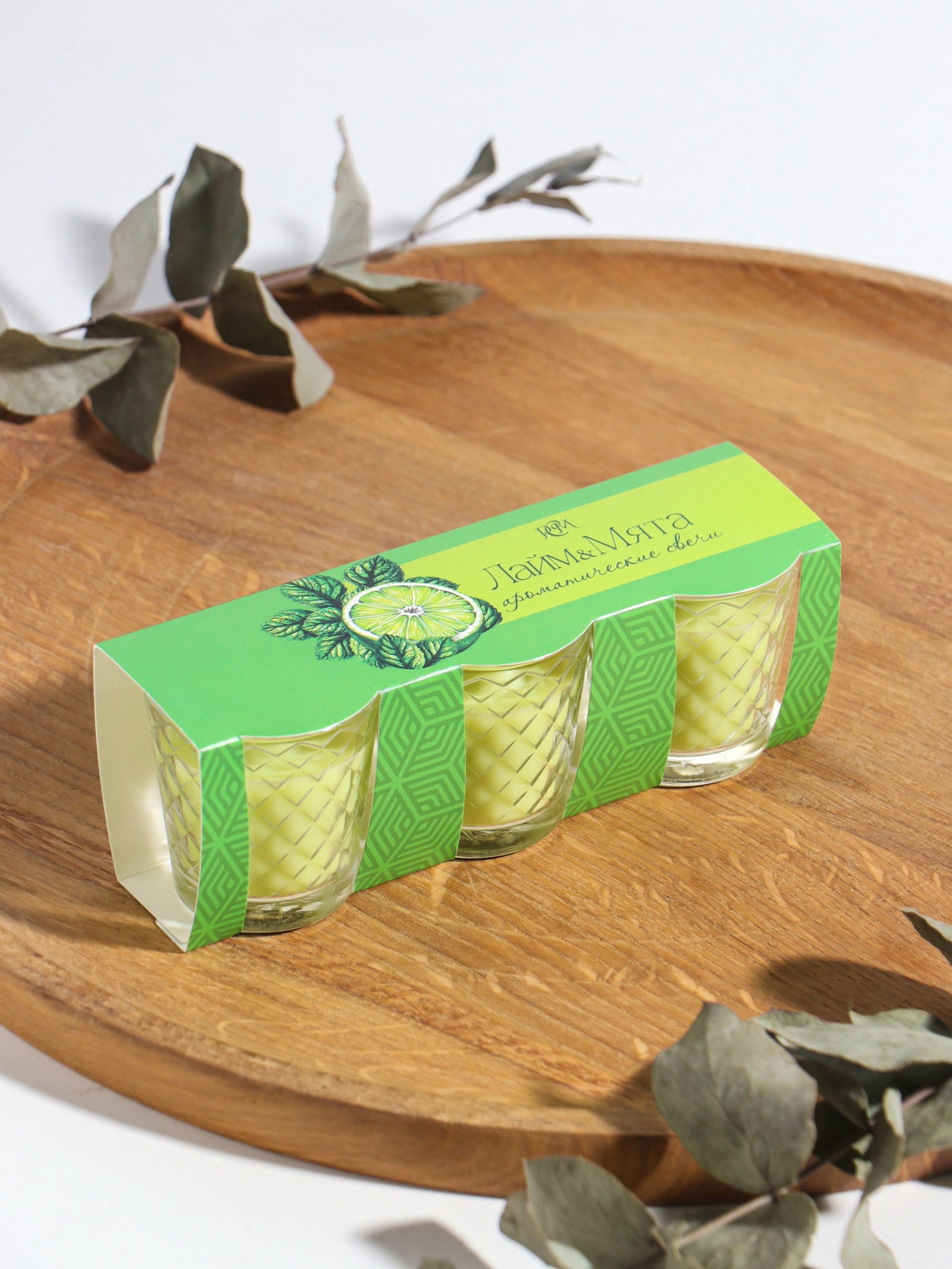 Ароматическая свеча в стакане, набор 3 шт., по 50 мл, 10 ч, 32 г, лайм-мята, Русская свечная мануфактура, Россия