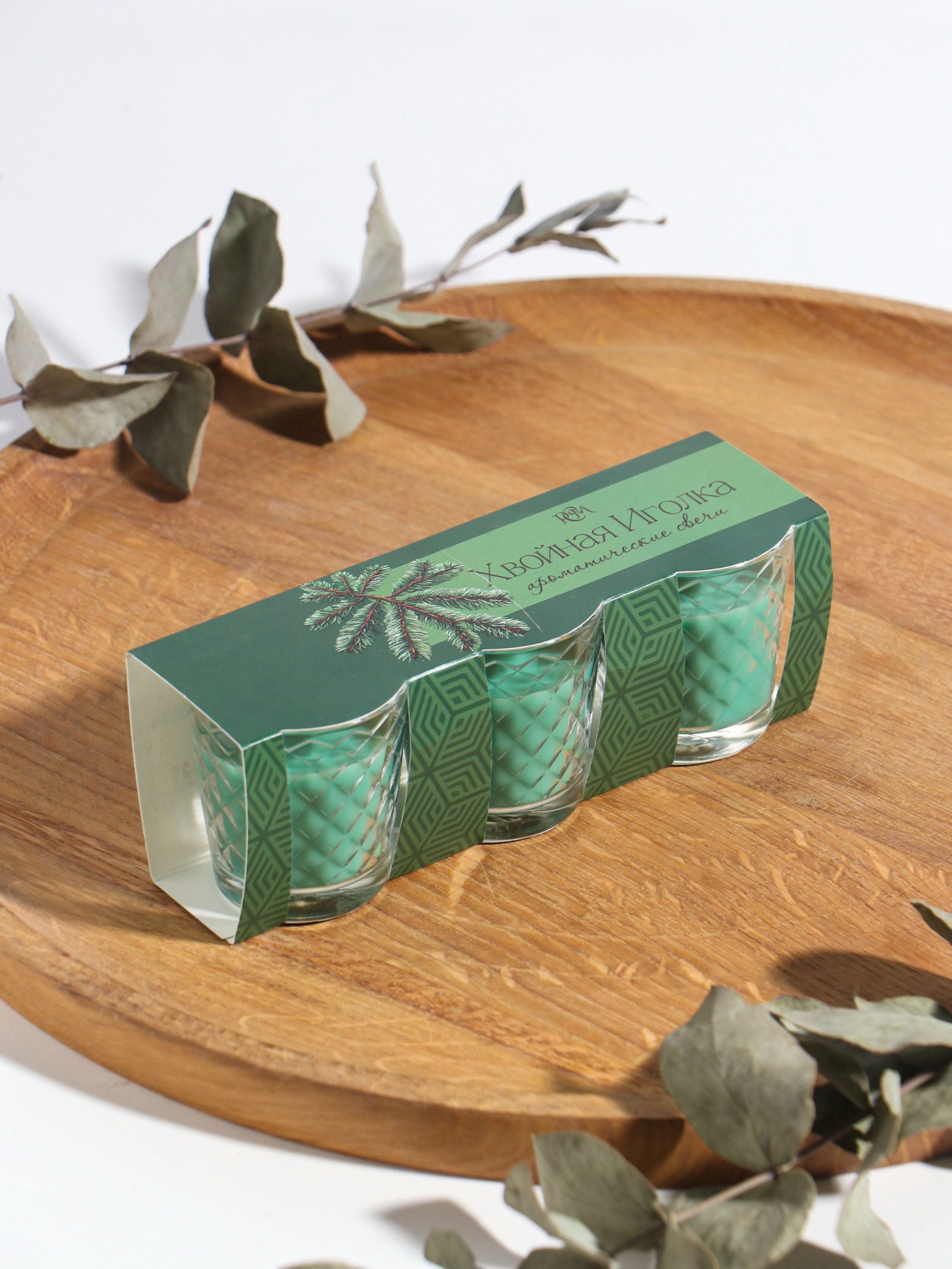 Ароматическая свеча в стакане, набор 3 шт., по 50 мл, 10 ч, 32 г, хвойная иголка, Русская свечная мануфактура, Россия