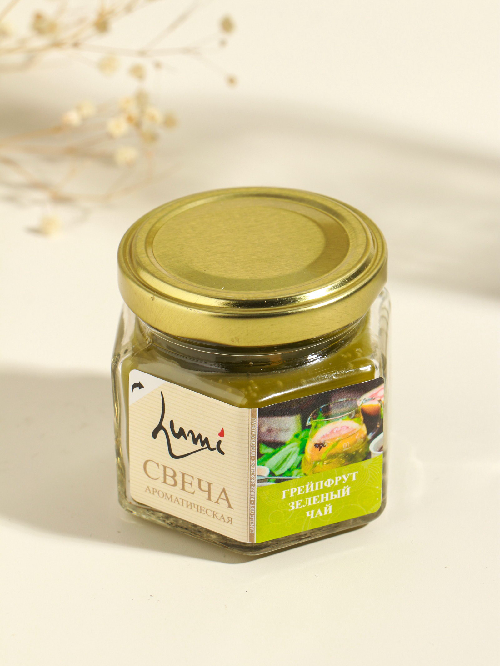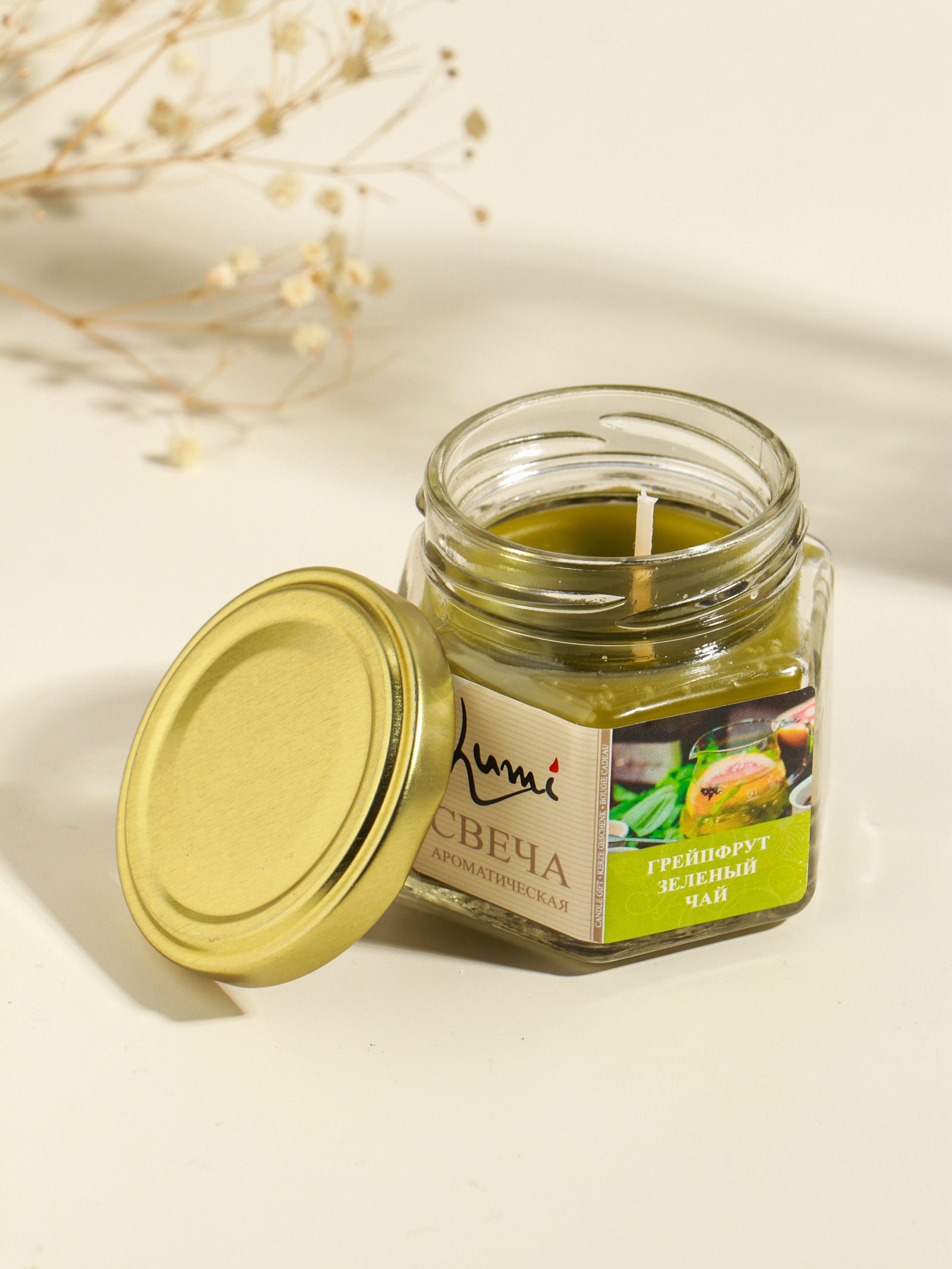 Ароматическая свеча в банке, 70 г, воска, грейпфрут и зелёный чай, Дарим Красиво, Россия