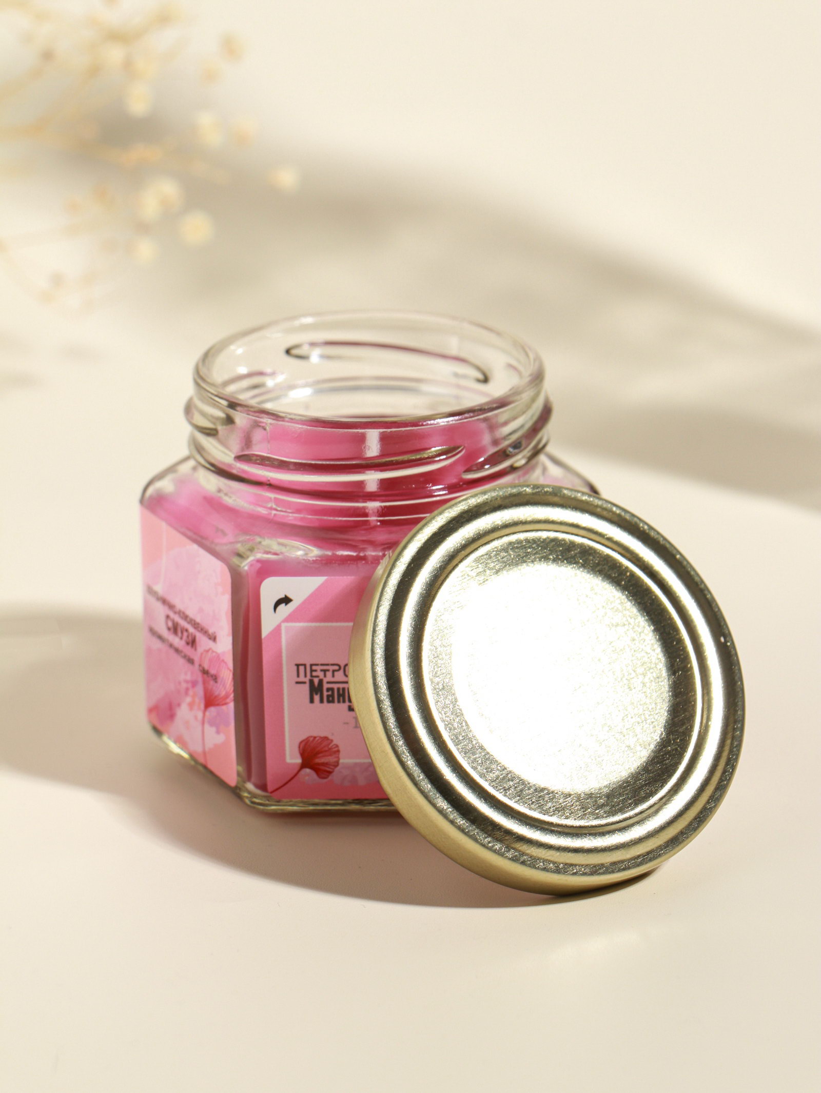 Дом Подарка › Каталог › Сувениры › Свечи › Интерьерные свечи › Свечи в стаканах и банках › Свечи в стекле › Свеча ароматическая в банке 70 гр воска, клубн-клюкв. смузи