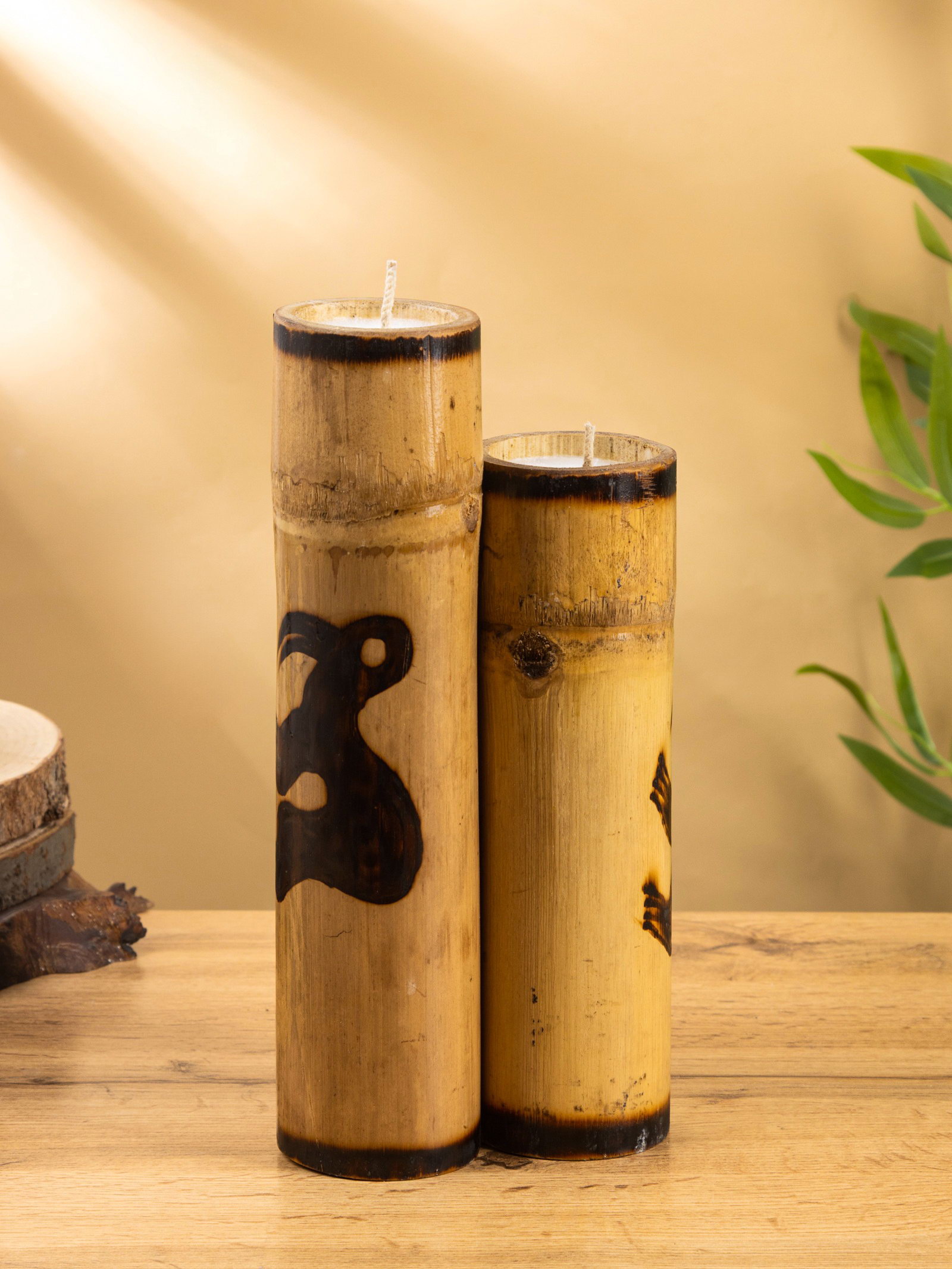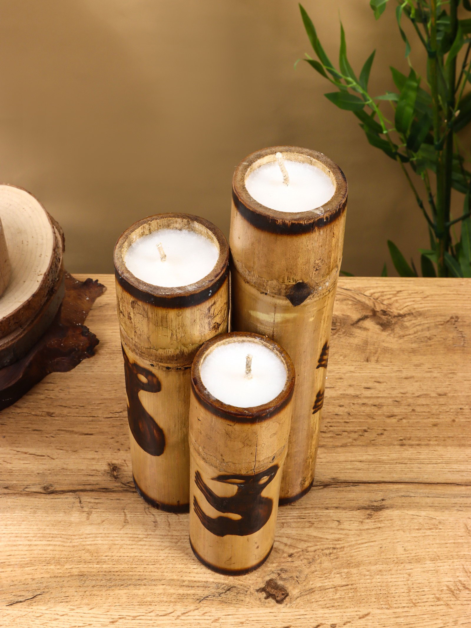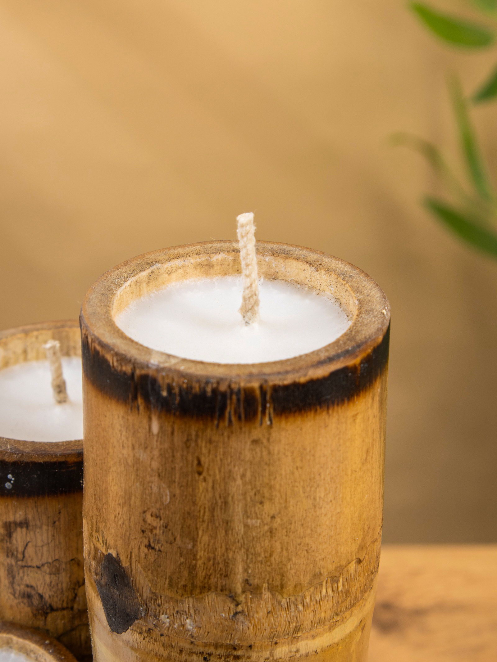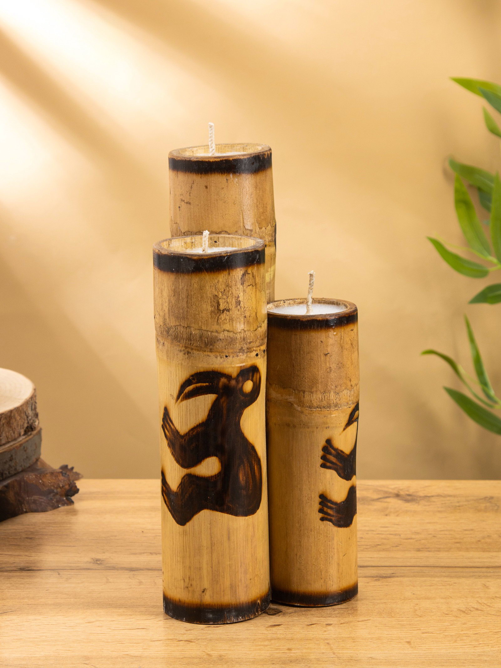 Свеча в бамбуке тройная "Птица", 14x14x30 см, 100 мл, бежевая, 12x12x30 см., Индонезия