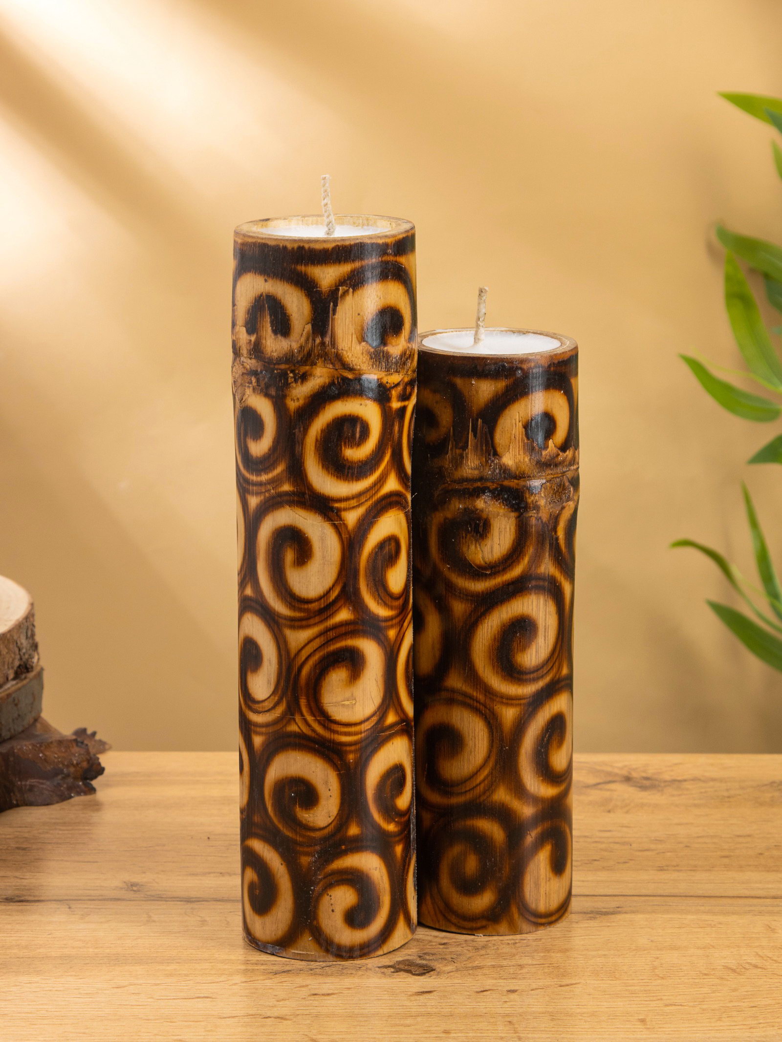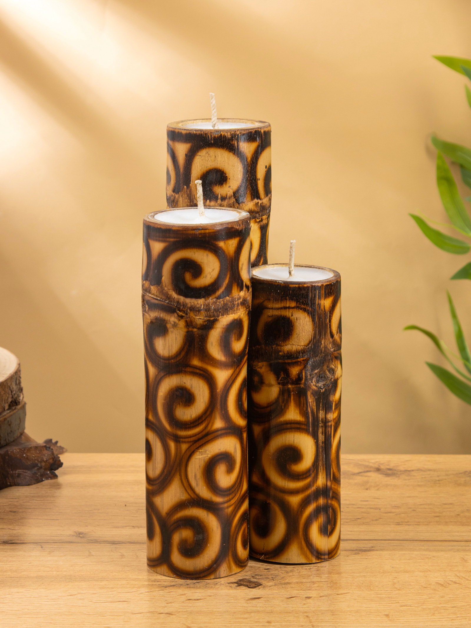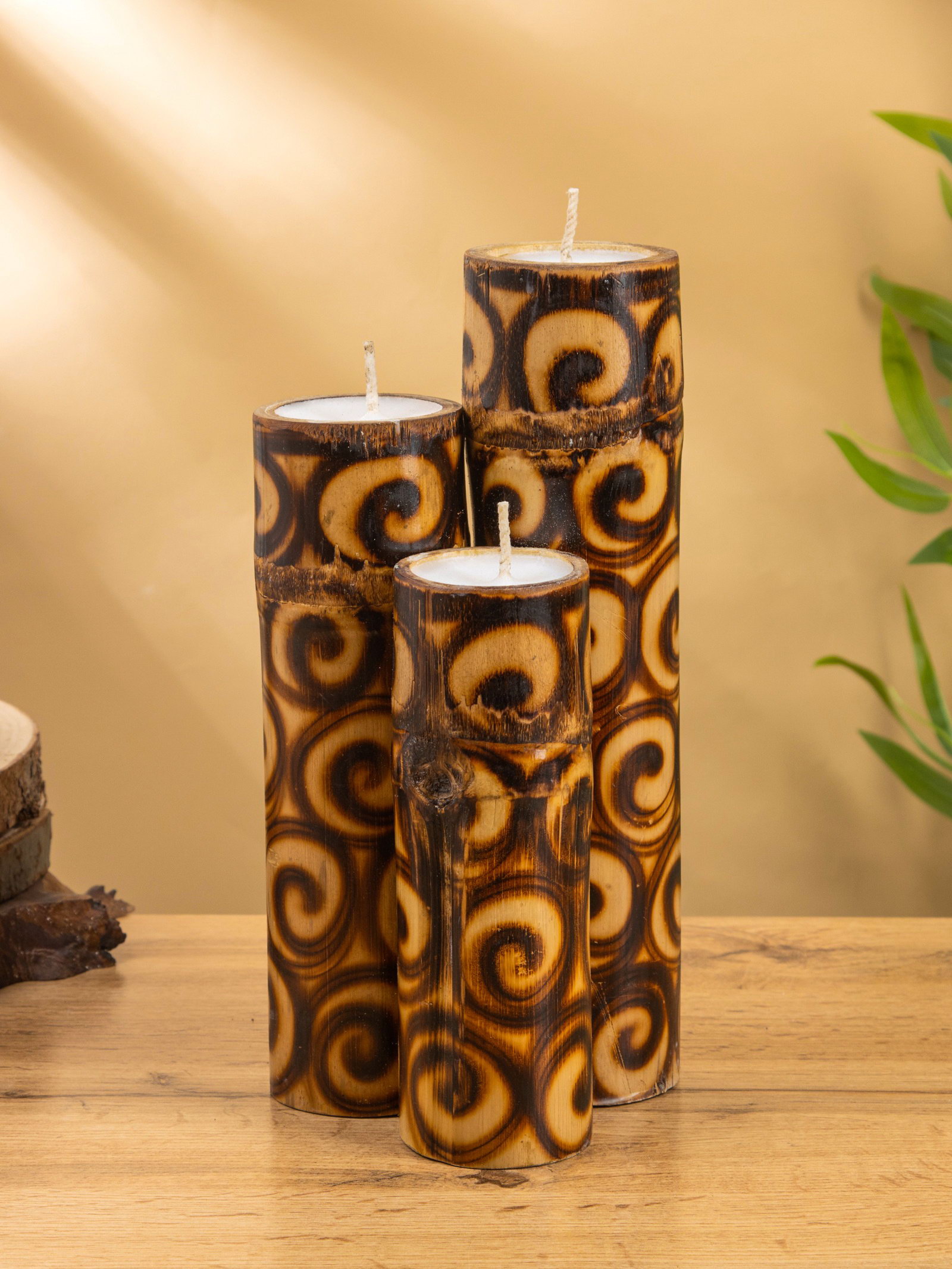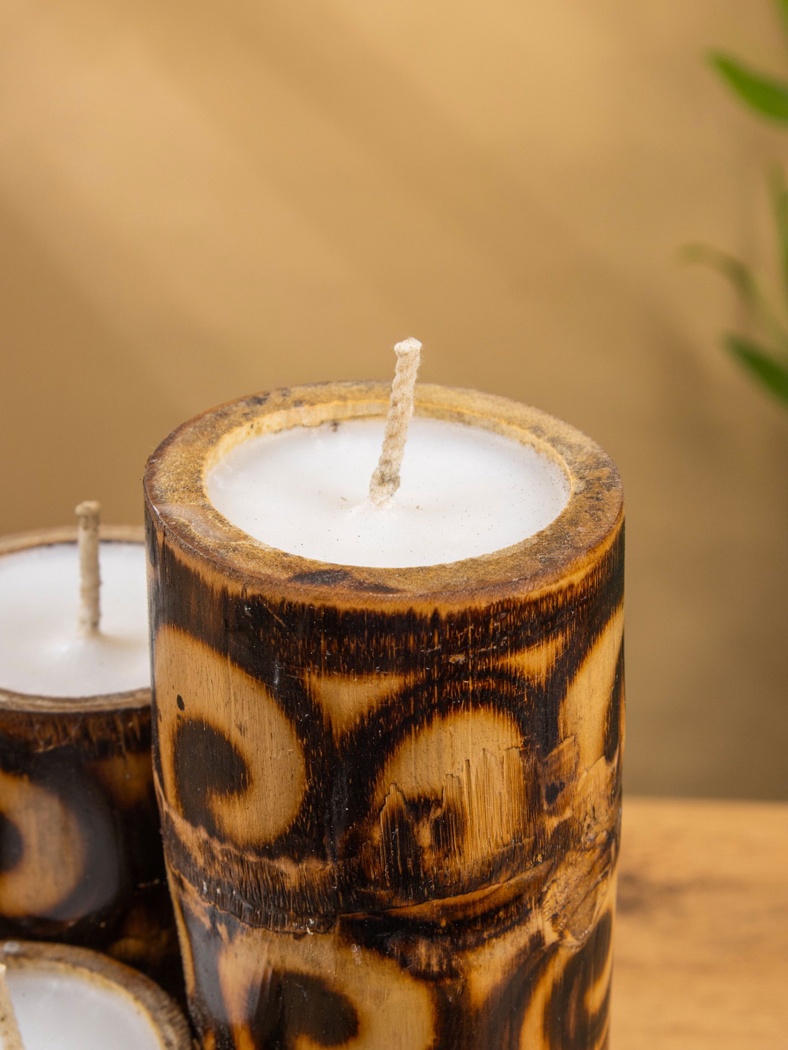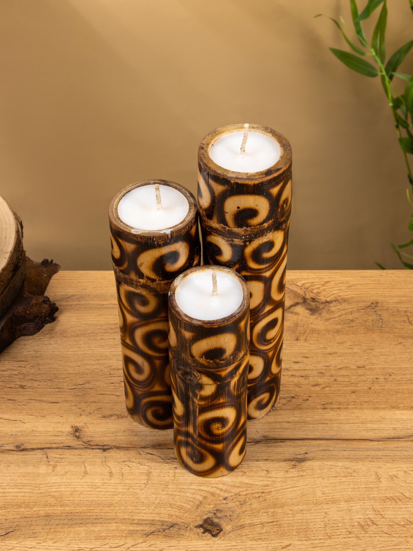 Свеча в бамбуке тройная, 14x13x30 см, 100 мл, коричневая, 12x12x30 см., Индонезия