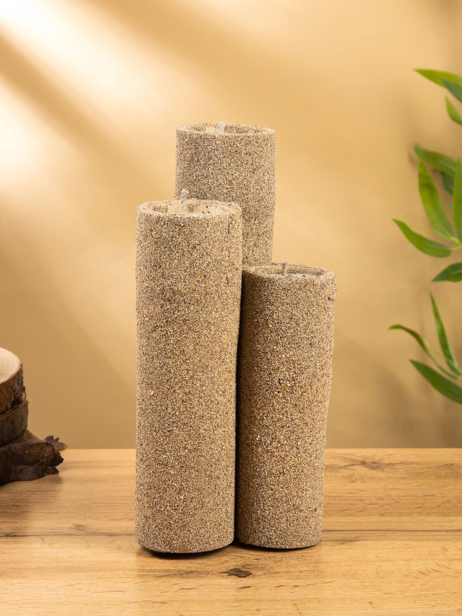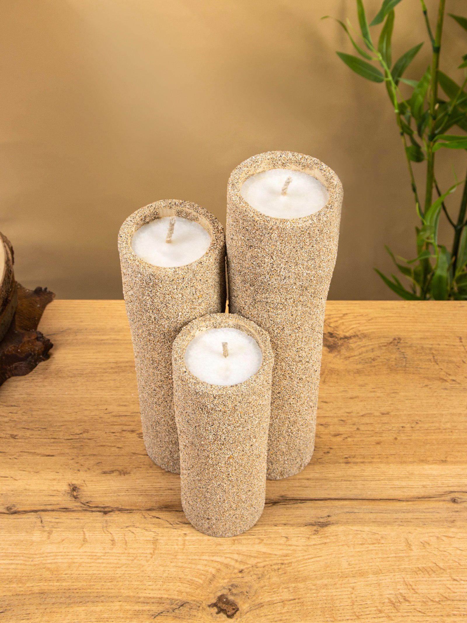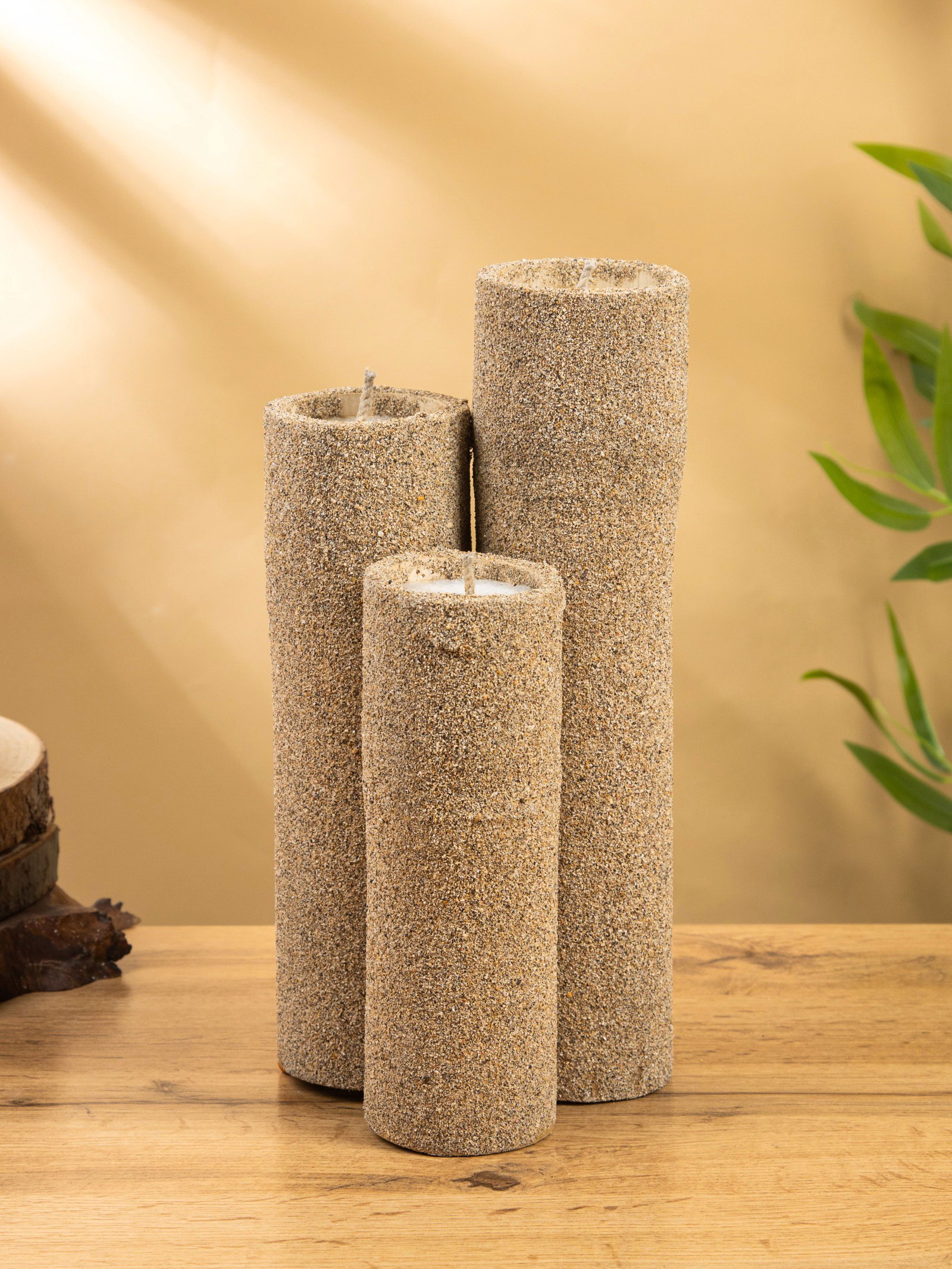 Свеча в бамбуке тройная, 15x15x30 см, 100 мл, песочная, 12x12x30 см., Индонезия