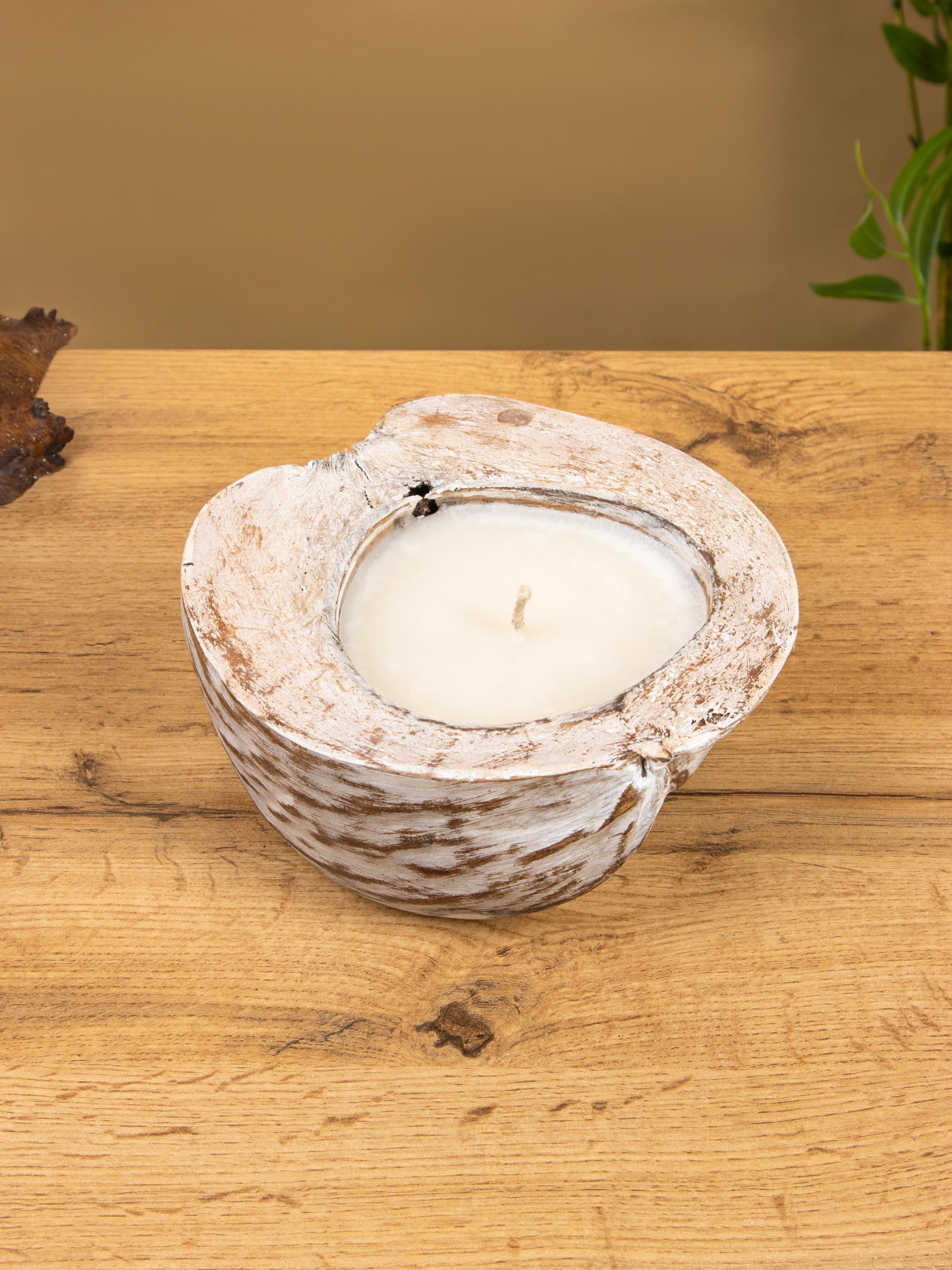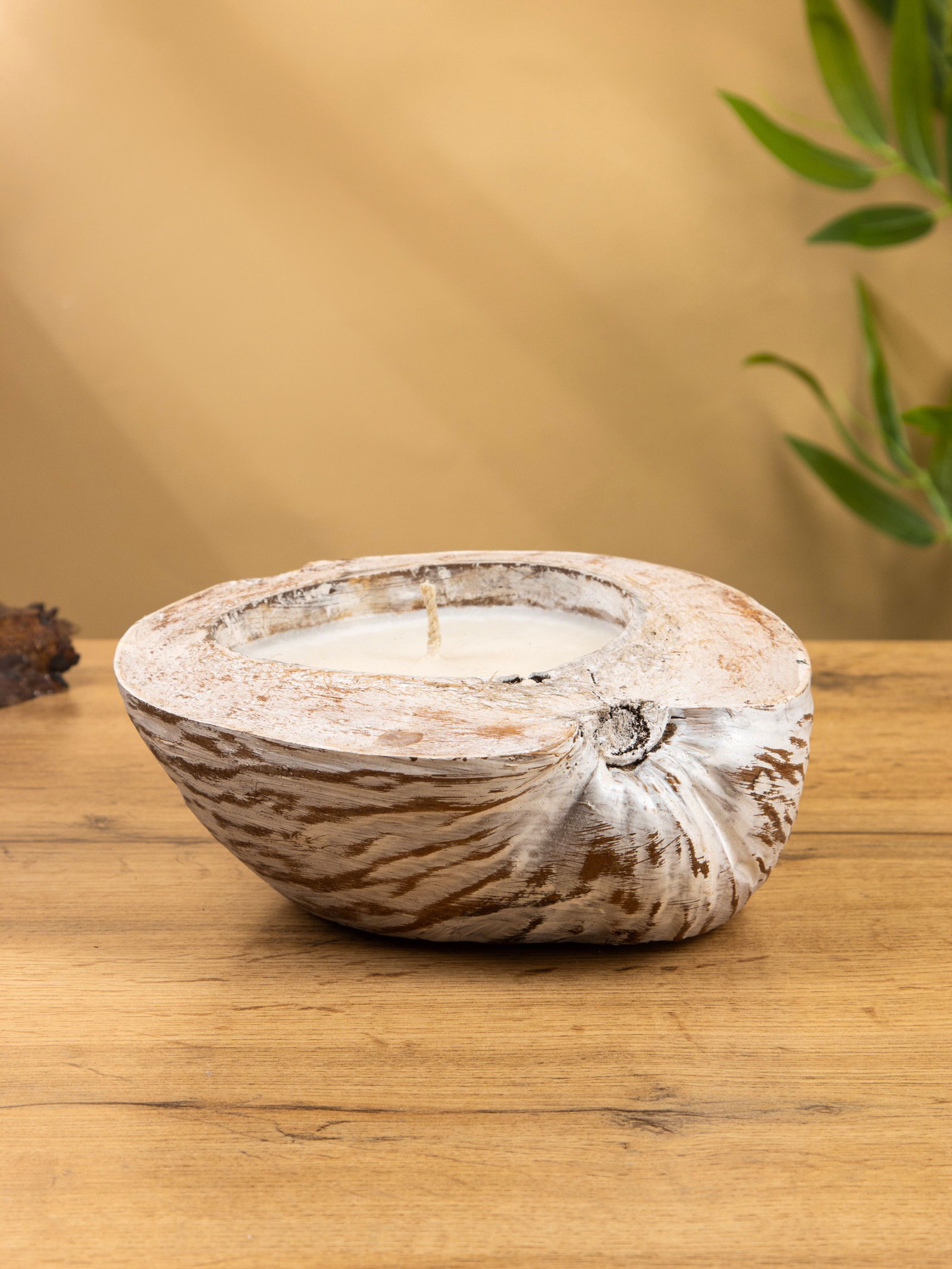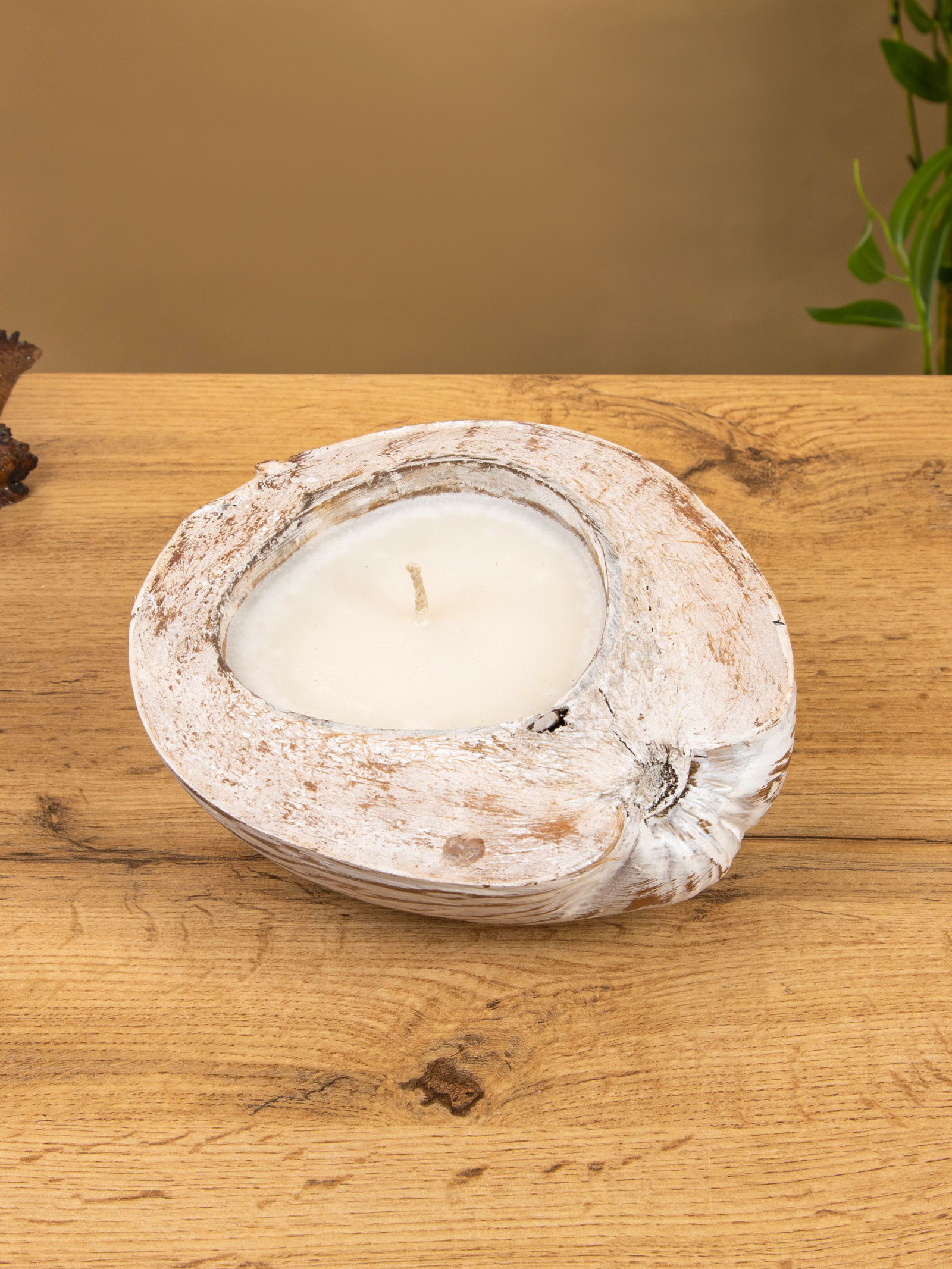 Свеча в кокосе, 20x20x7 см, белая, 20x20x7 см., Индонезия