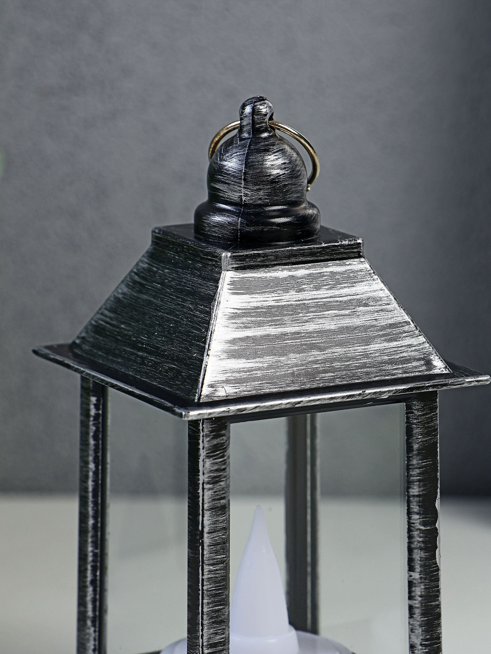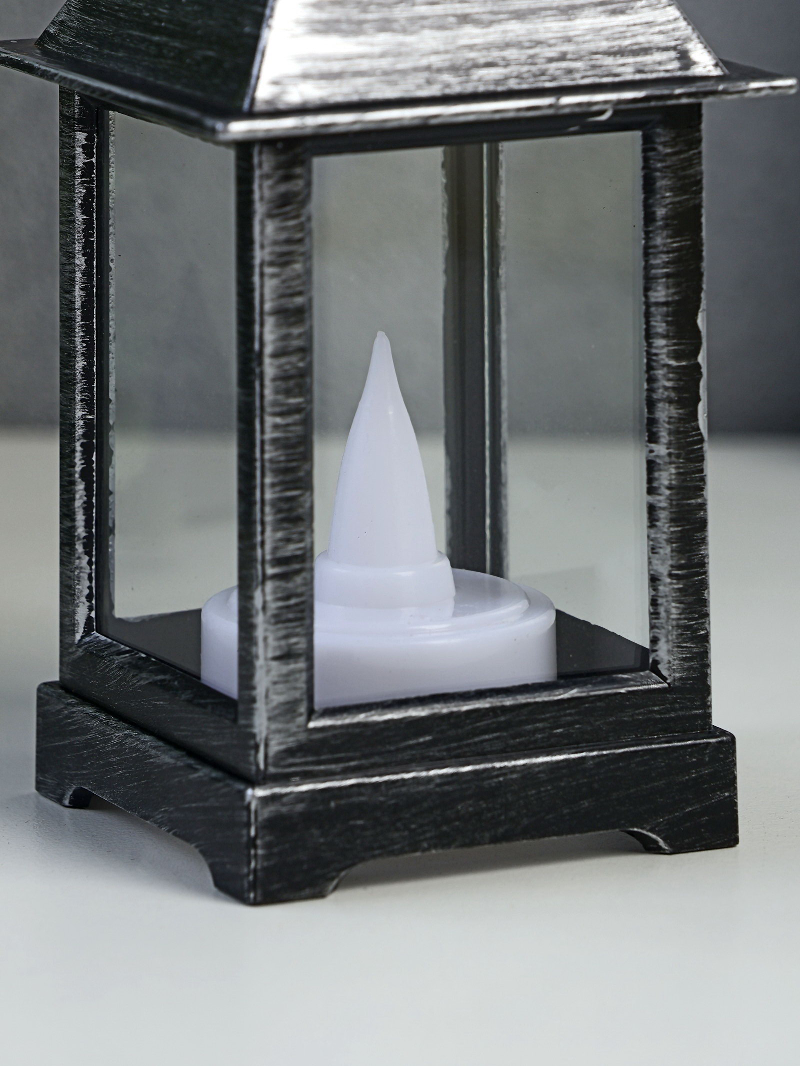 Светодиодная свеча в подсвечнике "Фонарь малый", LED-ночник, от батареек 3xLR44, чёрно-серебристый, 6x6x13 см, 6x6x13 см., RISALUX, Китай