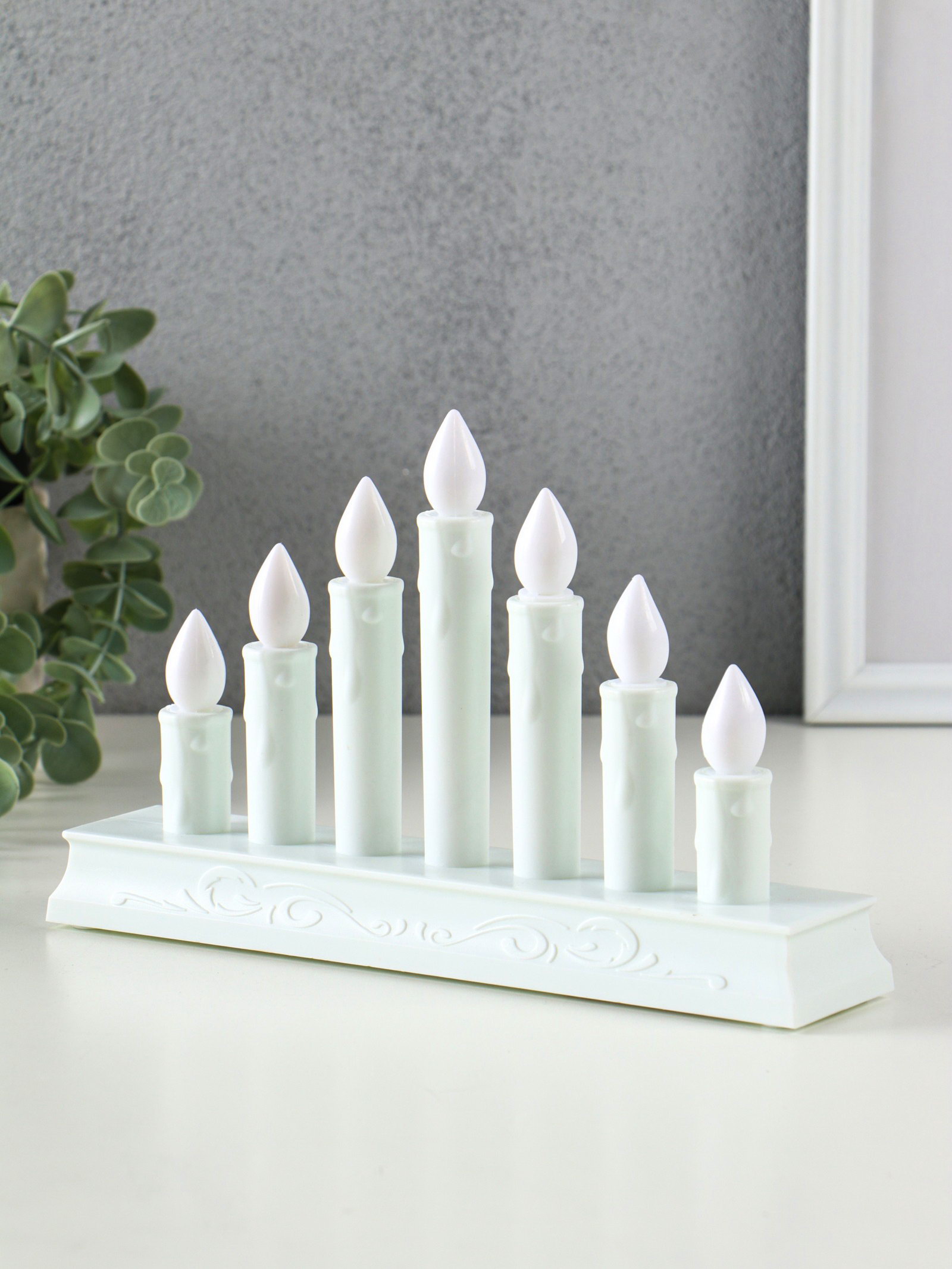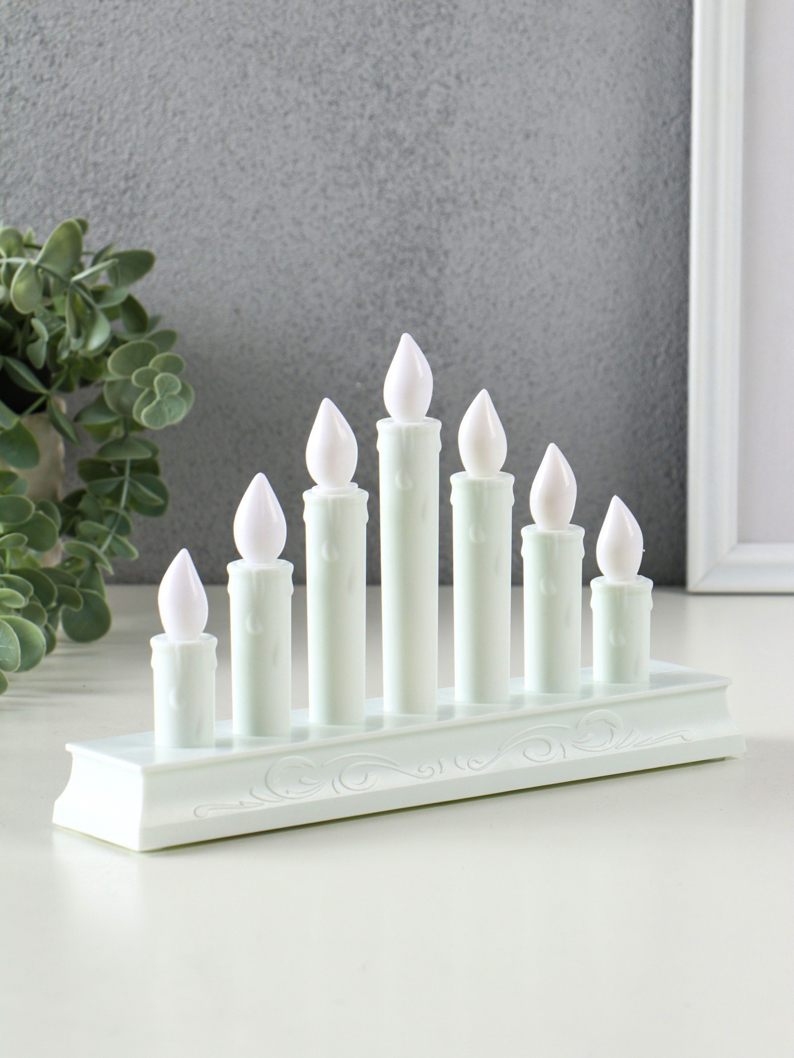 Размер упаковки: 15.5 x 24.5 x 5.5 см. tnved: 9405210000 Цвет: Белый Высота свечи, см: 15 Цвет свечения: Жёлтый Форма свечи: Цилиндр Типоразмер батареек: AAA (LR03) Тип питания: От батареек Тематика праздника: Новый год Изображение: Без нанесения Создайте в спальне или гостиной атмосферу спокойствия с этой белой светодиодной свечой. Её мягкий желтый свет напоминает теплое пламя из нескольких настоящих свечей, но работает от батареек и полностью безопасна. Это элегантное решение для ежедневного ритуала расслабления, украшения интерьера или создания романтического настроения. Особенности