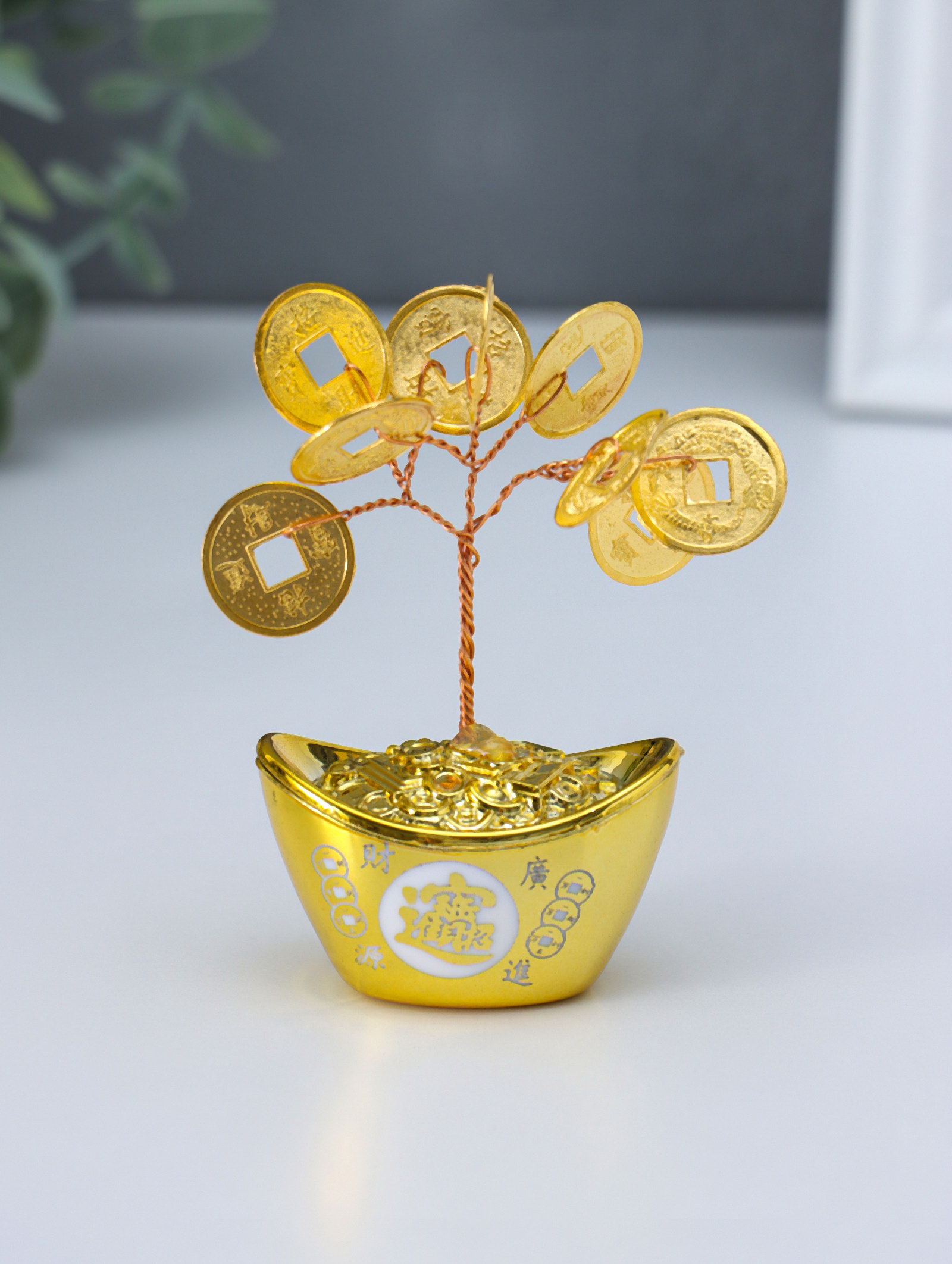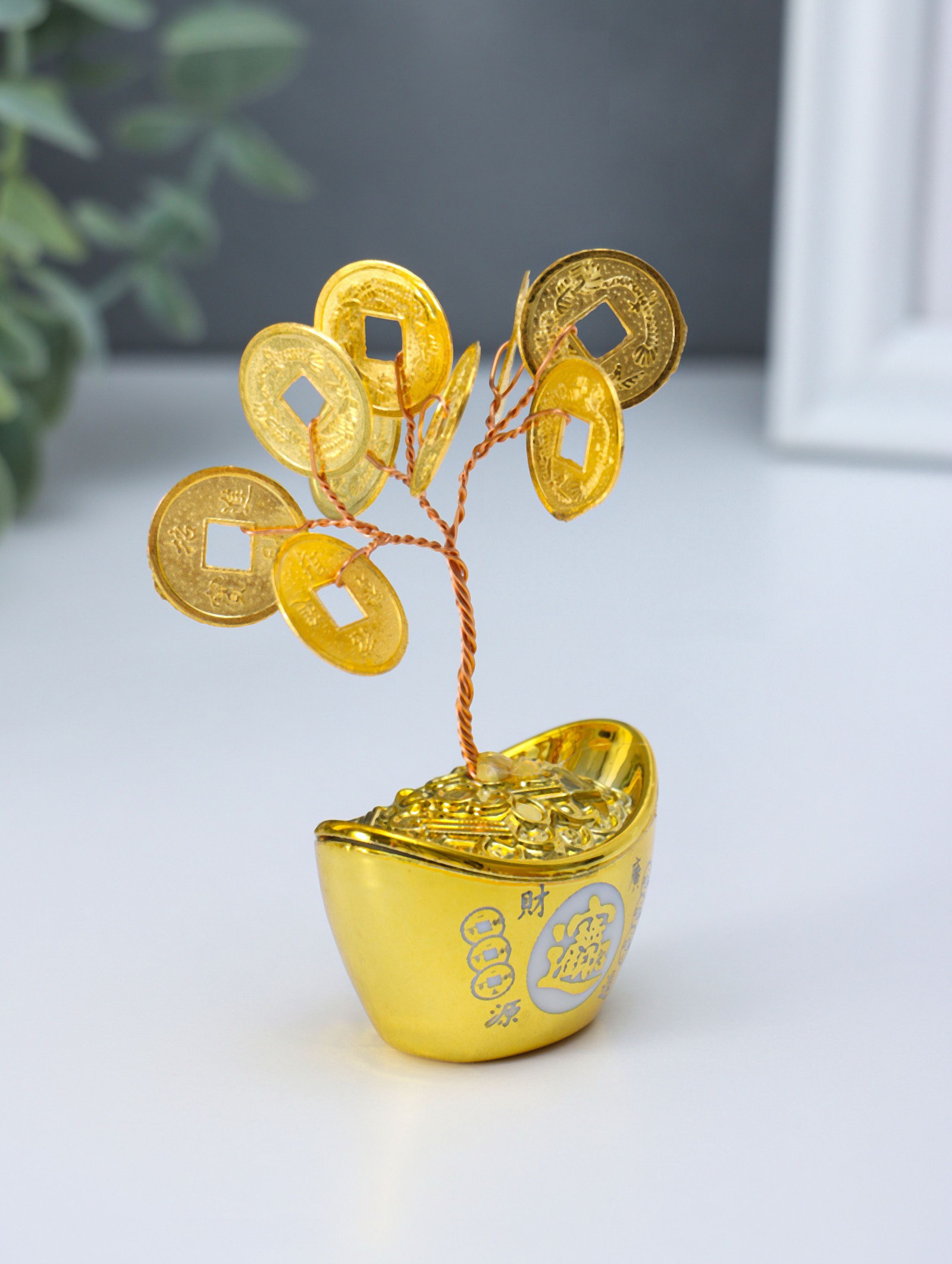 Размер упаковки: 5.5 x 6 x 5.5 см. tnved: 3926400000 Высота, см: 8 Цвет: Золотистый Вид листочков: Монетки Этот сувенирный бонсай с золотыми монетами символ процветания и стабильного финансового роста. Миниатюрное дерево из слитка и девяти монет привносит в интерьер энергию благополучия. Композиция служит стильным акцентом для рабочего кабинета, домашнего офиса или зоны отдыха, напоминая о важности мудрого управления ресурсами. Детали и исполнение